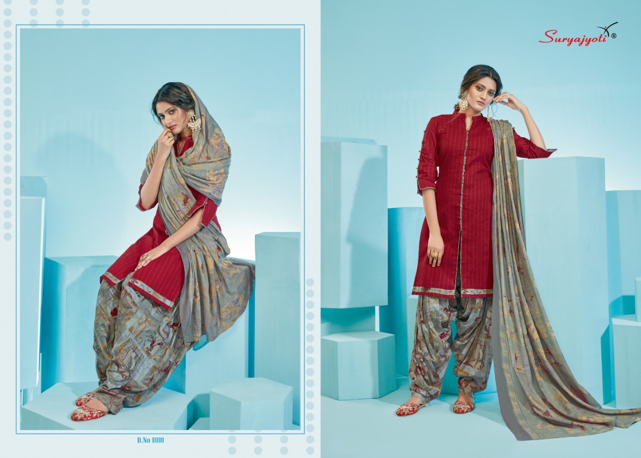Suryajyoti Cotton Presents Latest Collection Launched on 20-01-2021. Presenting Beautiful collection of 10 PCS with Unstitched .