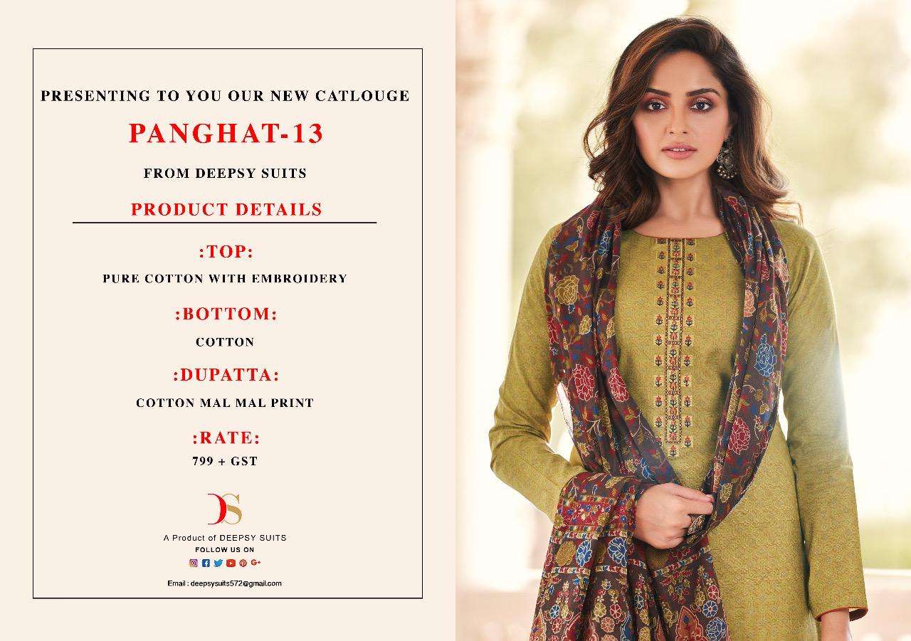 panghat vol 13 by deepsy cotton printed embroidery suits