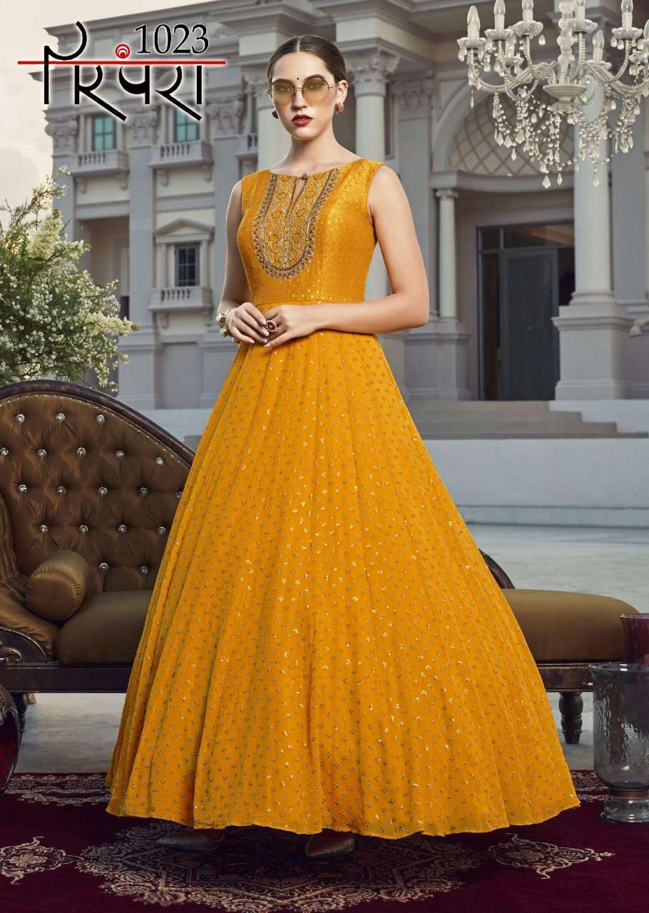 parampara vol 5 elegant stylish new gown with dupatta readymade collection