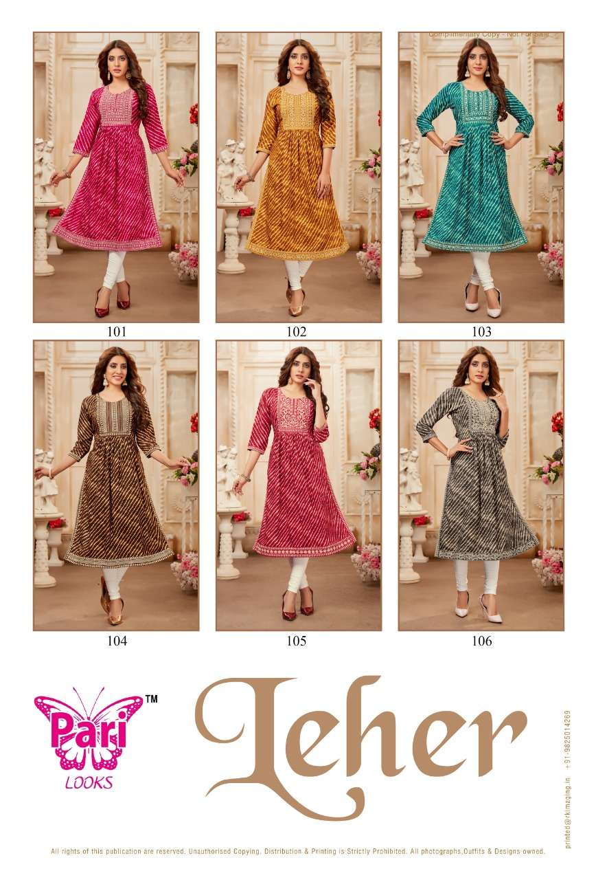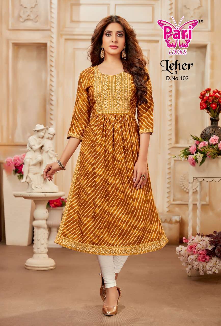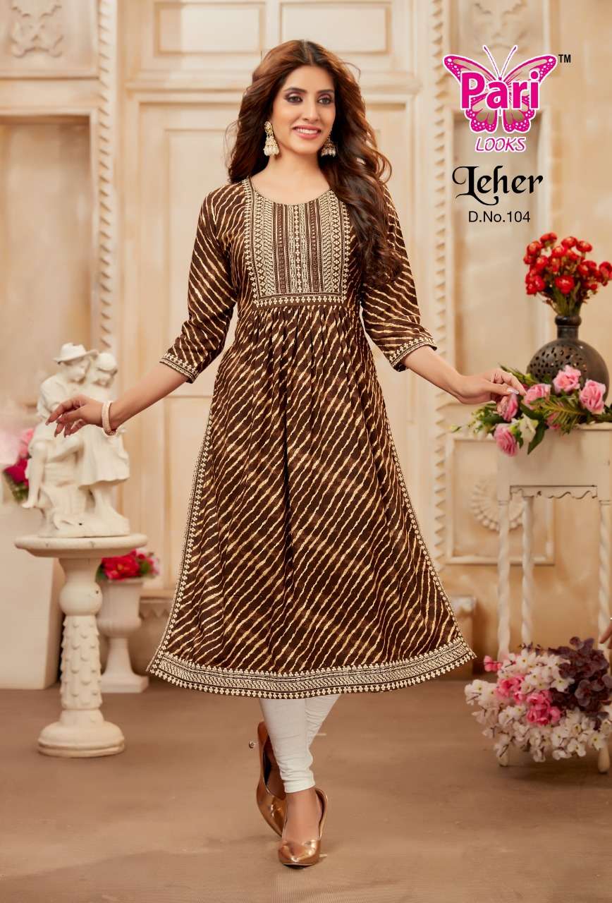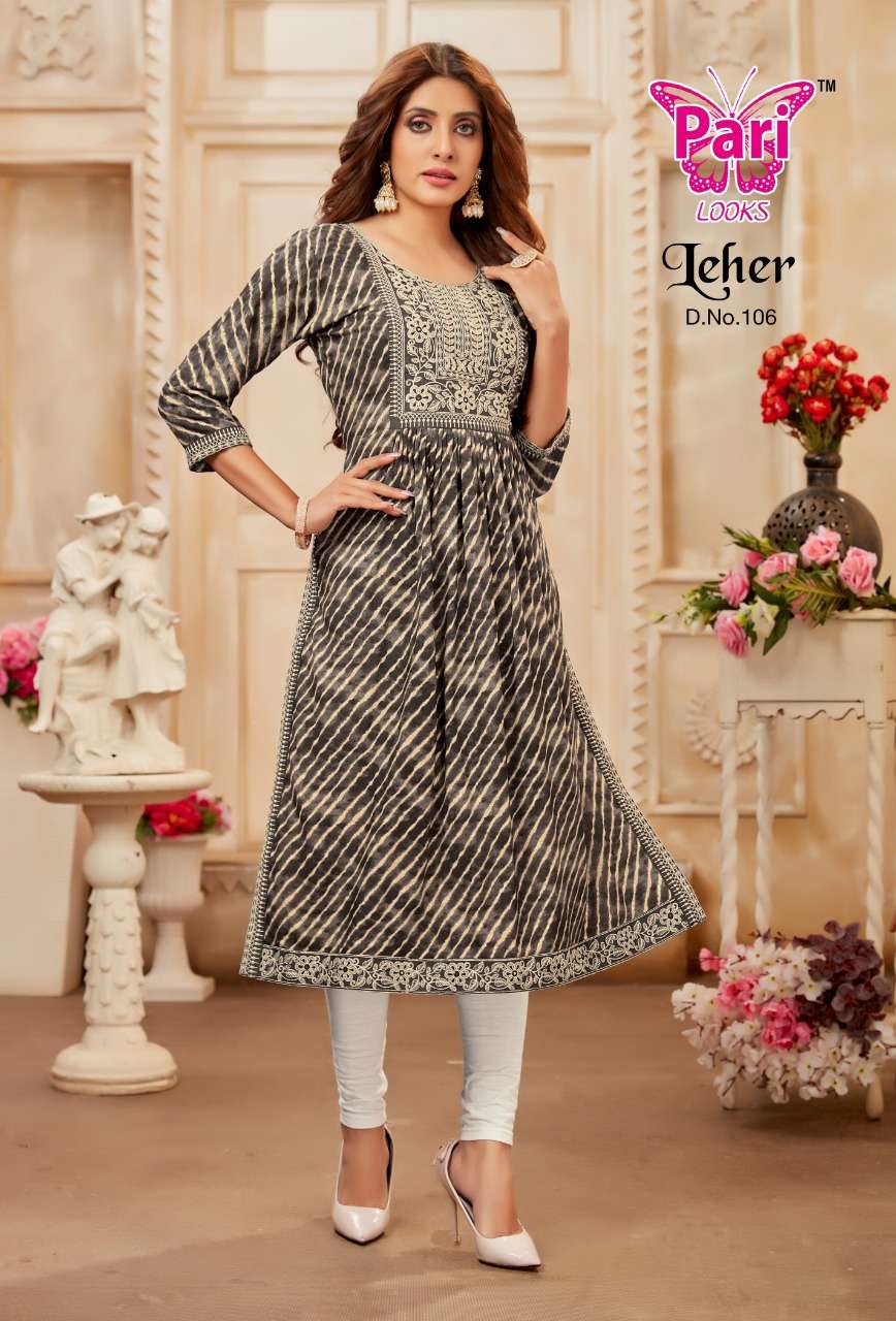Hello! PARI is back with its New Catlog " leher" Nyraa cut catlog SIZES :. M L. XL Xxl. LENGTH : 48”