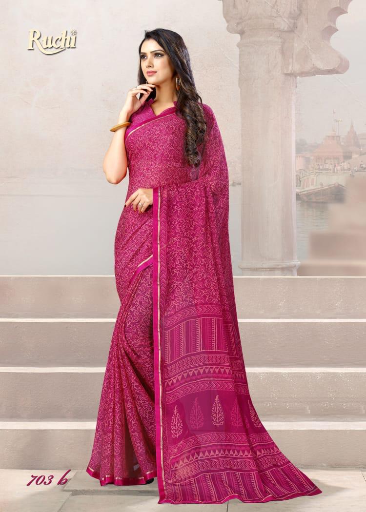 Ruchi Sarees 1).Itame Name:- Pari vol 7 2).No.of Pcs:- 20 3).Setwise Packing Only. 4). Rate - 437 per Pcs. 5). Fabric- Chiffon 6). Delivery from tomorrow |
