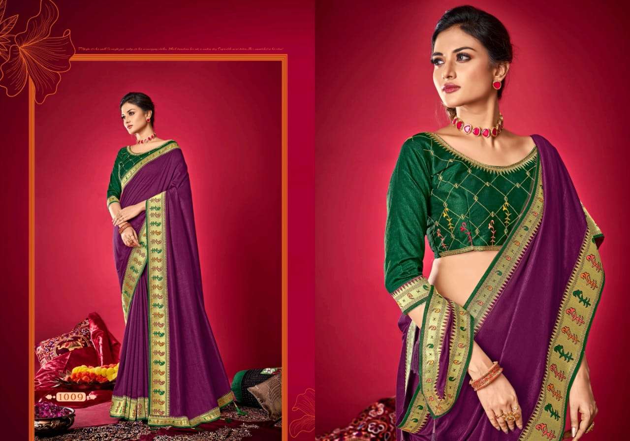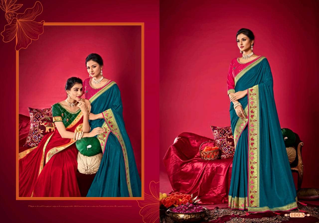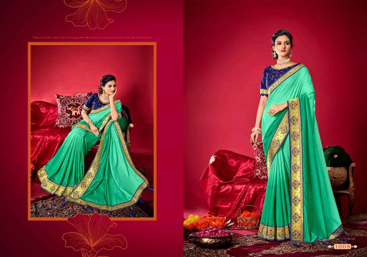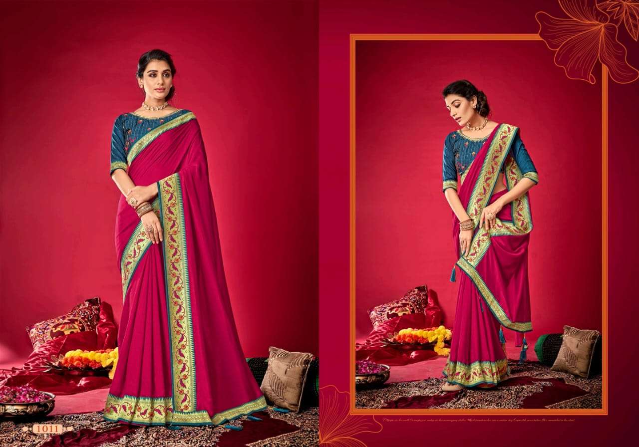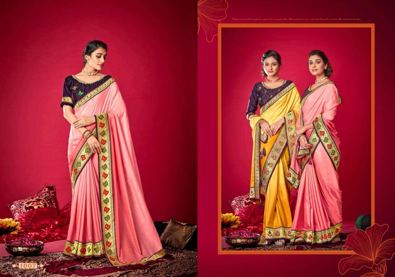 parinaym by shubh shree creation velvet tusser silk designer sarees