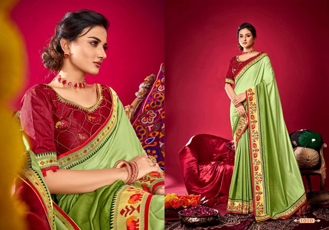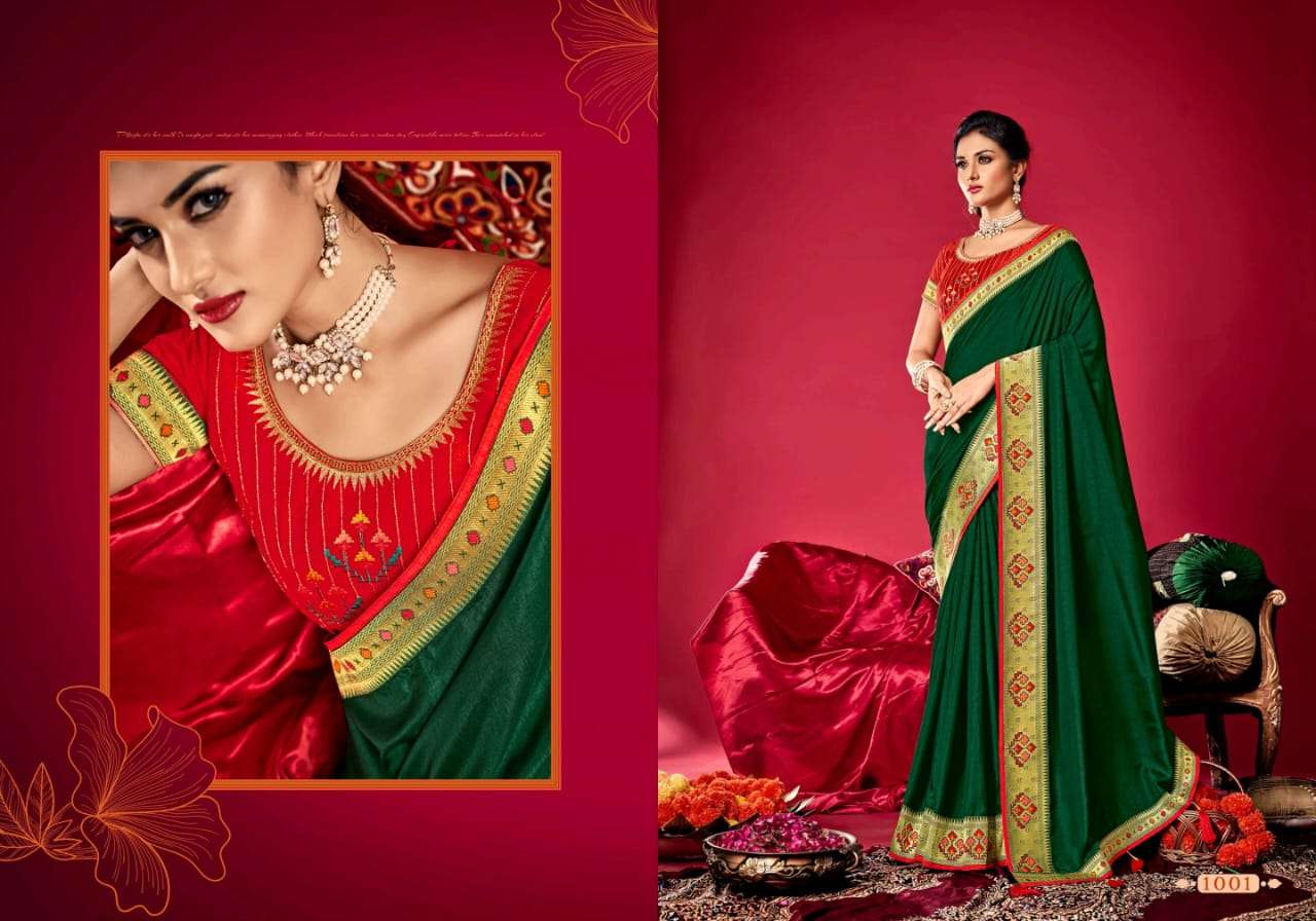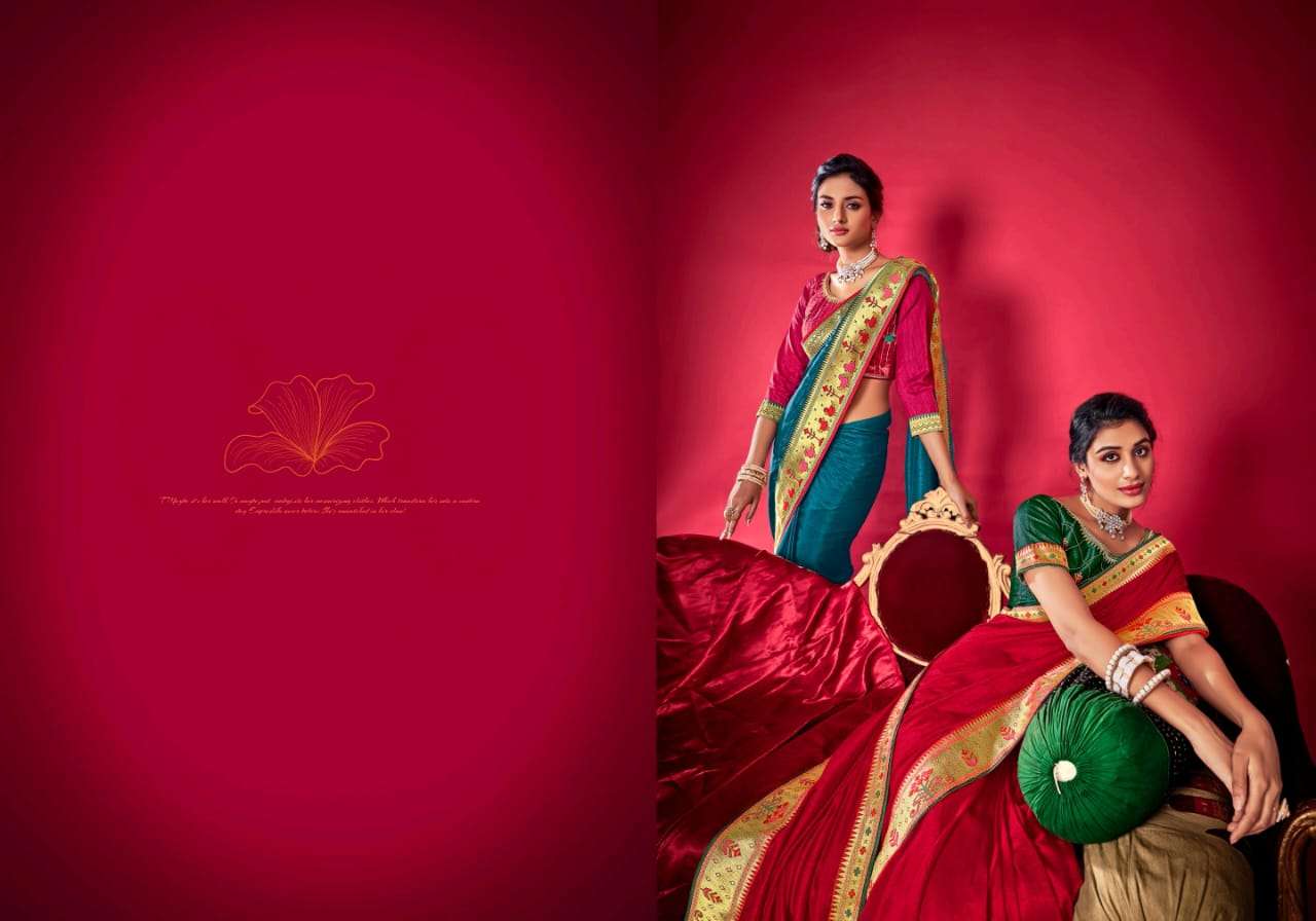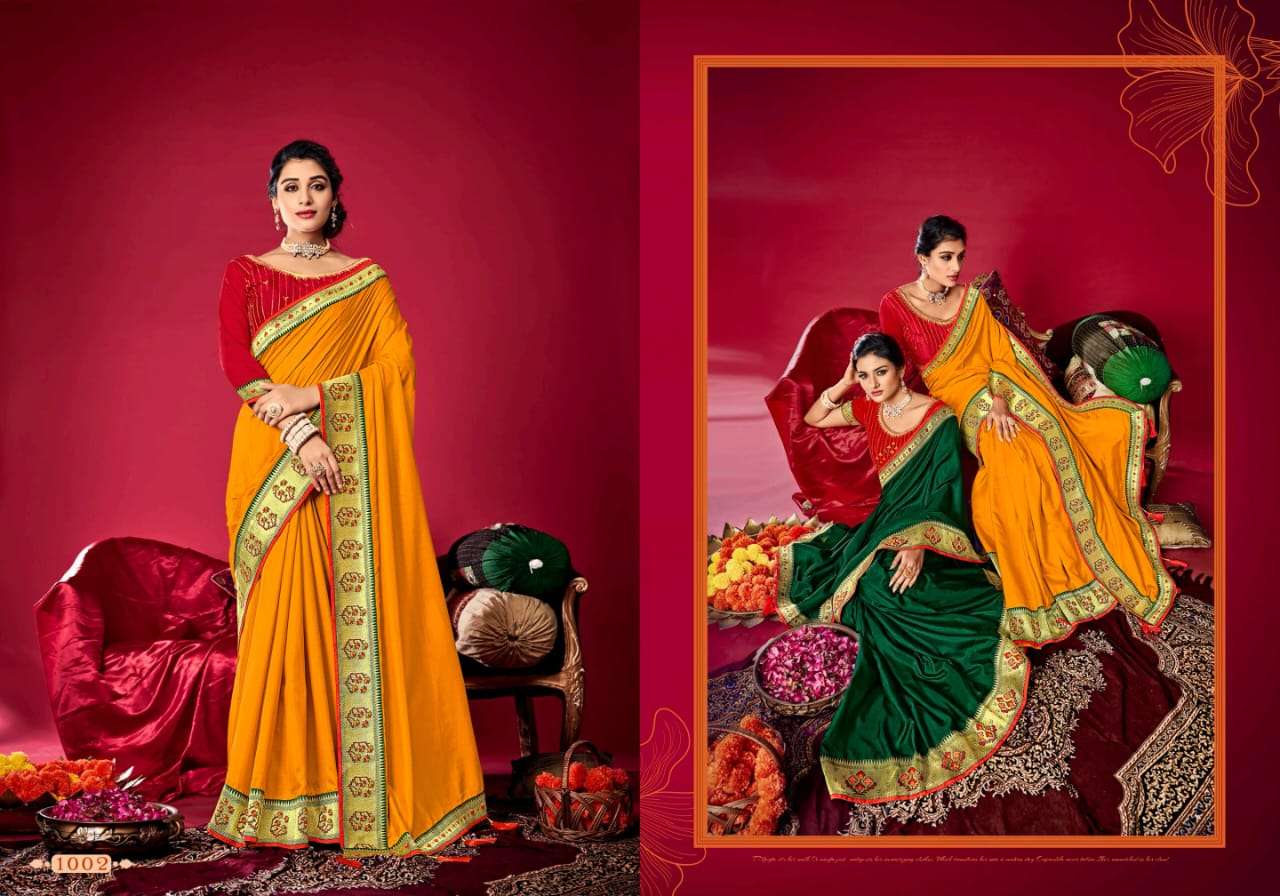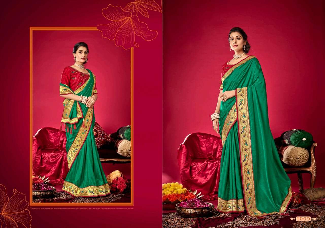 parinaym by shubh shree creation velvet tusser silk designer sarees