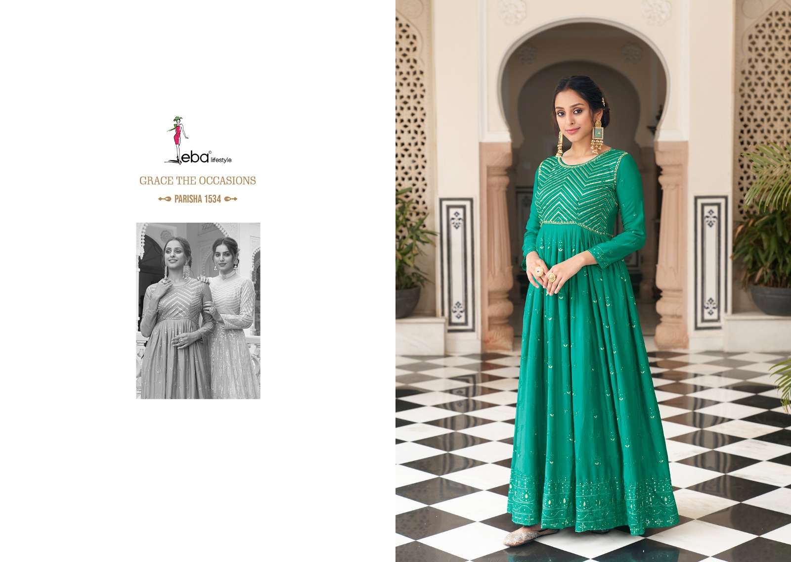 parisha by eba lifestyle free size stitch long gown with bottom and dupatta