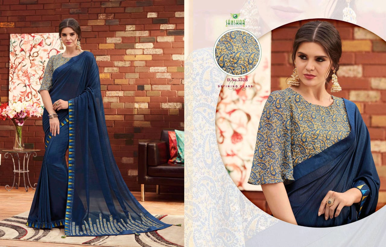 Party Wear By Sanskar Tex Print Latest Fancy Print Synthetic Heavy Saree Catalogs