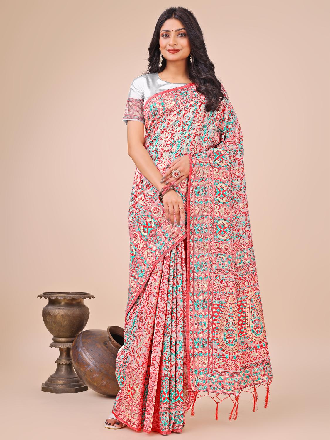 pashmina by astita fancy designer linen Cotton fabric saree wholesale with latkan