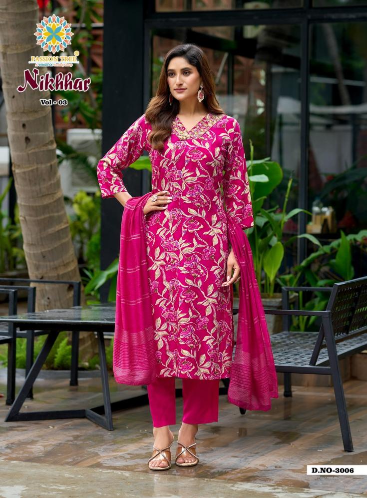 passion tree nikhaar vol 3 rayon readymade big size 3pcs dress