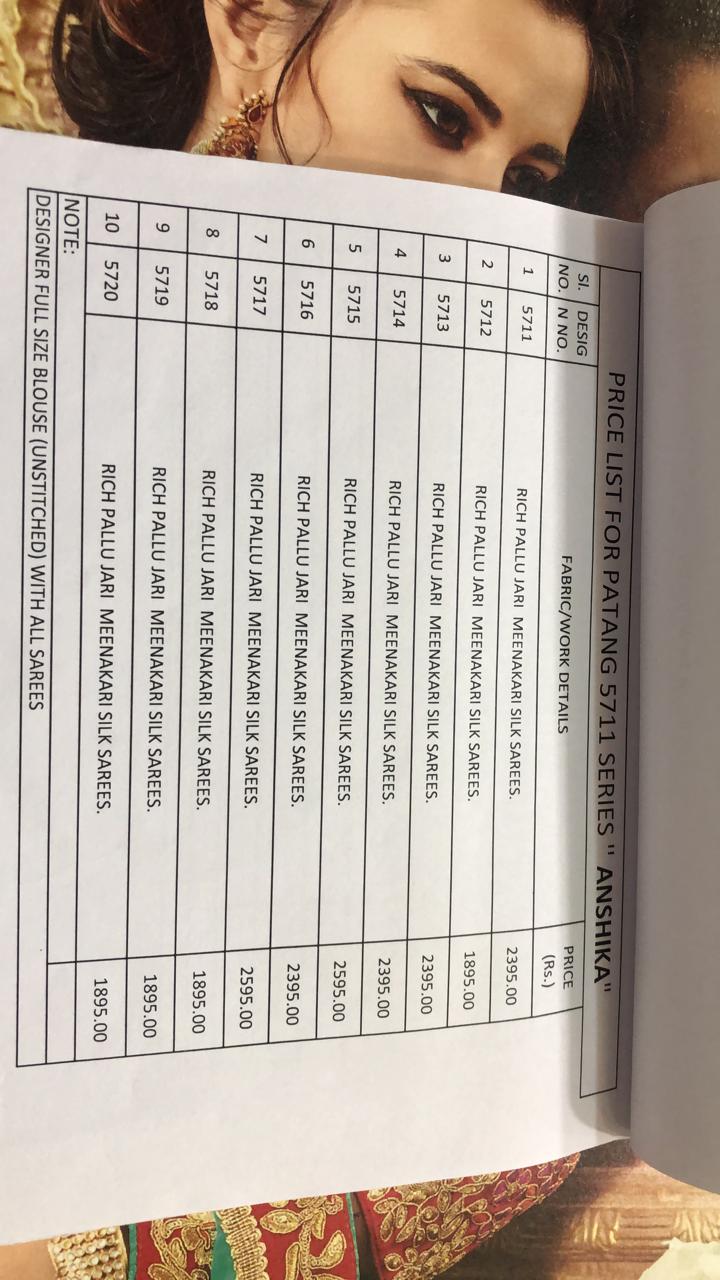 Dear Customer, We are launching our new Saree Catalog Brand – PATANG SAREES . Series ~ 5711-5720 Catalog Name : ANSHIKA Fabrics – JARI MEENAKARI SILK * Set to set * Rate ~ 2235/- only Pc – 10 GST 5 Percent Extra. Delivery 3-4 days Book your order now . |