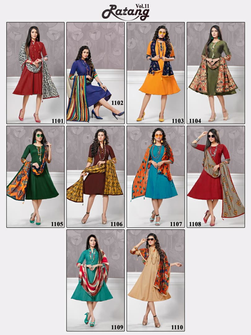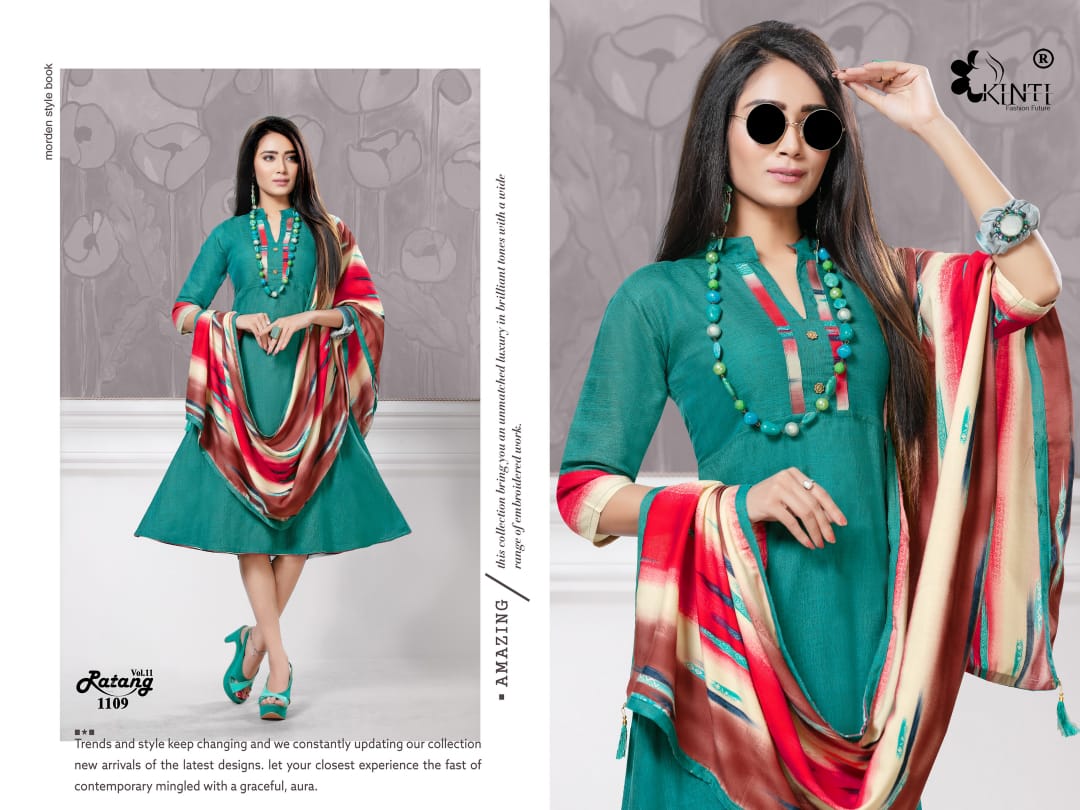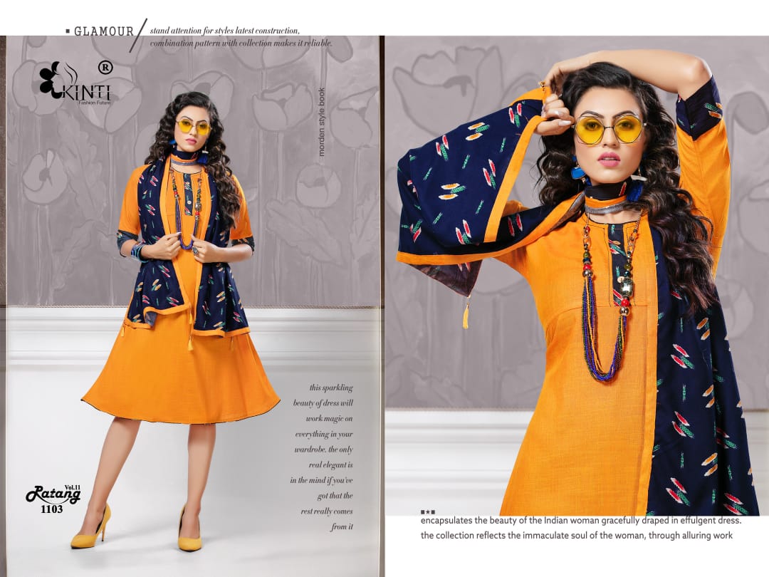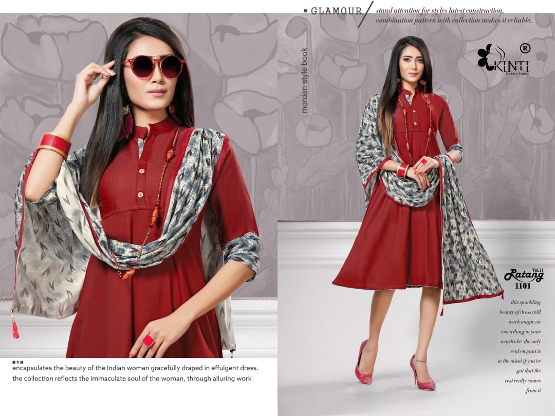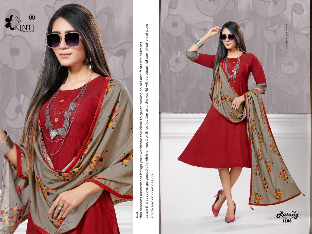 Patang Vol 11 By Kinti Rayon Kurti With Stole Collection Wholesaler
