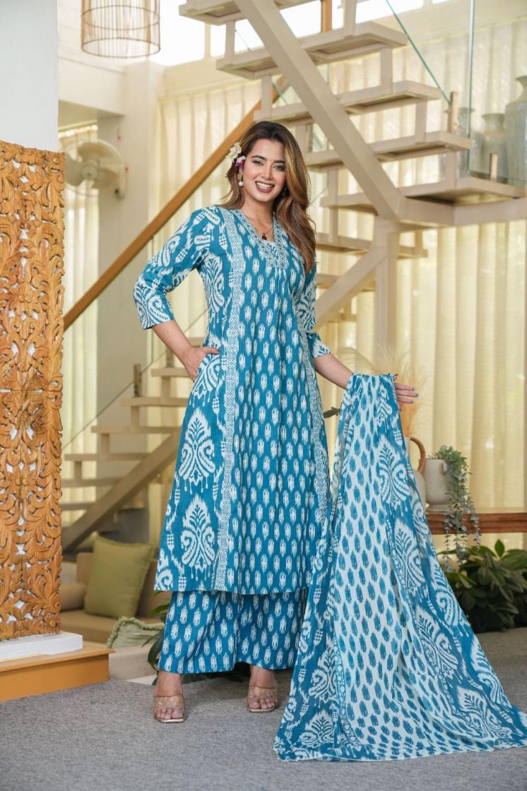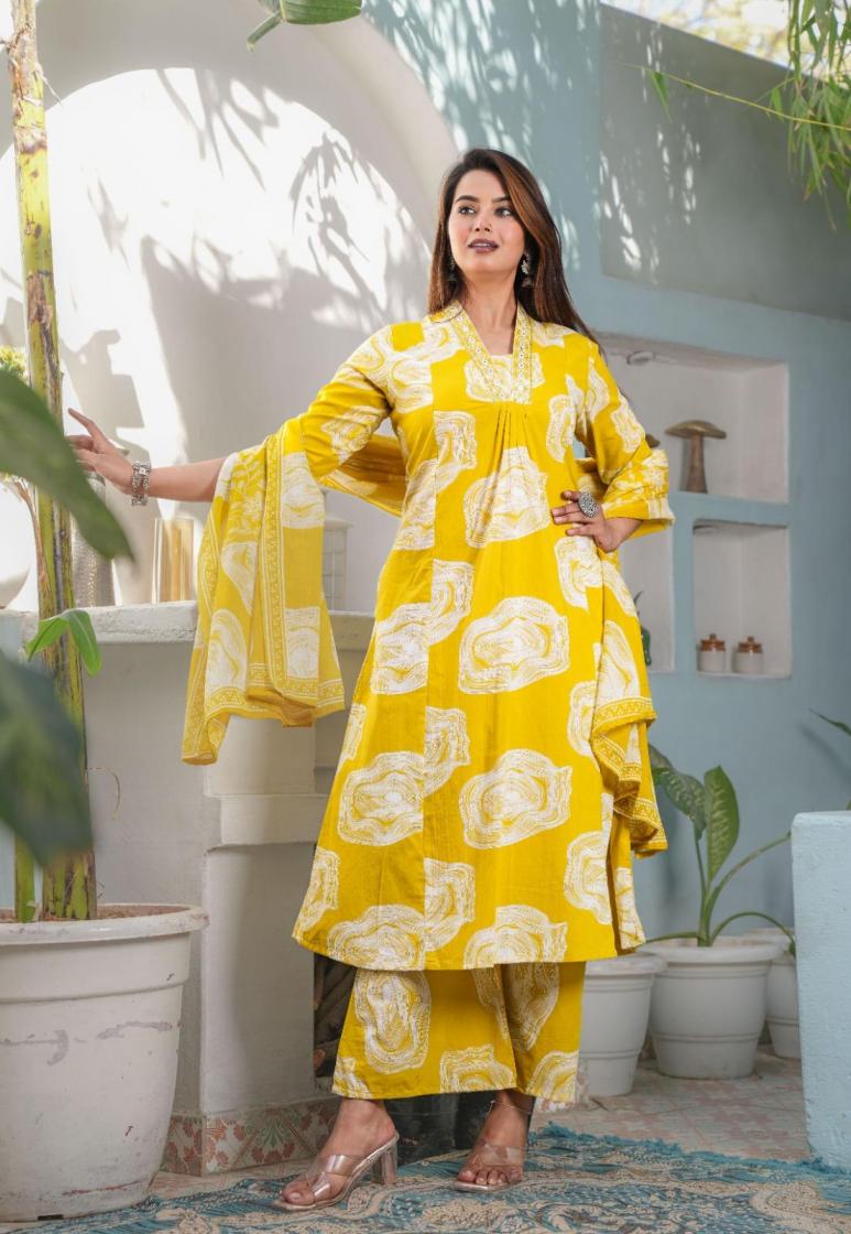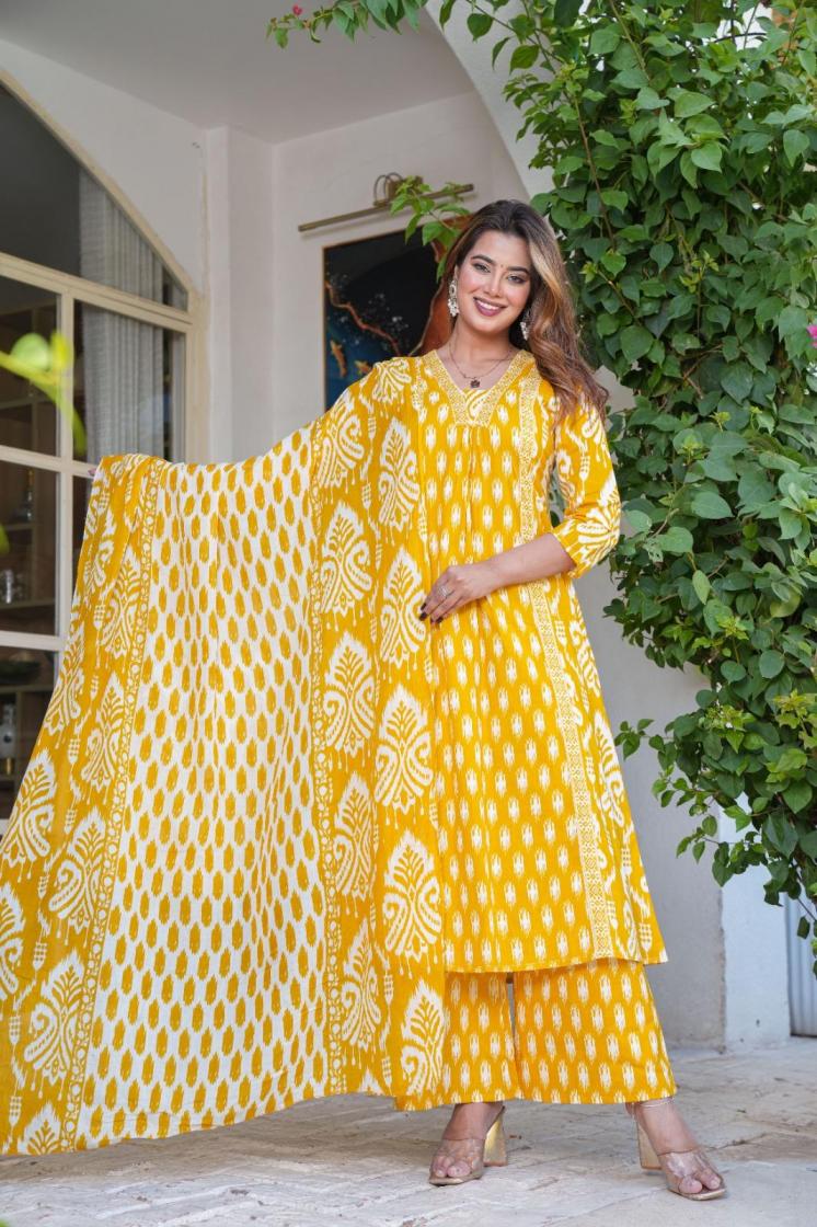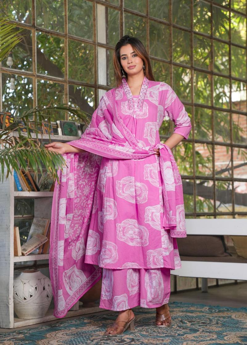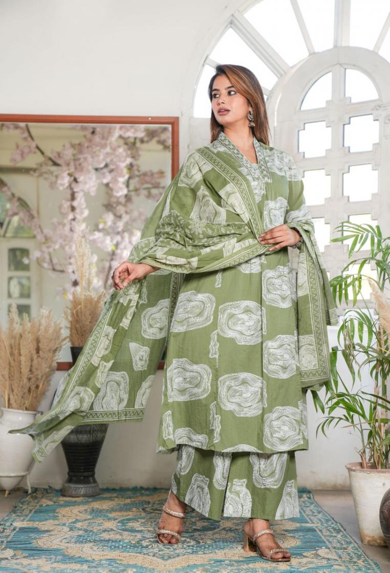 pattern dupatta set cotton readymade stylish look plazzo style combo 3pcs dress