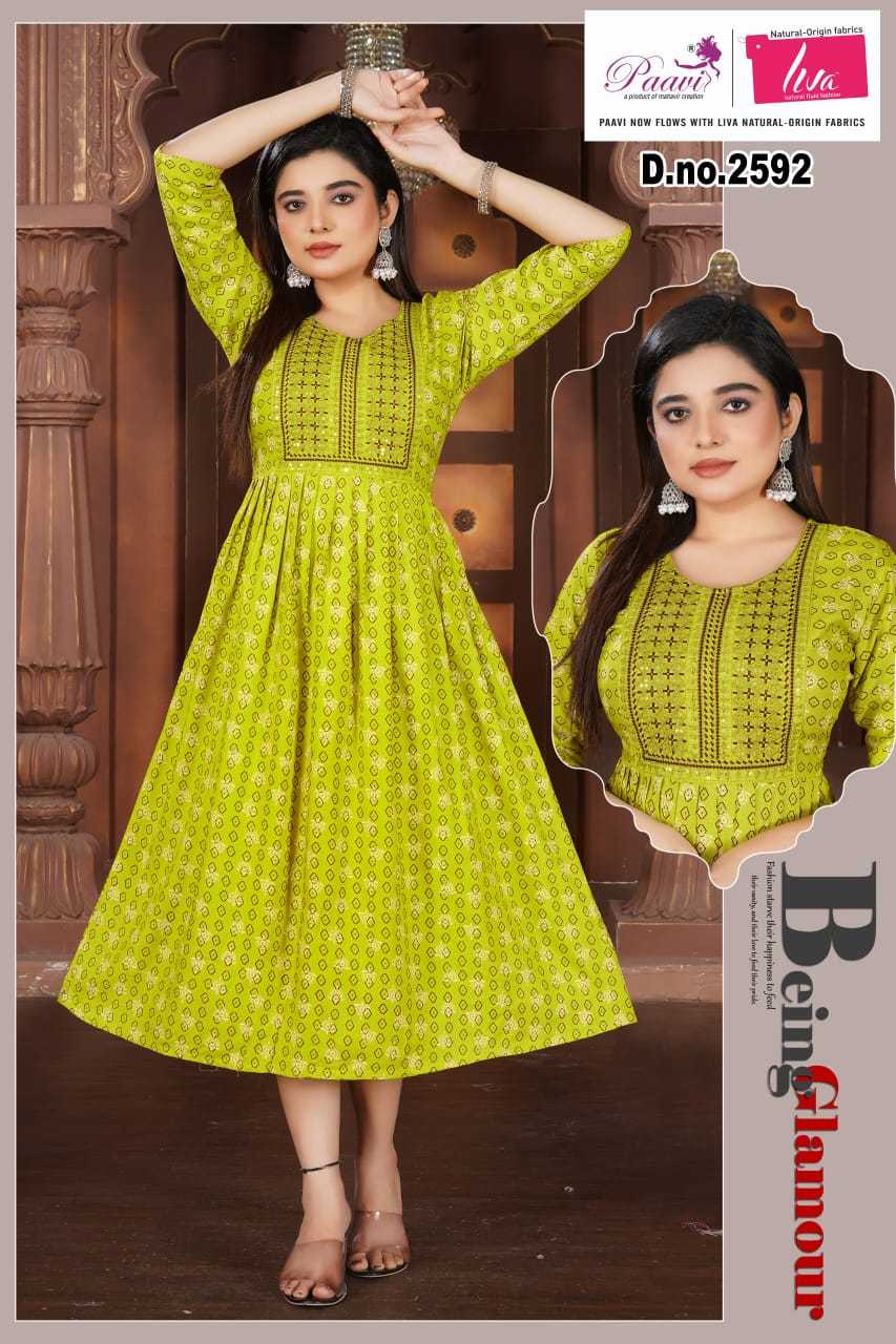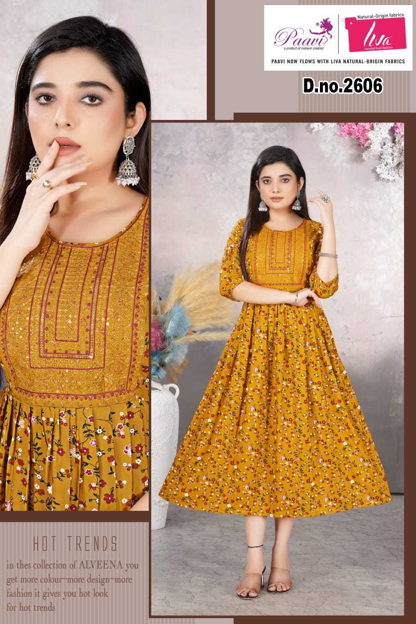 pavi 2592-2607 sequence heavy liva rayon frock style combo kurti