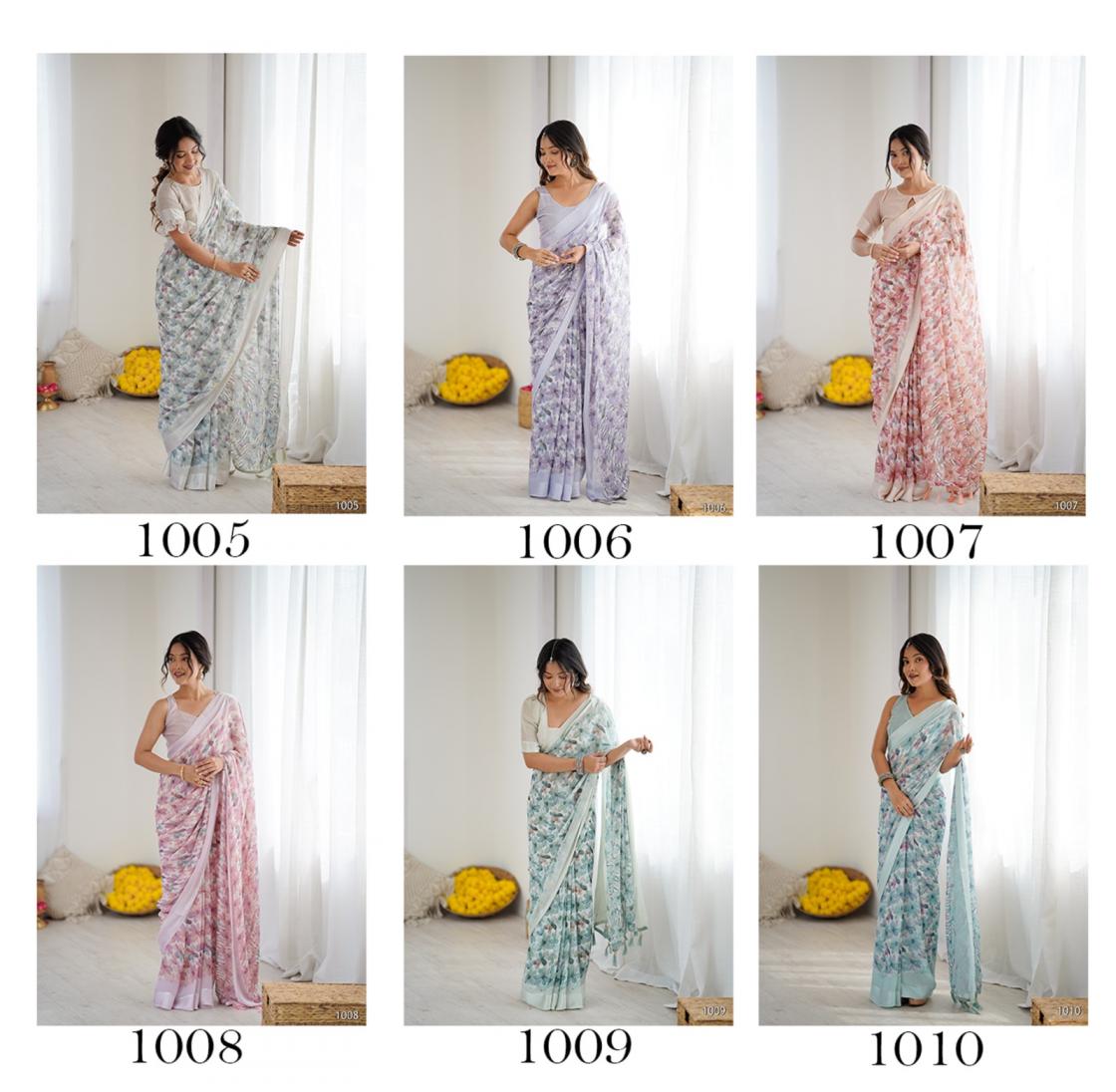 Flaunt your style with simple and uniform saree. Catalog: - Pavitra Vol 1. Fabrics: -Georgette. Saree Length: - 5.50. Blouse Length:-0.80. |