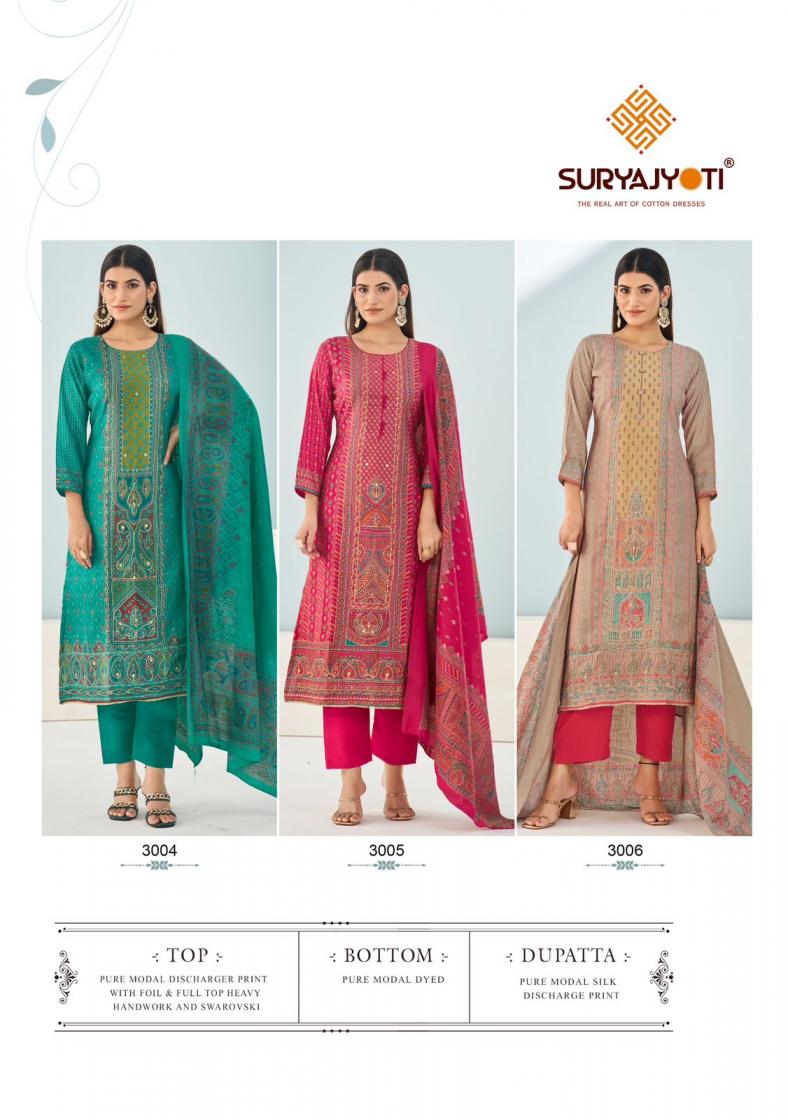 👫DEAR CUSTOMER👫 🙏WELCOME TO SURYAJYOTI 😍LAUNCHING OF SURYAJYOTI’S NEW FANCY CATALOG 📘CATALOGUE:- PAYAL ADVANCE VOL-3 👗TOP:- PURE MODAL DISCHARGE PRINT WITH FOIL,HEAVY HAND WORK FULL TOP AND SWAROVSKI 👖BOTTOM:- PURE MODAL DYED 🧣DUPATTA:- PURE MODAL DISCHARGE PRINT CUT:- 👚2.50-👖2.50-🧣2.25 💸RATE:- 805/- 🧳PACKING:- EXCLUSIVE POUCH PACK WITH BAG