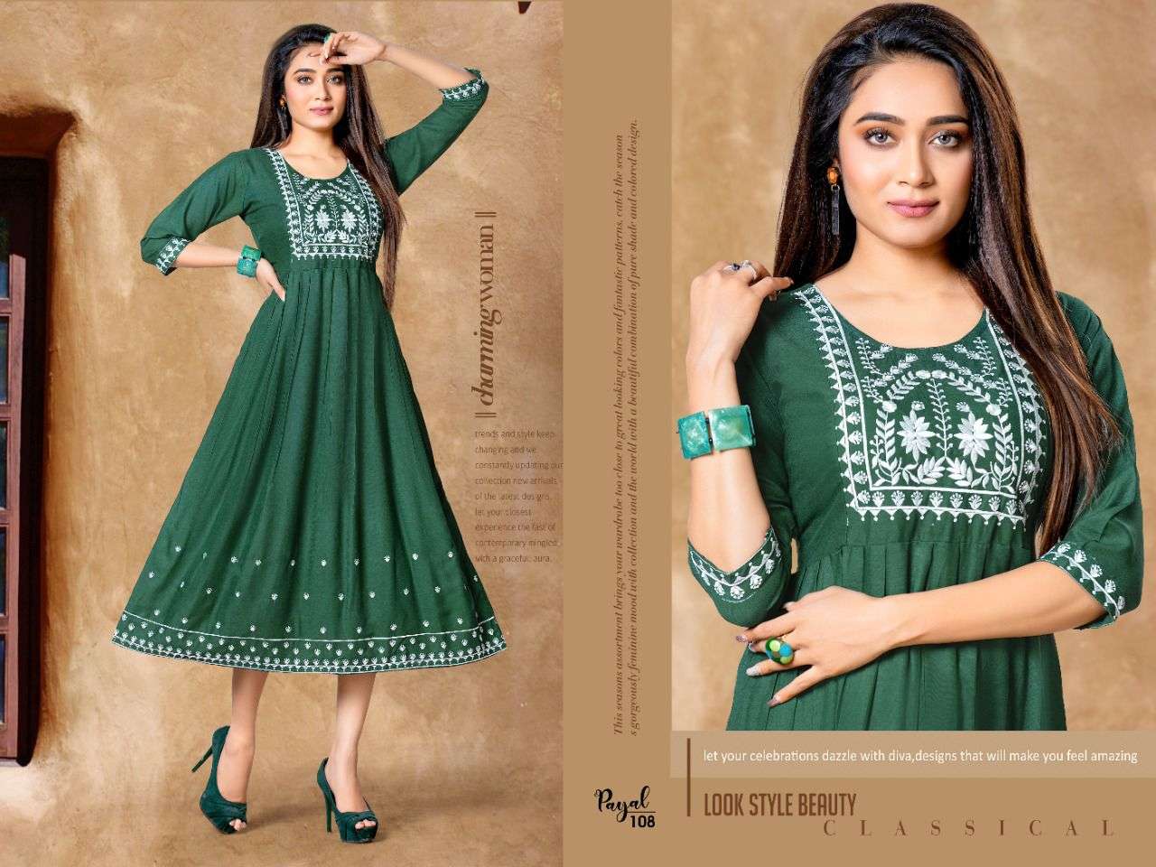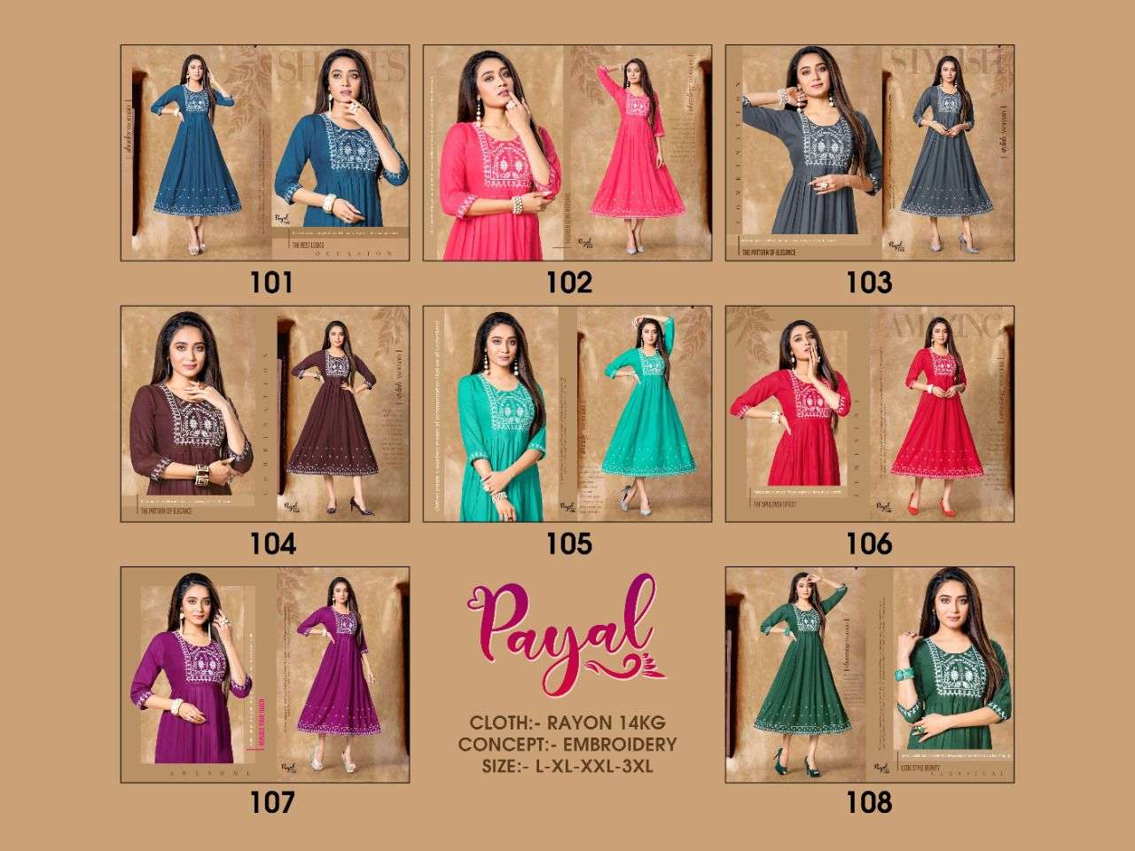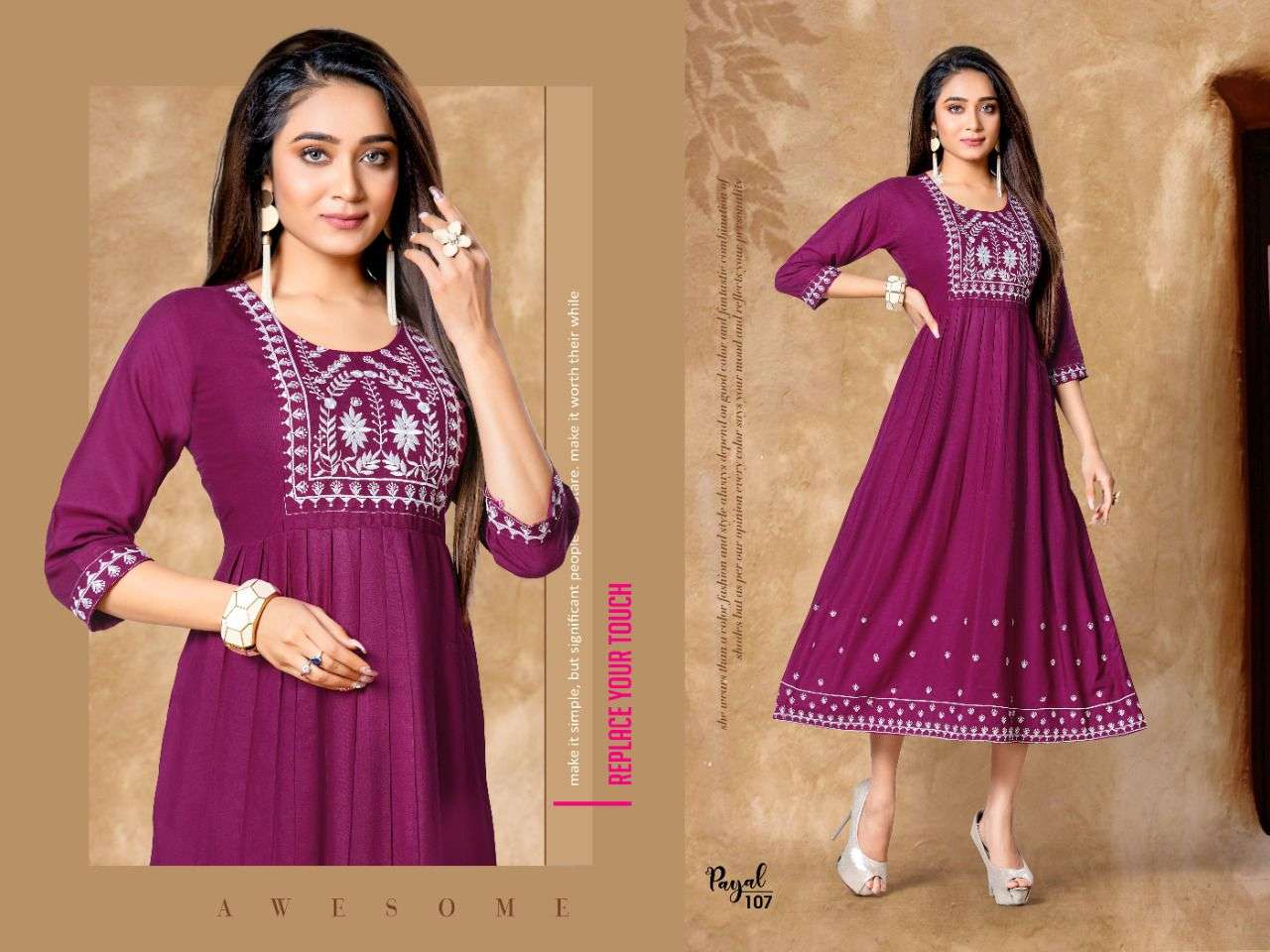 PAYAL BY BEAUTY QUEEN HEAVY RAYON WITH WORK KURTI CATALOG WHOLESALER BEST RATE