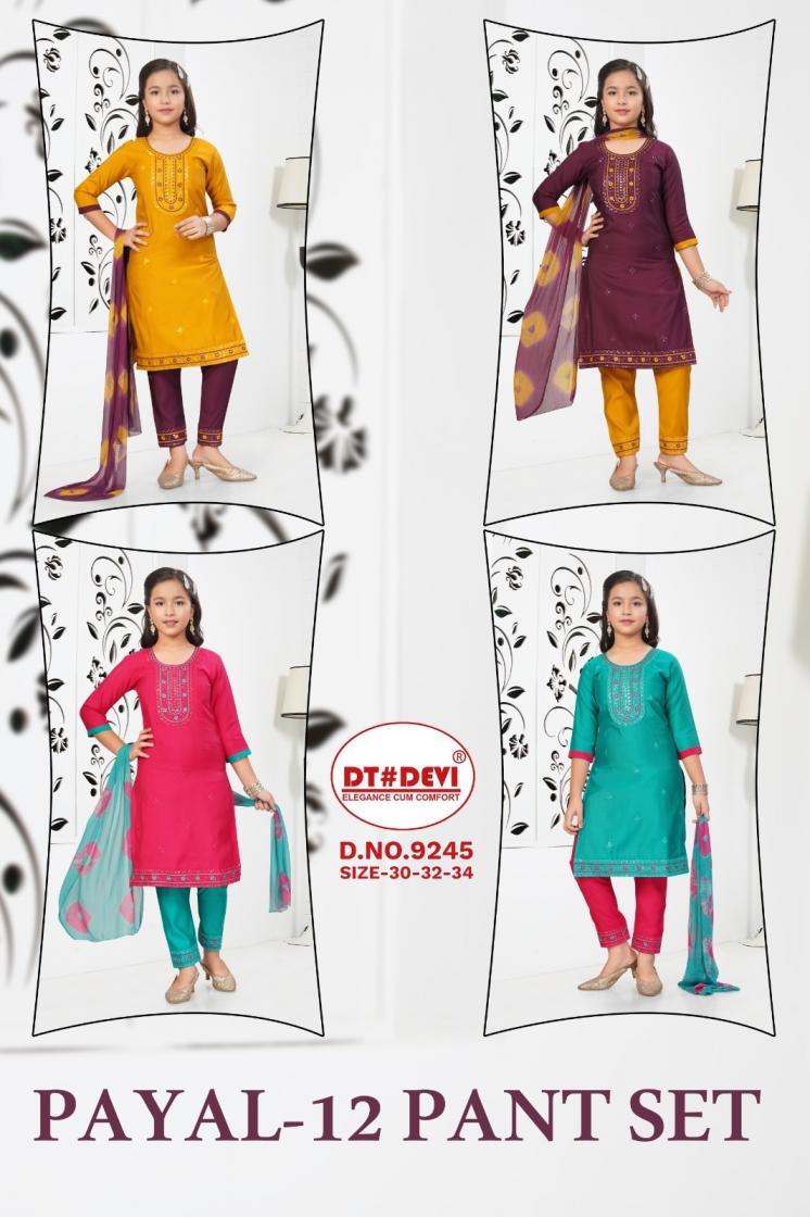 payal vol 12 by dt devi fully stitch 9245 roman silk combo suit for kids