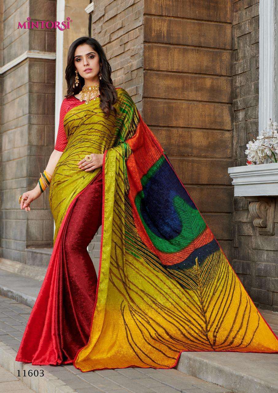 peacock collection vol 1 by mintorsi silk crape printed designer saree