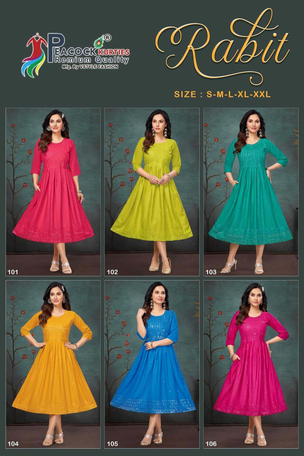 Dear Customers, We are introducing *Peacock * new catalog 📕Catalogue:- RABBIT 👗cloth :- TOP -- plain reyon fabric ✅concept :- *HEAVY REYON WITH FULL PIECES SEQUENCE WORK Length :- 46" MINIMUM Size:- S, M, L,XL,XXL Rate 545 |