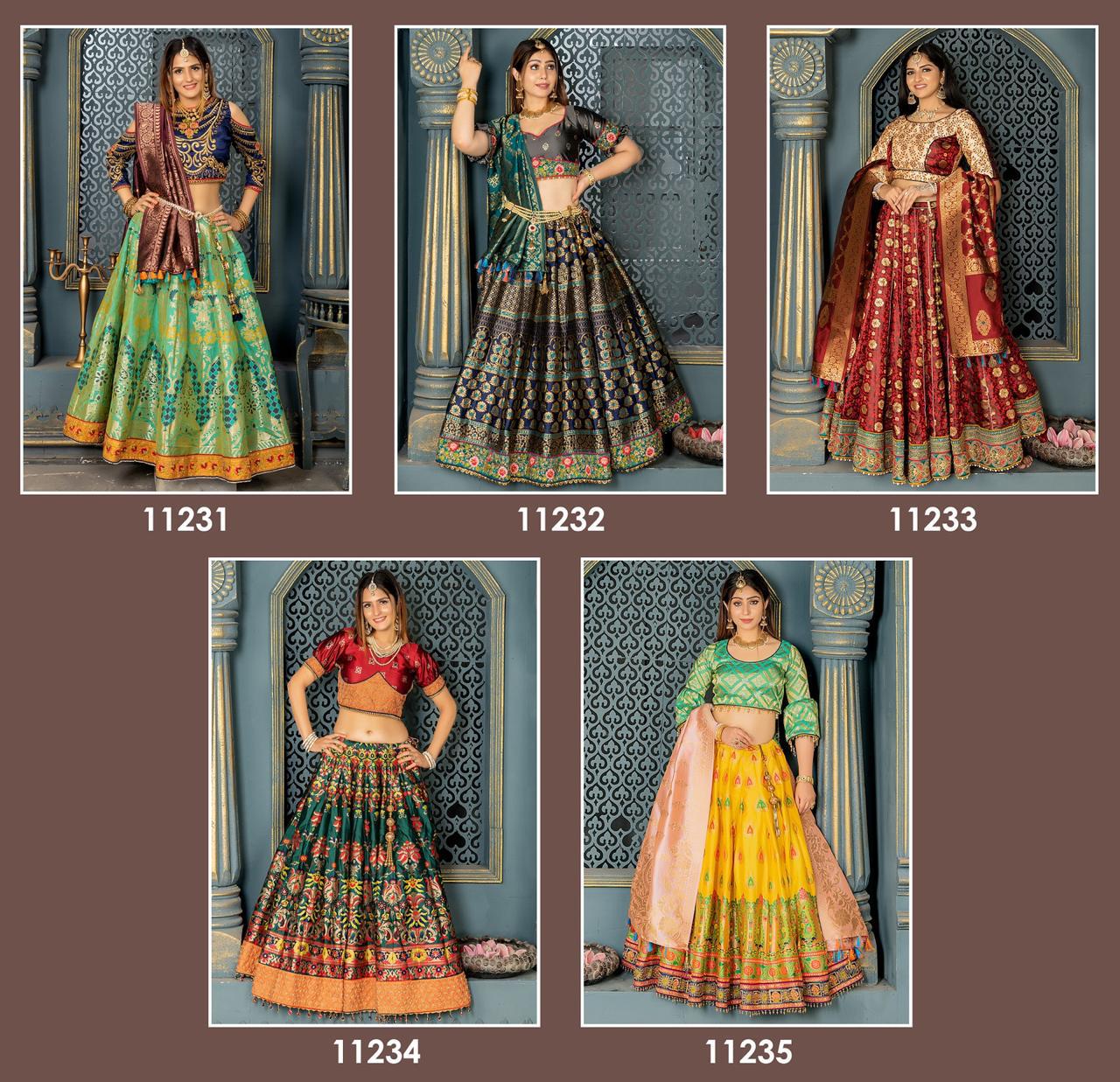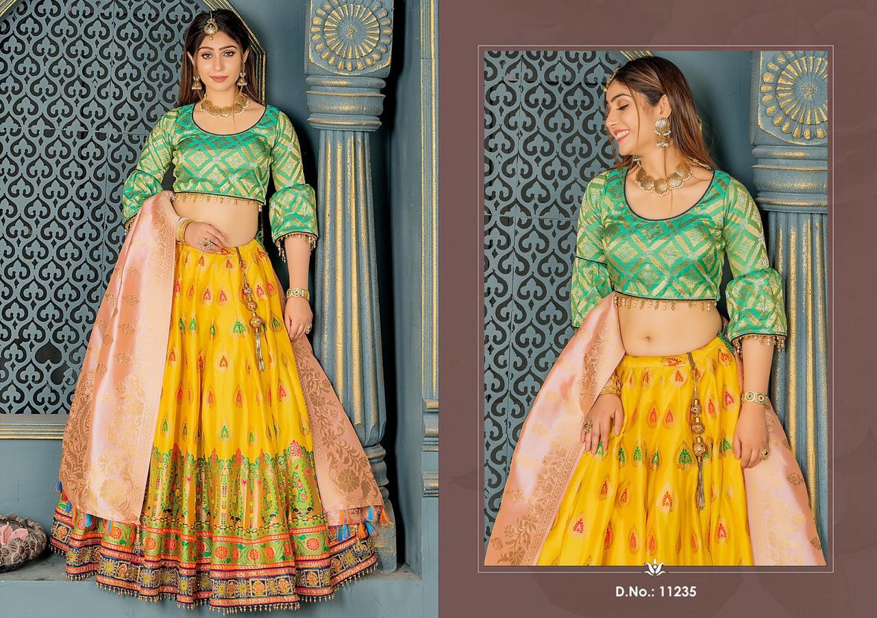 Banarasi silk Lehanga ======================= Peafowl Vol-42 ======================= Febric Details Attached ======================= Design No:- 11231=2595/-₹ Design No:- 11232=2595/-₹ Design No:- 11233=2595/-₹ Design No:- 11234=2595/-₹ Design No:- 11235=2595/-₹ ======================= *Dispatching:-Today * |