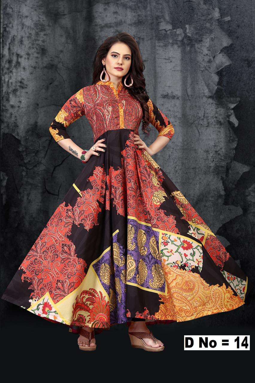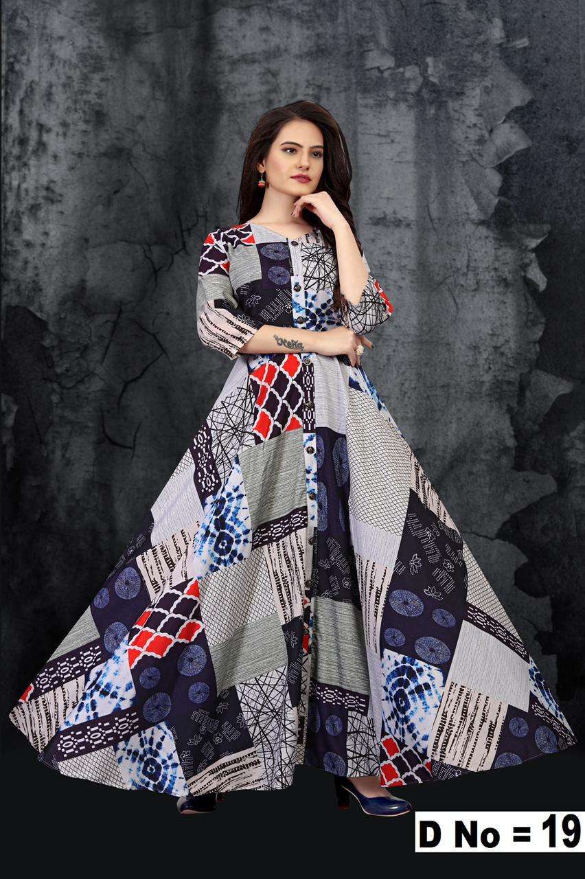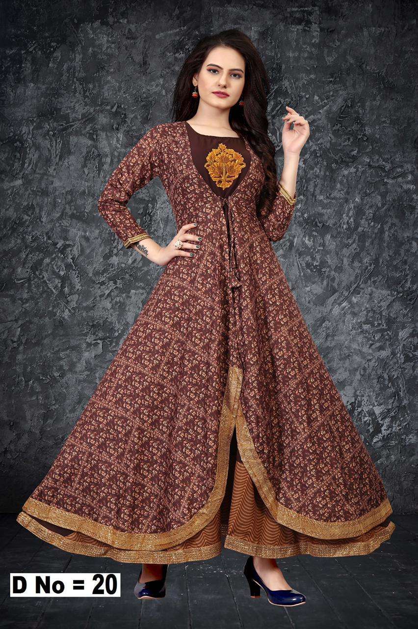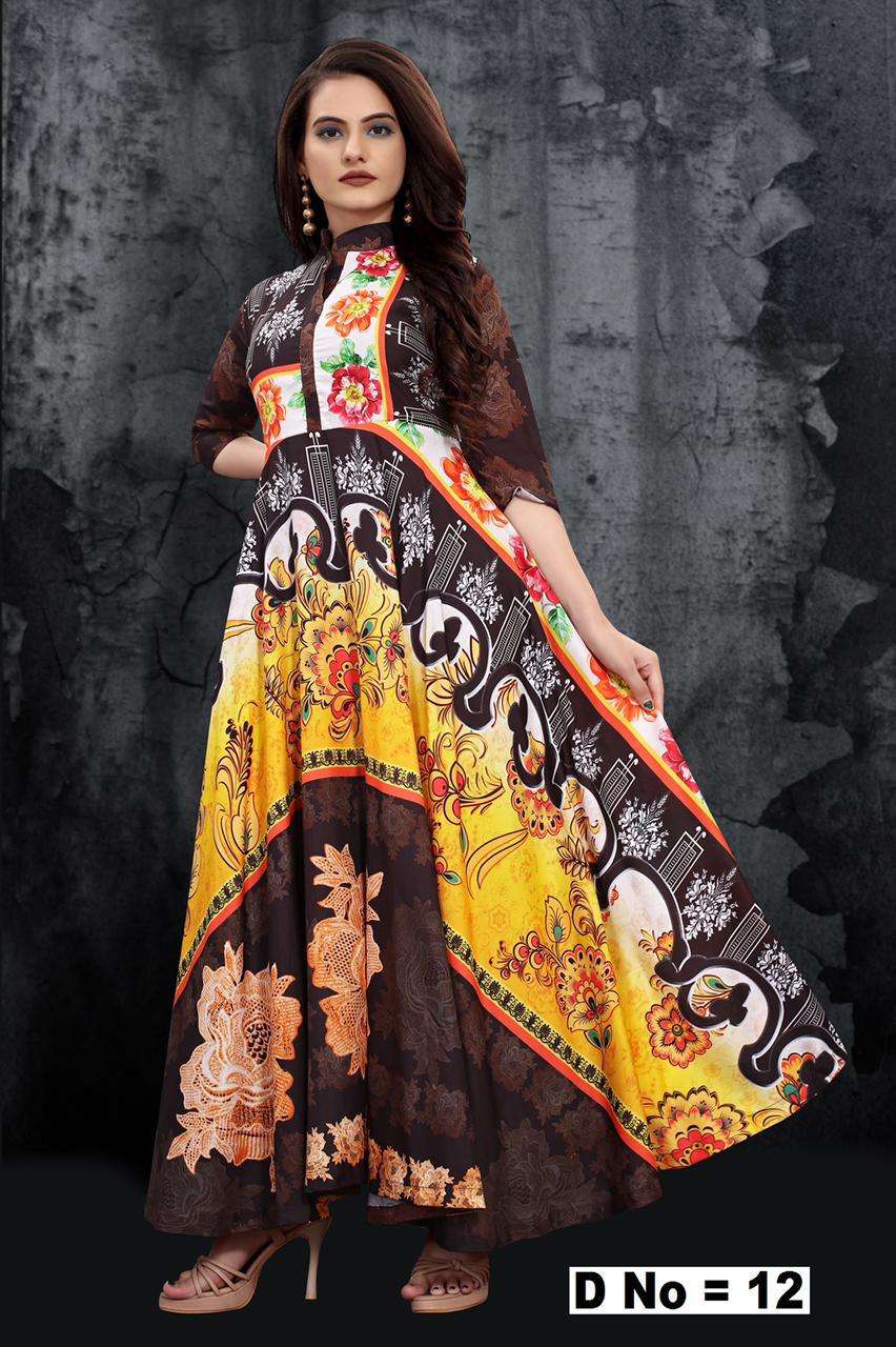 Women wear Print Gown ======================= Â Â Â Peafowl Vol-69 ======================= Febric Details Attached ======================= ======================= Design No:- 12= 899/- Design No:- 13= 899/- Design No:- 14 = 899/- Design No:- 15 = 899/- Design No:- 16 = 899/- Design No:- 17 = 899/- Design No:- 18 = 899/- Design No:- 19 = 899/- Design No:- 20 = 899/- ======================= Gown Fabric=Maslin silk Inner fabric=Micro Crap Jacket Fabric=Maslin Silk Work-Digital Print ========================= 1-Pise Weight-1 kg Size = S-M-L-Xl ========================= This is a Original Product Photo-Shoot Product. ========================= Dispatch = Today Delivery |