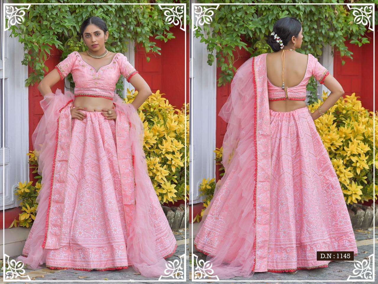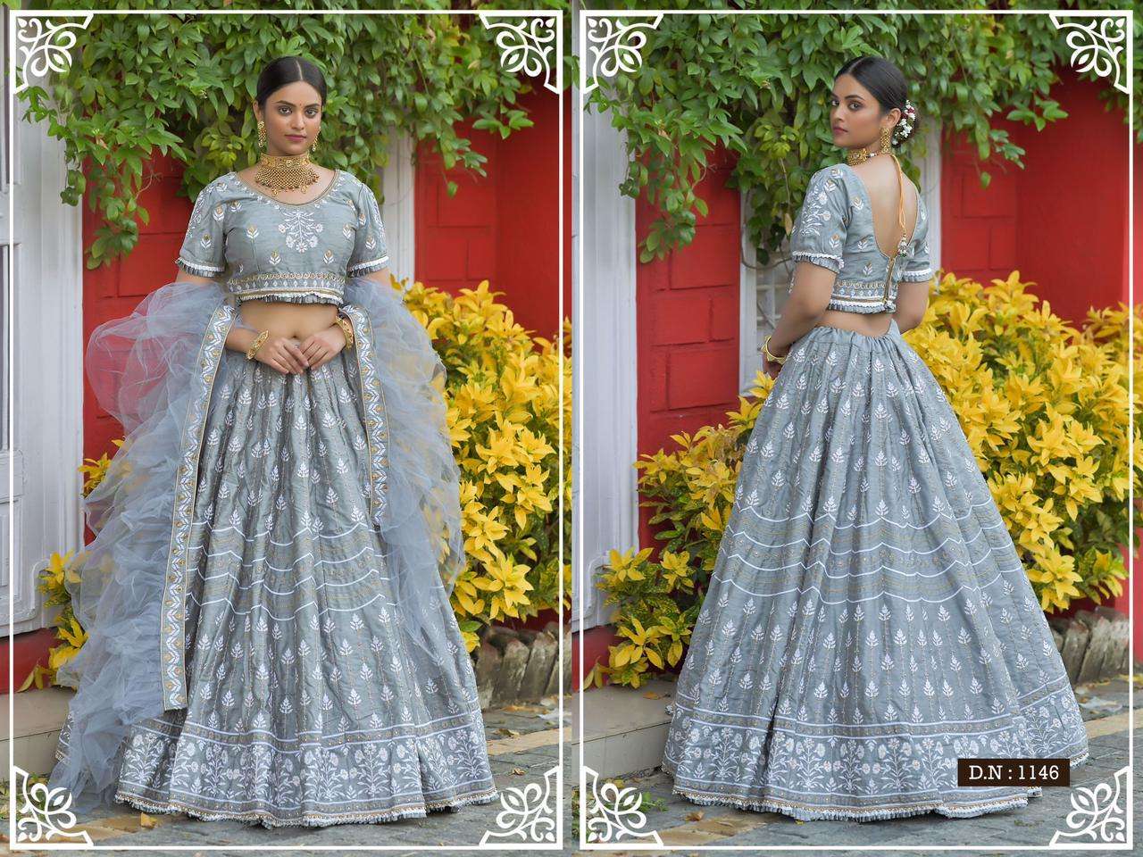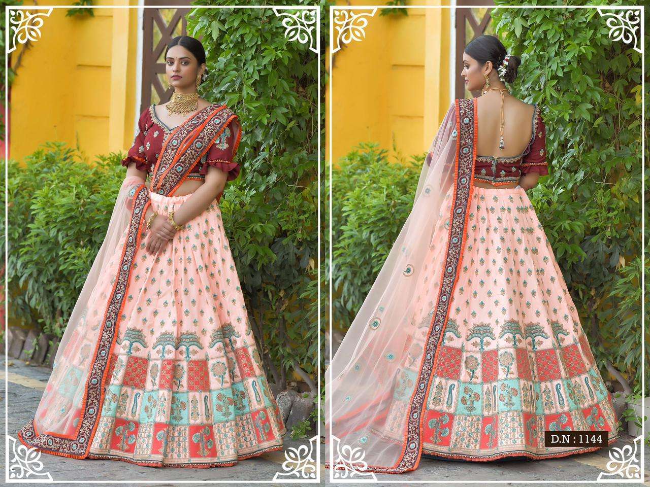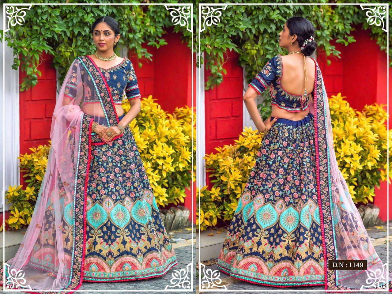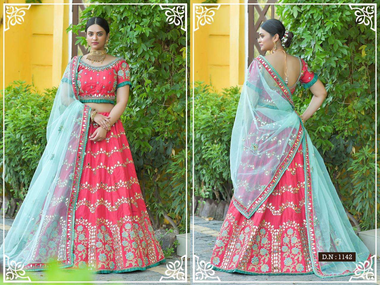 Women wear Bridal Lehangas ======================= Â Â Â Peafowl Vol-77 ======================= ========================= Design No :-1141 = 3999/- Design No :-1142 = 3999/- Design No :-1143 = 2699/- Design No :-1144 = 2699/- Design No :-1145 = 2699/- Design No :-1146 = 2699/- Design No :-1147 = 2699/- Design No :-1148 = 2699/- Design No :-1149 = 2699/- Design No :-1150 = 2699/- ======================== Lehangas Fabric=Adda Silk & chennai Silk Choli fabric=Adda Silk & chennai Silk Dupatta Fabric=Soft net Work- Resham & Embroidery ========================= 1-Pise Weight= 2.0Kg Size-Up to 42 Bust and waist |