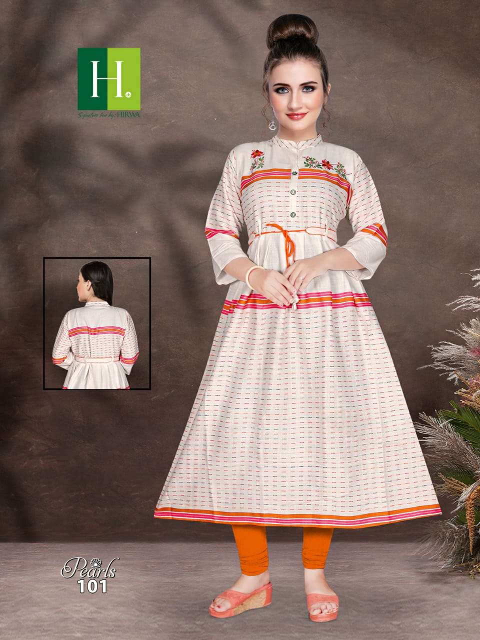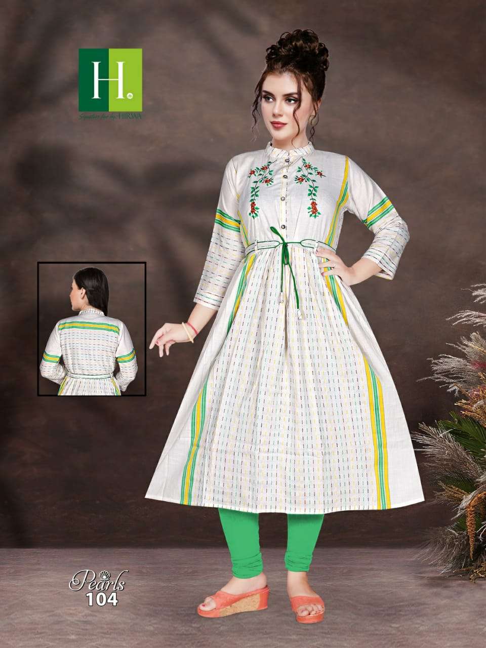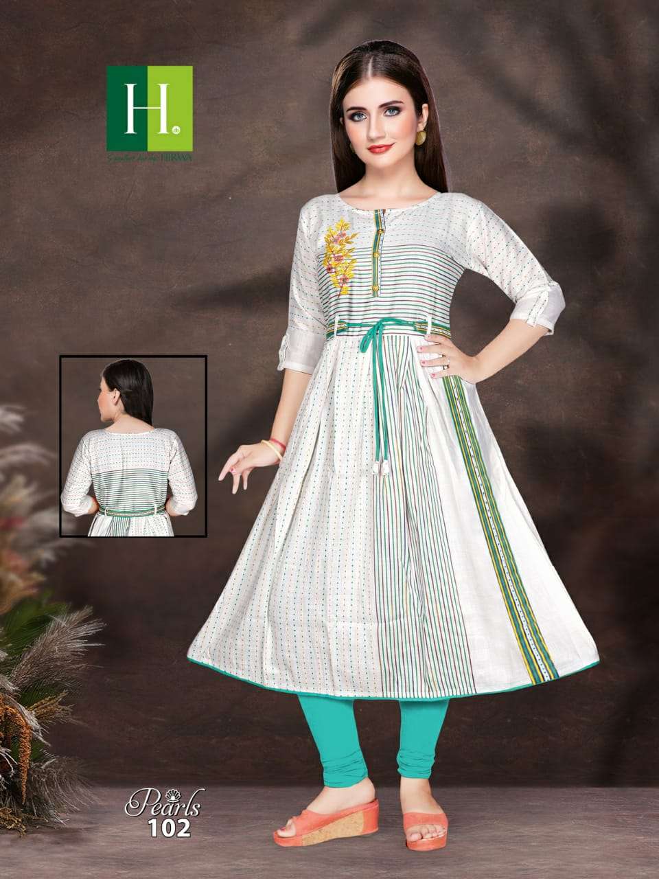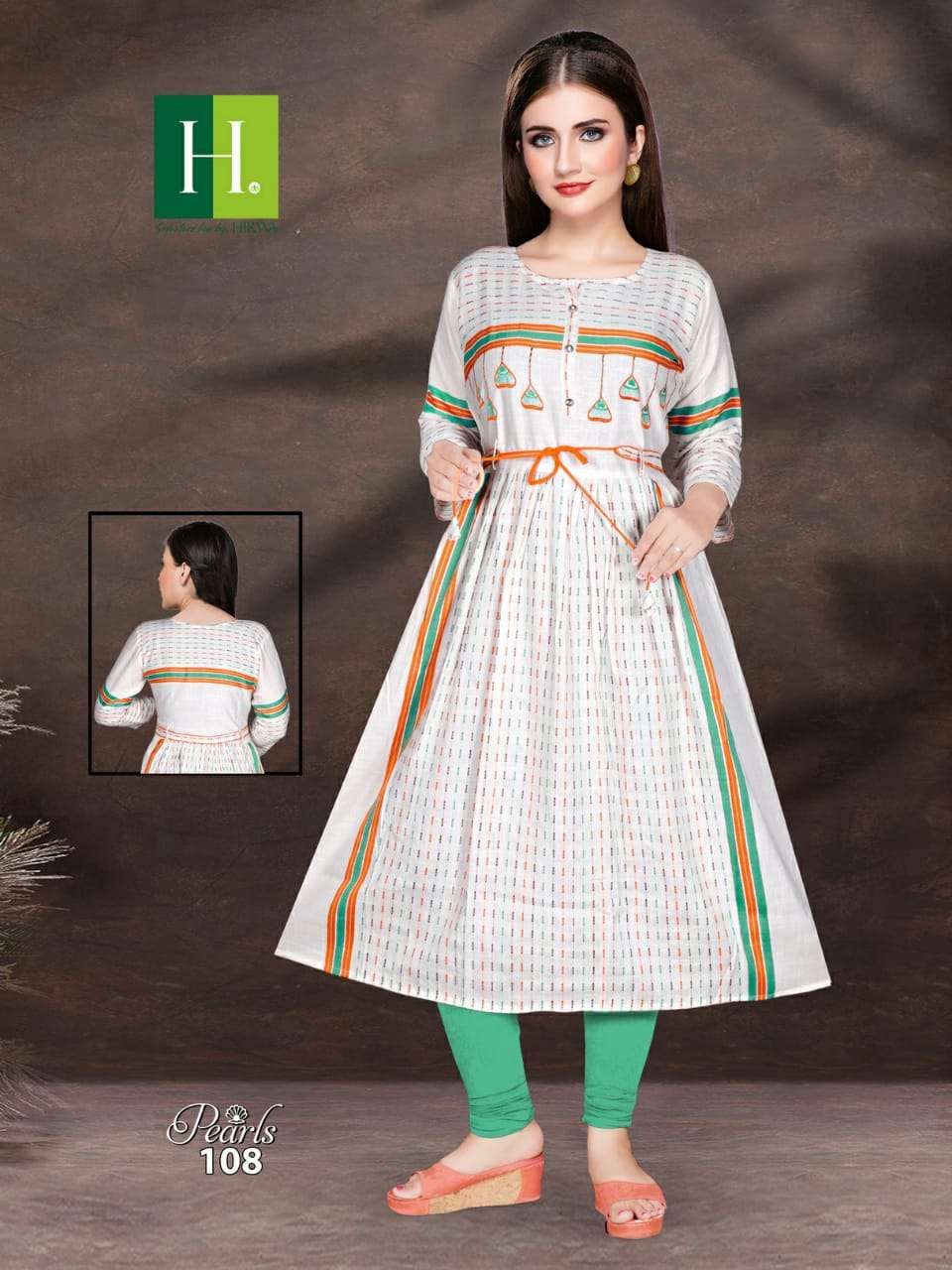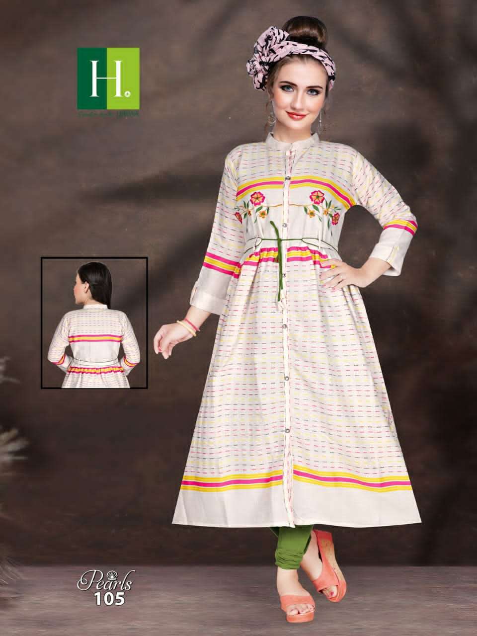 H.DOT FROM HIRWA PRESENTSÂ NAME: PEARLS TOP: *RAYON * CONCEPT: LONG GHERRA KURTA WITH BELT LENGTH: 48" DESIGN: 8 SIZE: Â L, XL, XXL RATE: 465/- |