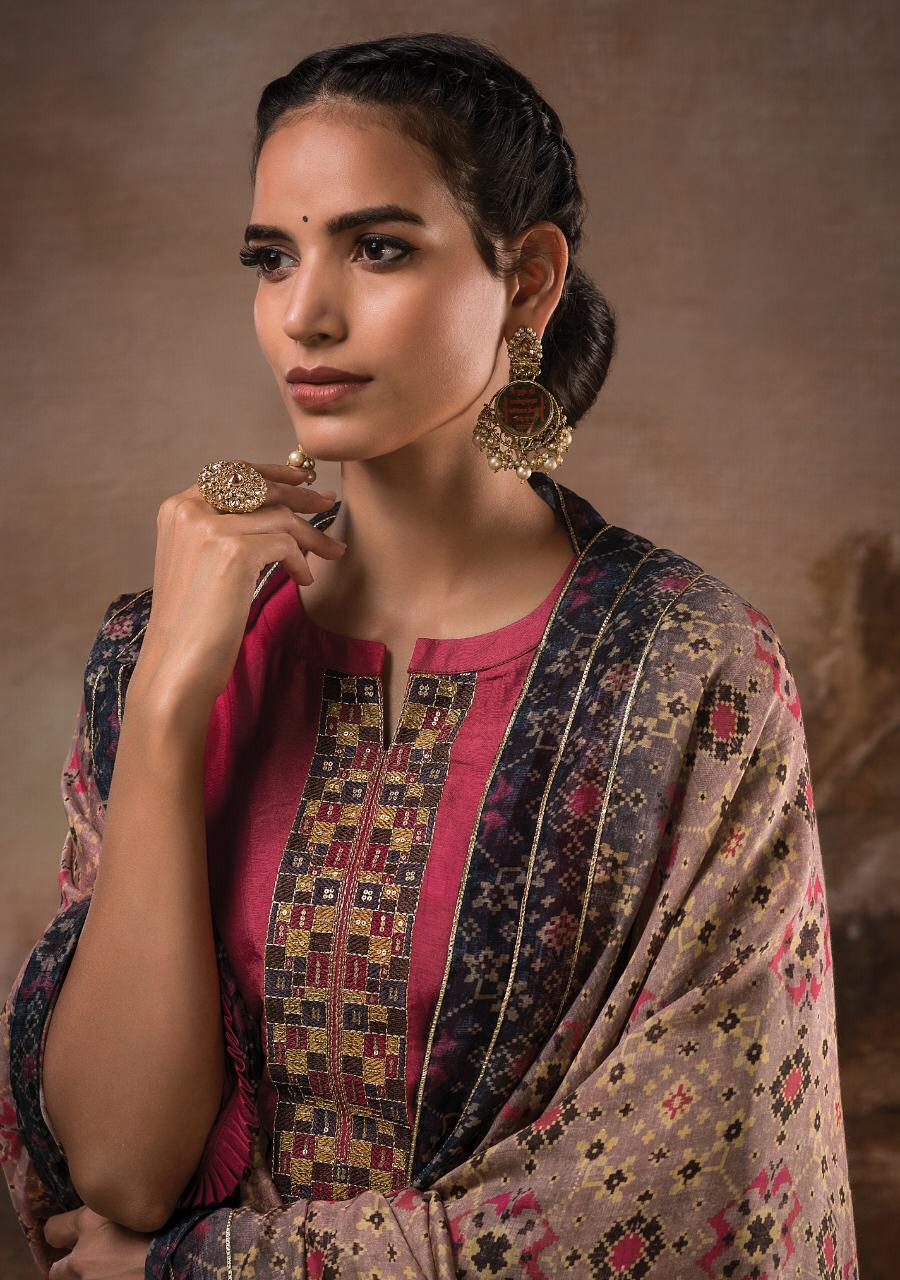 Pehlu By Naariti Russian Silk With Embroidery Printed Dupatta Exclusive Dress Materials