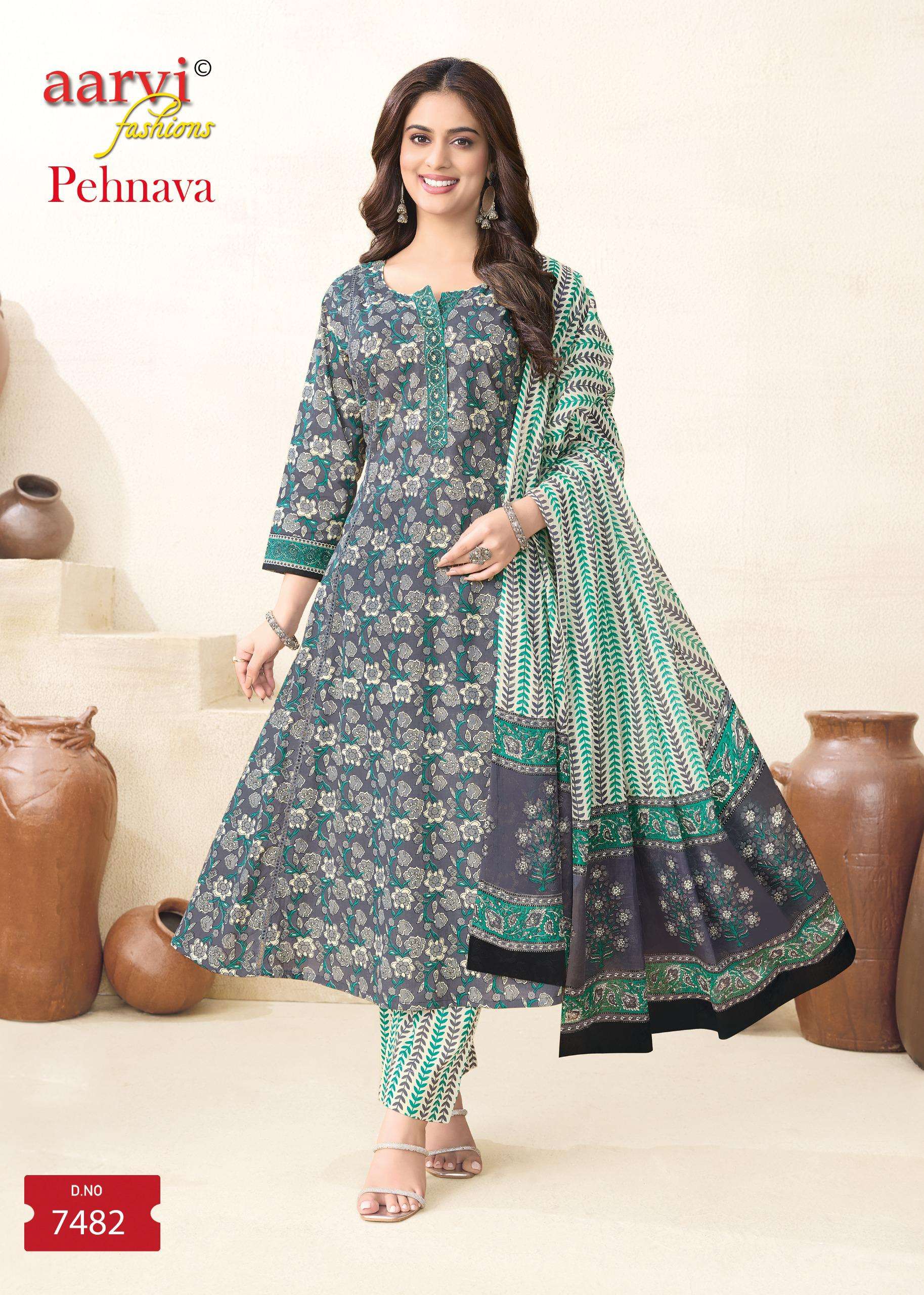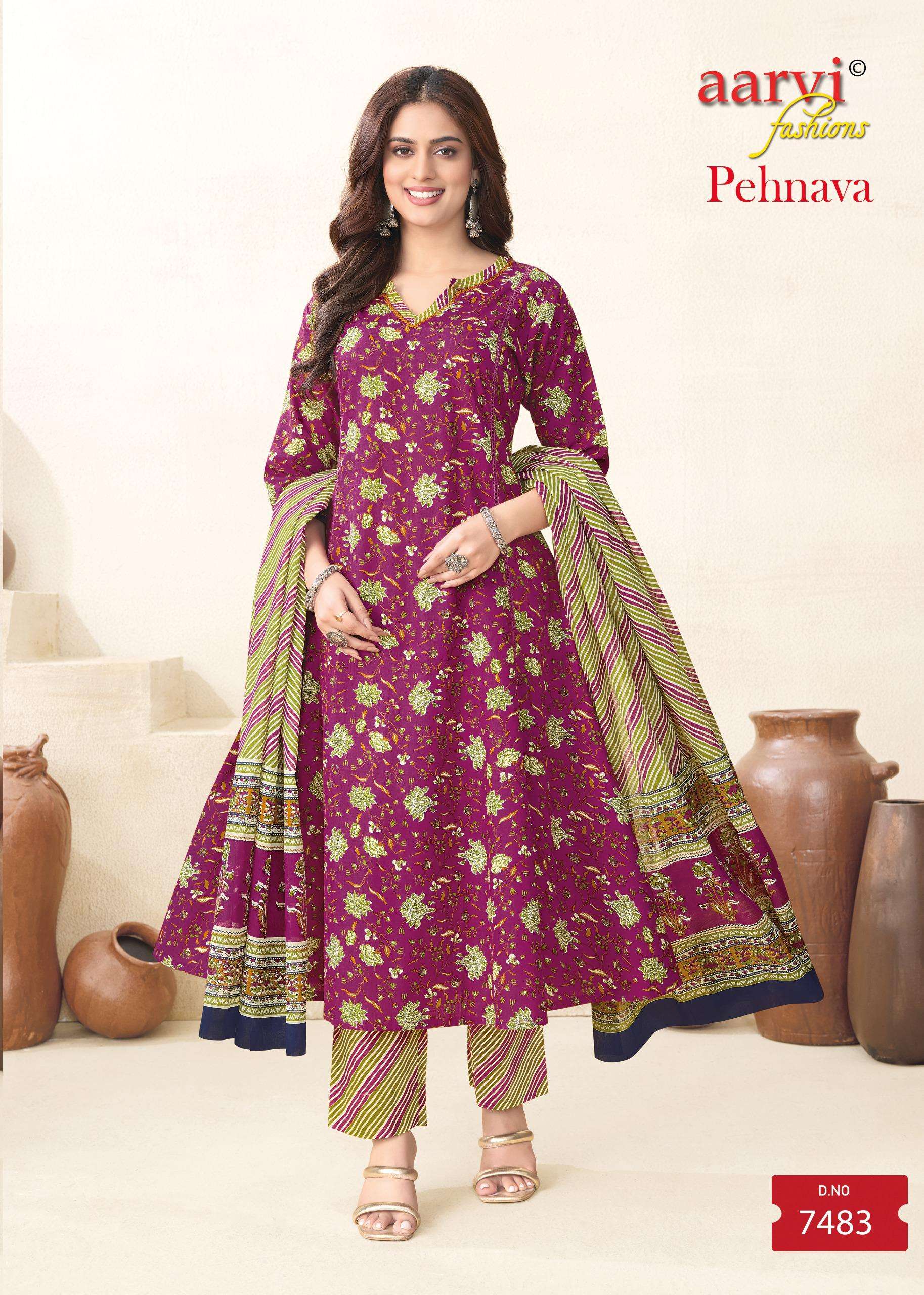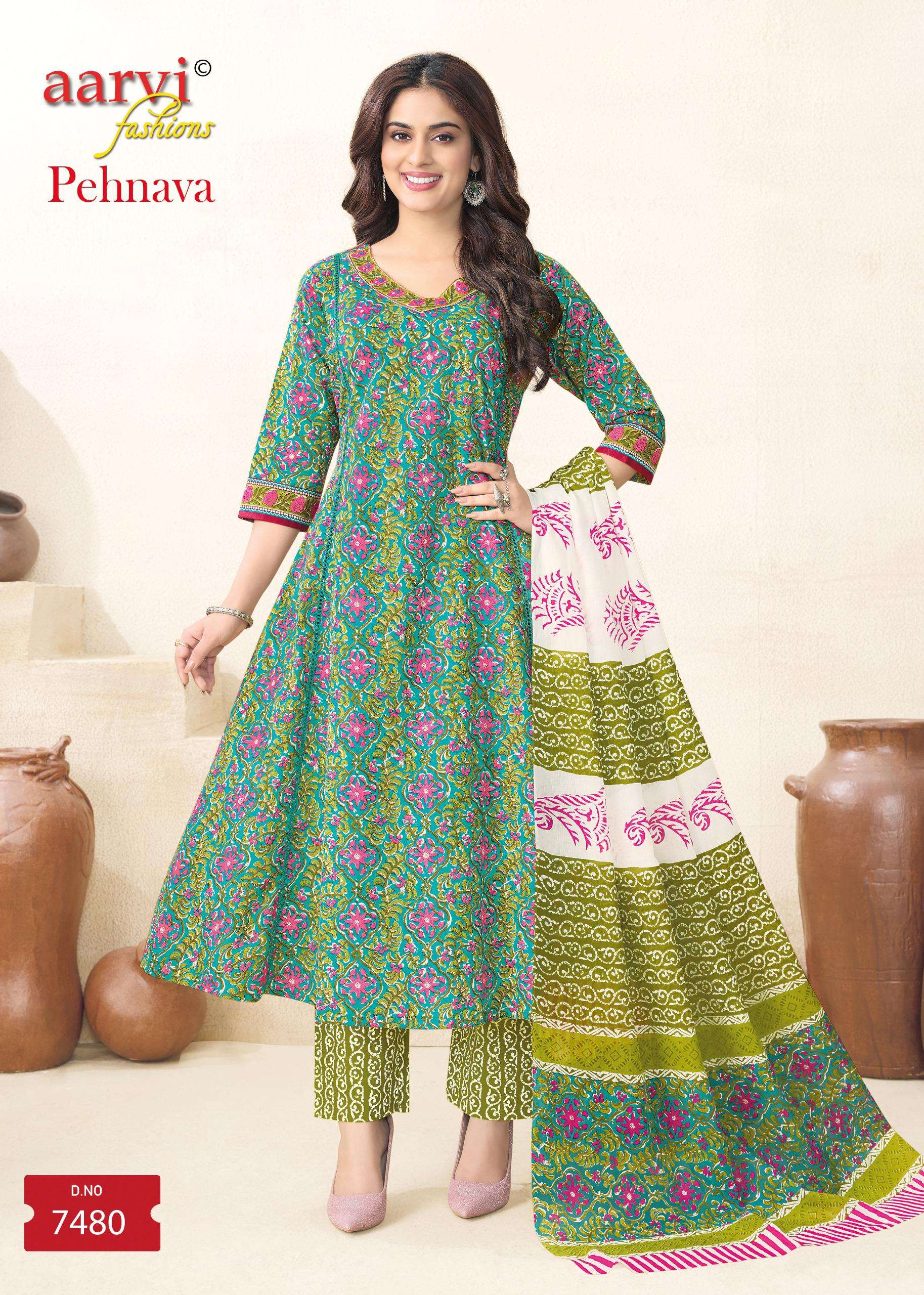 pehnava vol 1 by aarvi fashion cotton anarkali style full stitch suit for womens