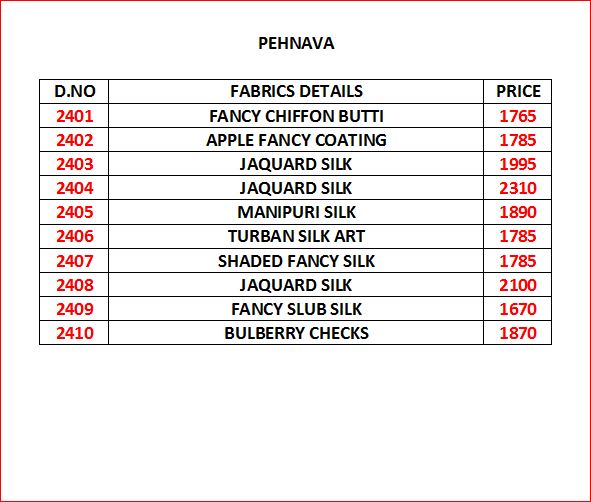 PEHNAVA SAREE LAUNCH OUR NEW COLLECTION ♻ PEHNAVA - VOL 4 ♻ SERIES 2401-2410 SET WISE AVAILABLE Ratelist Attached |