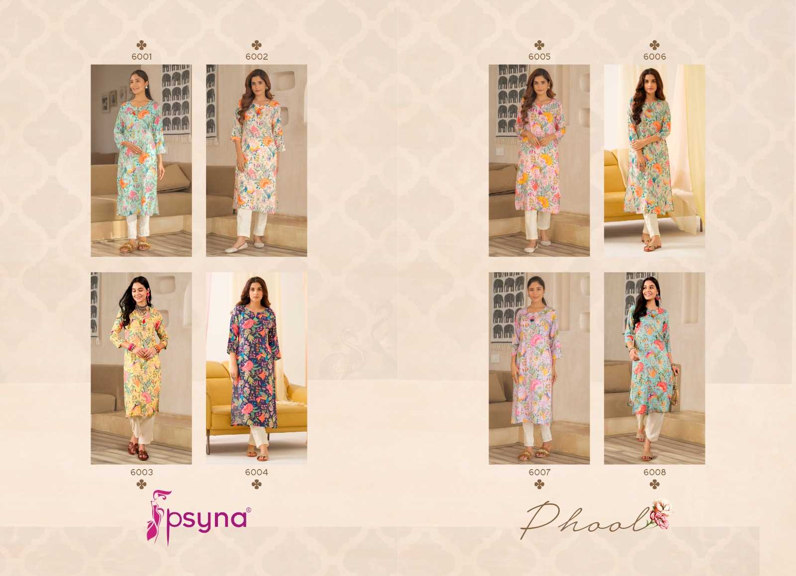 phool vol 6 by psyna stylish look rayon readymade kurti wholesaler