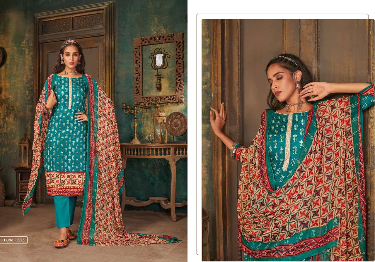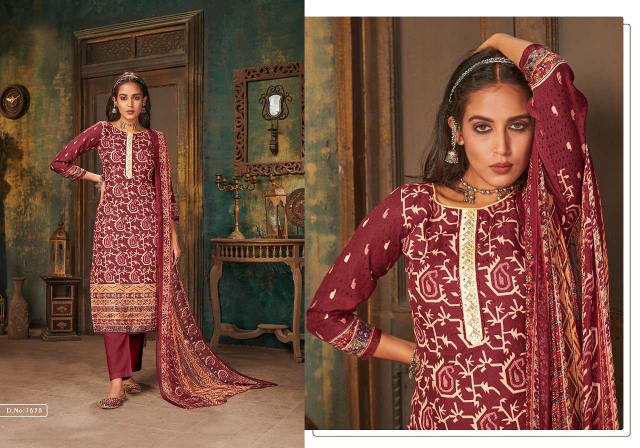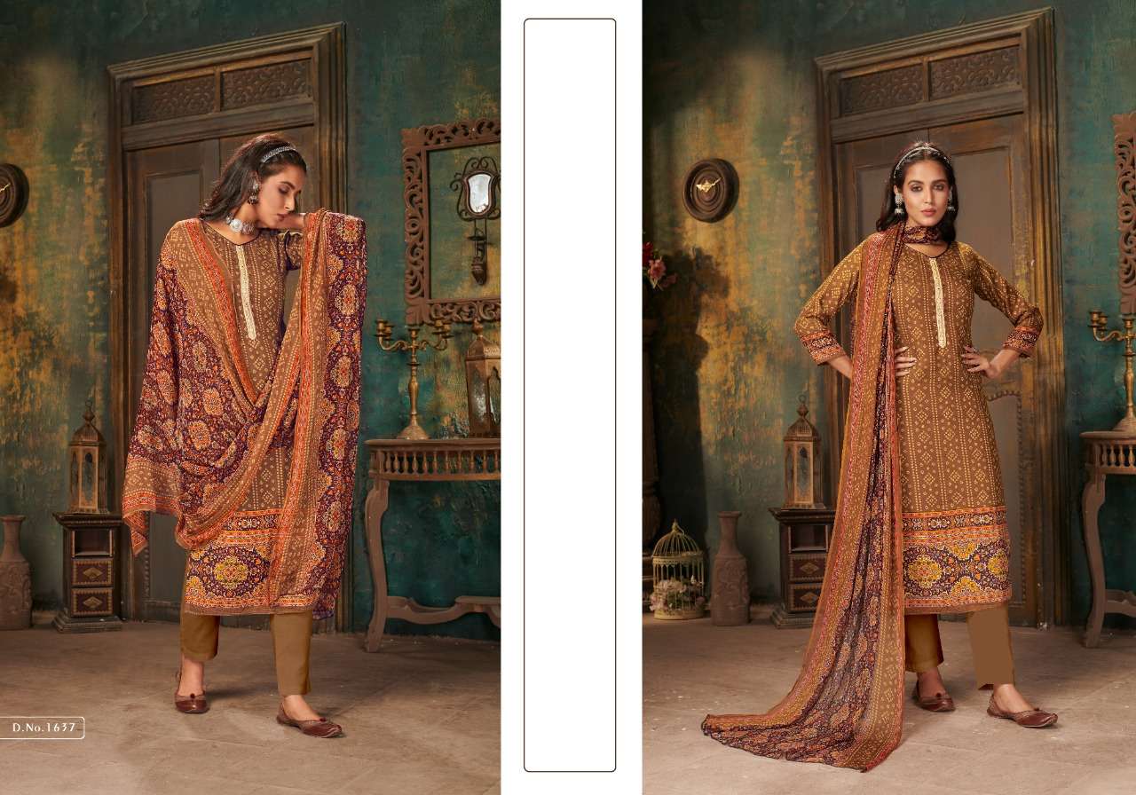 BIPSON Brings ..... TOP :- _ Pure Pashmina Print With Decorative Neck Patti Work 2.5 MTR BOTTOM :- Pure Pashmina Dyed 2.75 MTR DUPATTA :- Pure BEMBERG chiffon beautiful Print 2.25 MTR 8 PS Catalog with Leather Bag @ 645 /- |