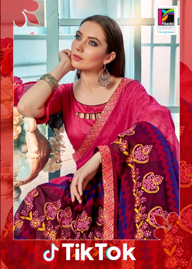 Pikasho Fashion Tik Tok Fancy Weightless Printed Embroidery Saree Collection