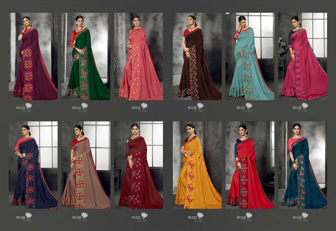 PIKASHO FASHION ZAREEN VOL-2 ALL FANCY FABRIC DOLA SILK,RANGOLI BLOOMING,VICHITRA FANCY CLOUR LONG STICH FANCY EMBOREADRY WORK BORDER FANCY PATTERN RATE:-850/- PCS:-12 Set To Set . GST 5 Percent Extra. Delivery from today |