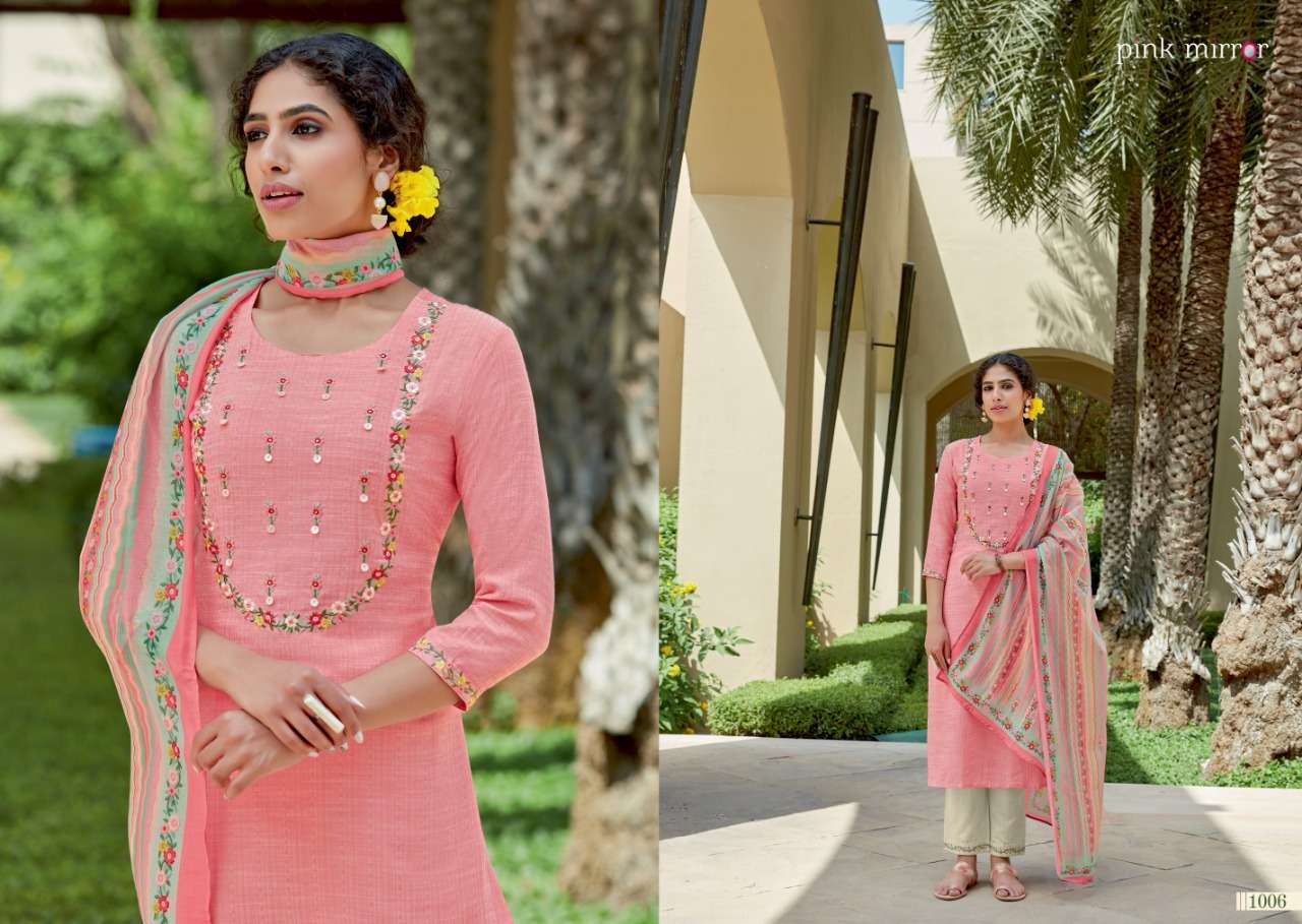 pink mirror crayons viscose embroidery readymade salwar kameez