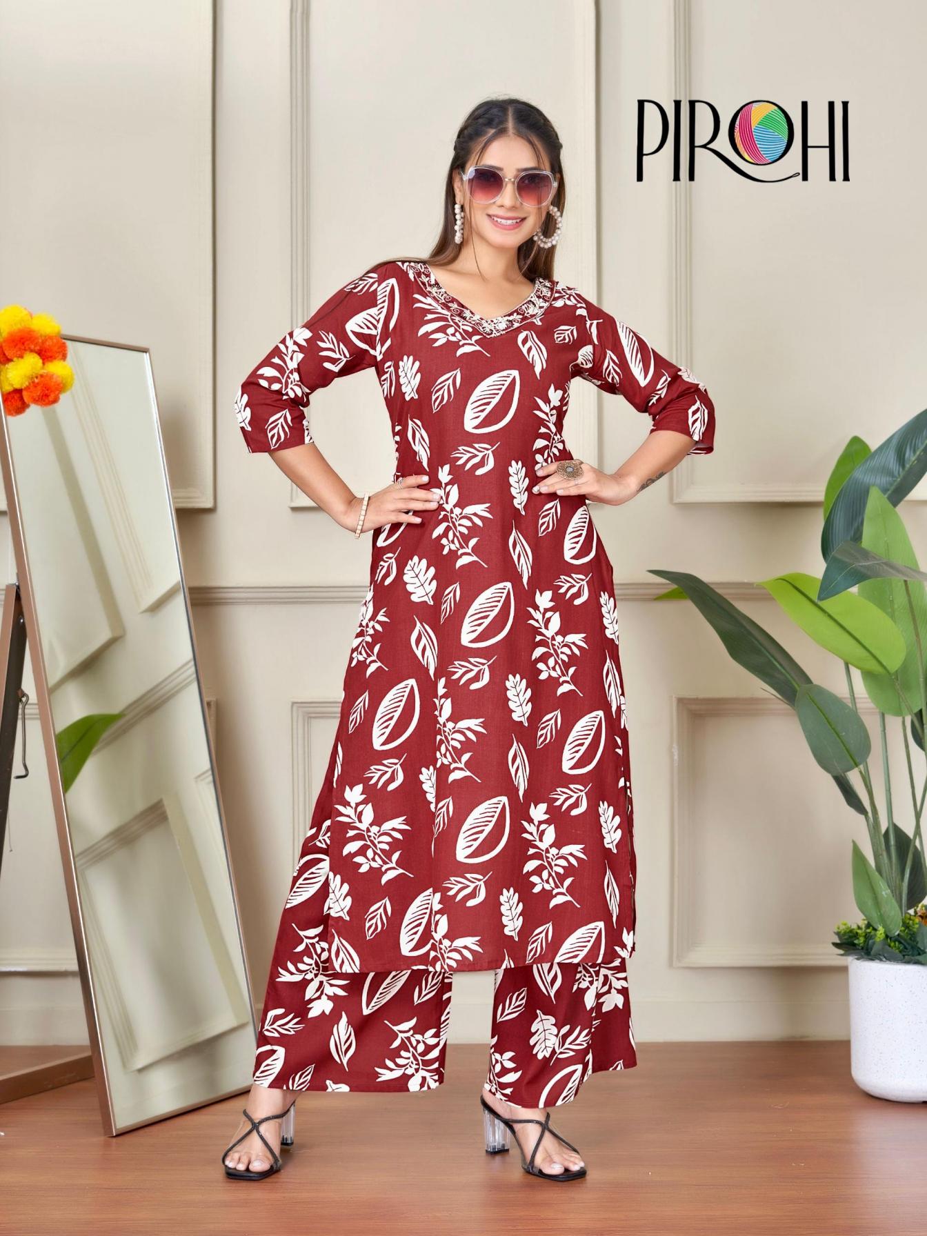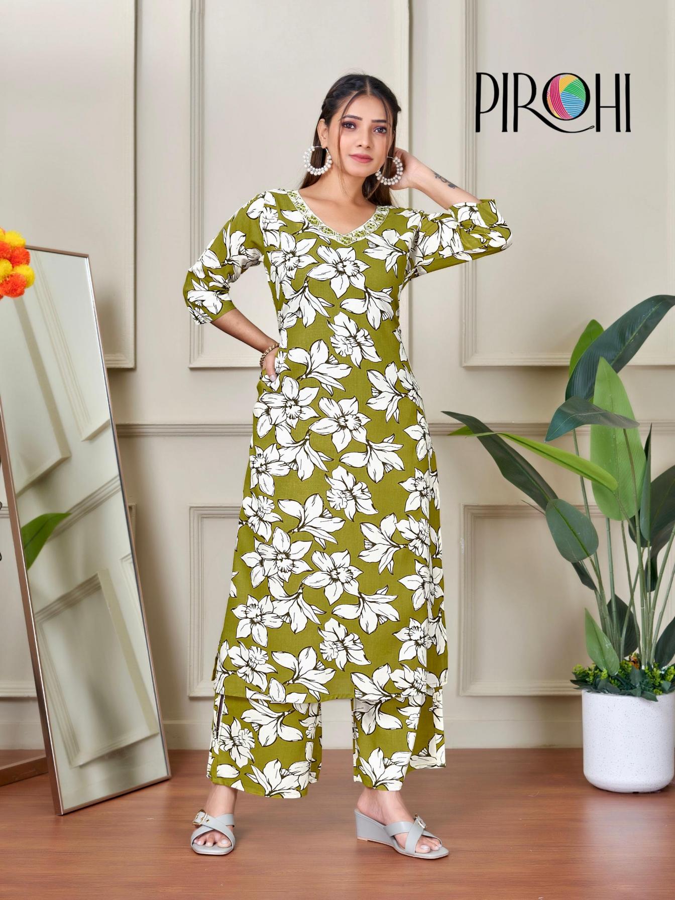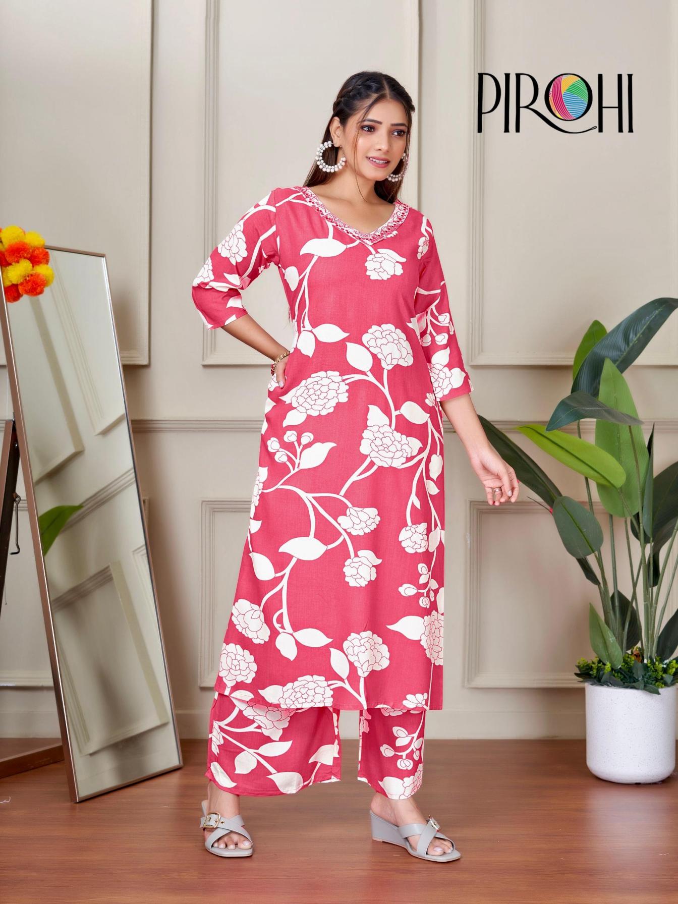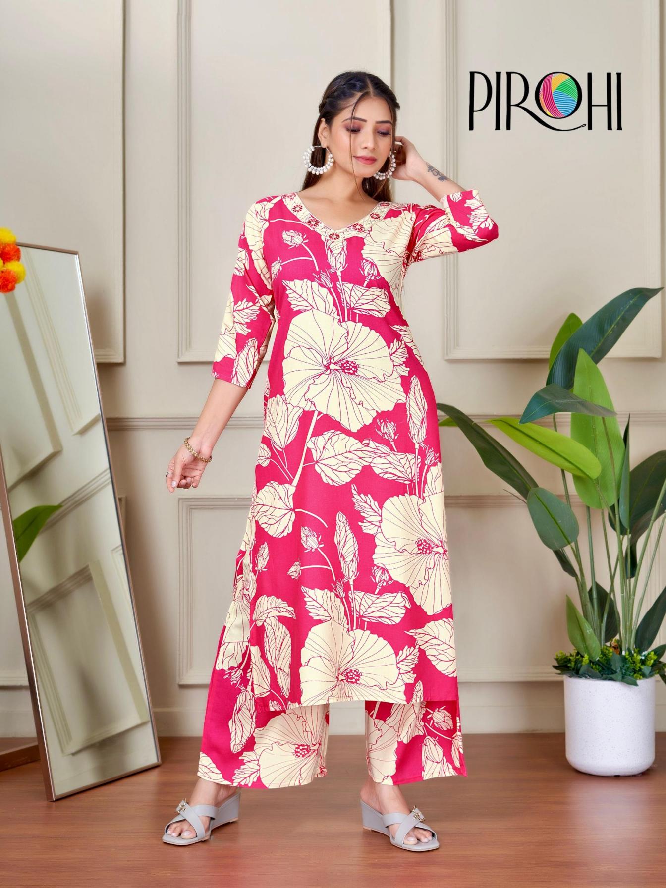 pirohi presents kanchi a line rayon readymade daily wear kurti with pant