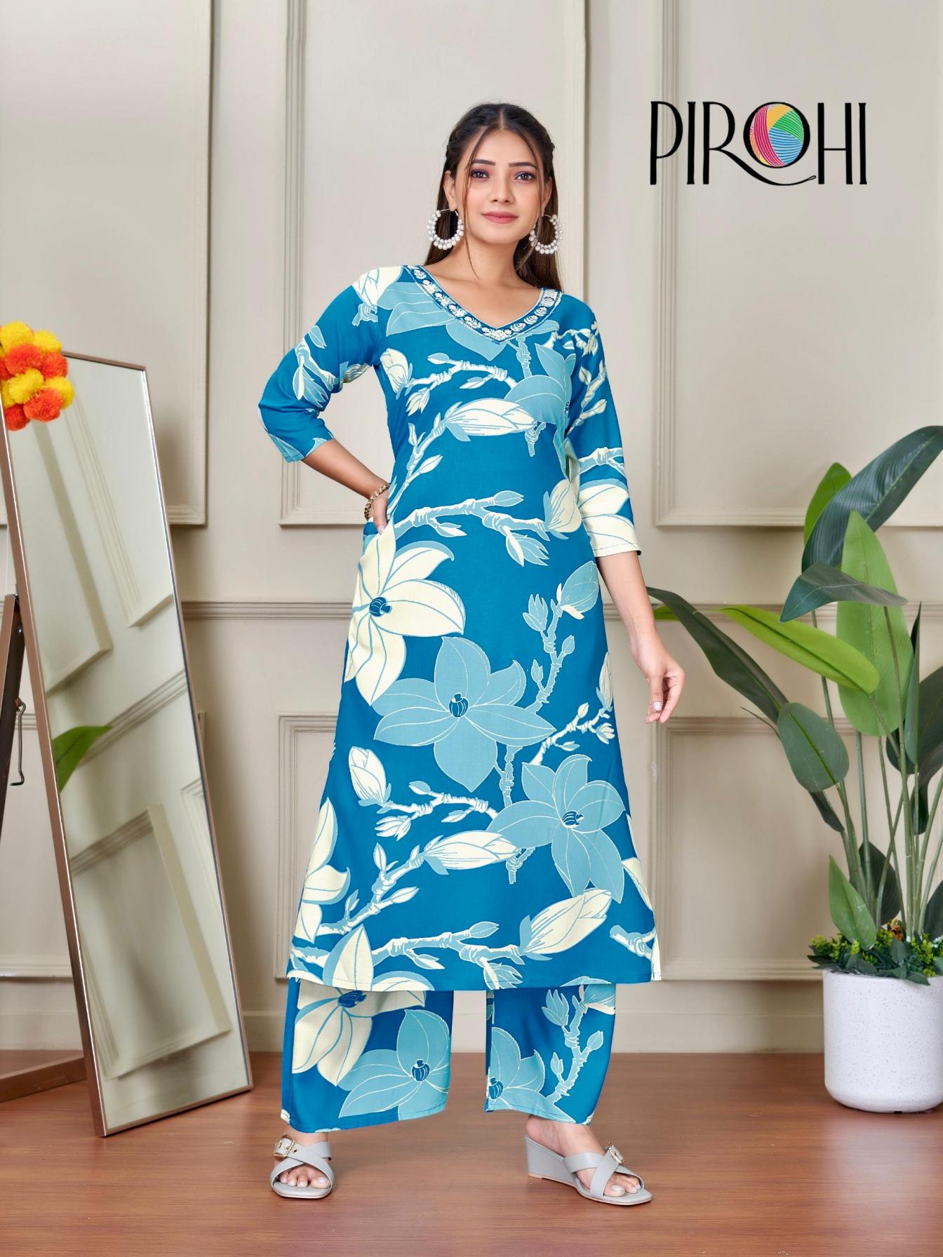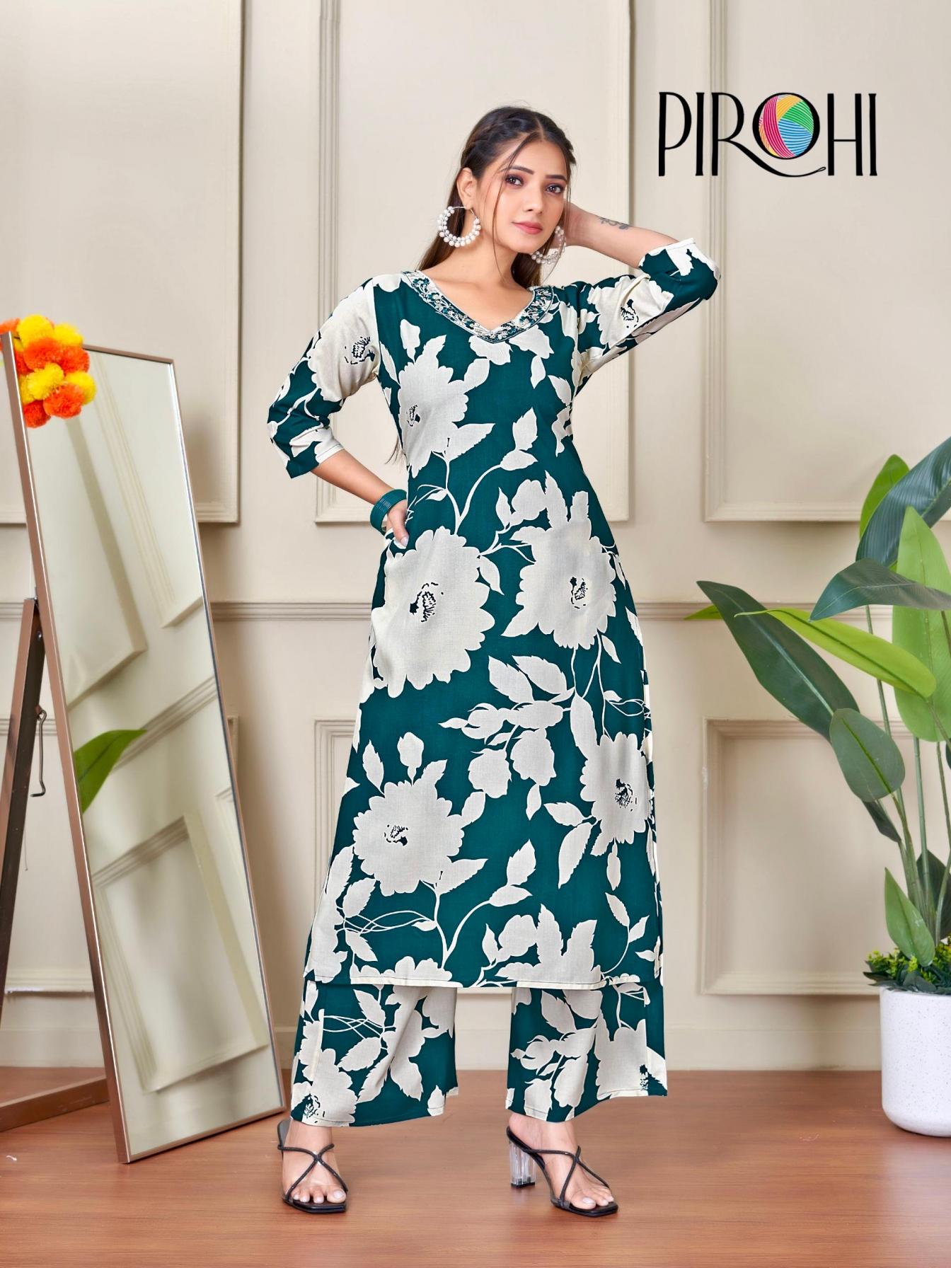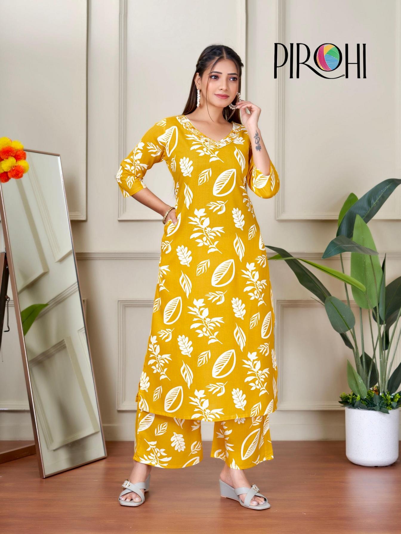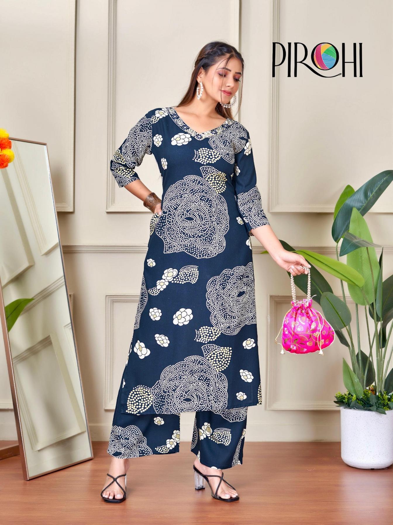 pirohi presents kanchi a line rayon readymade daily wear kurti with pant