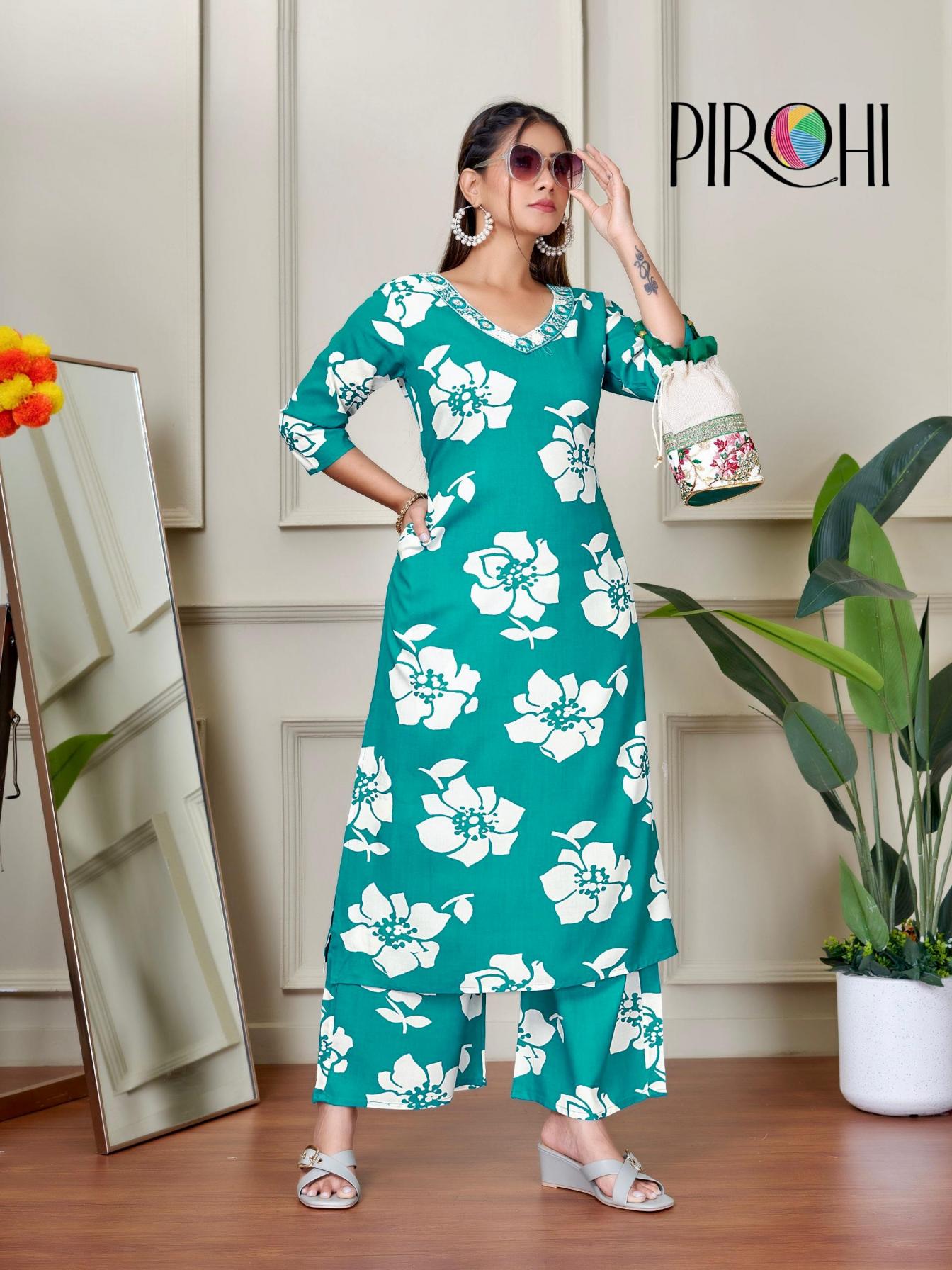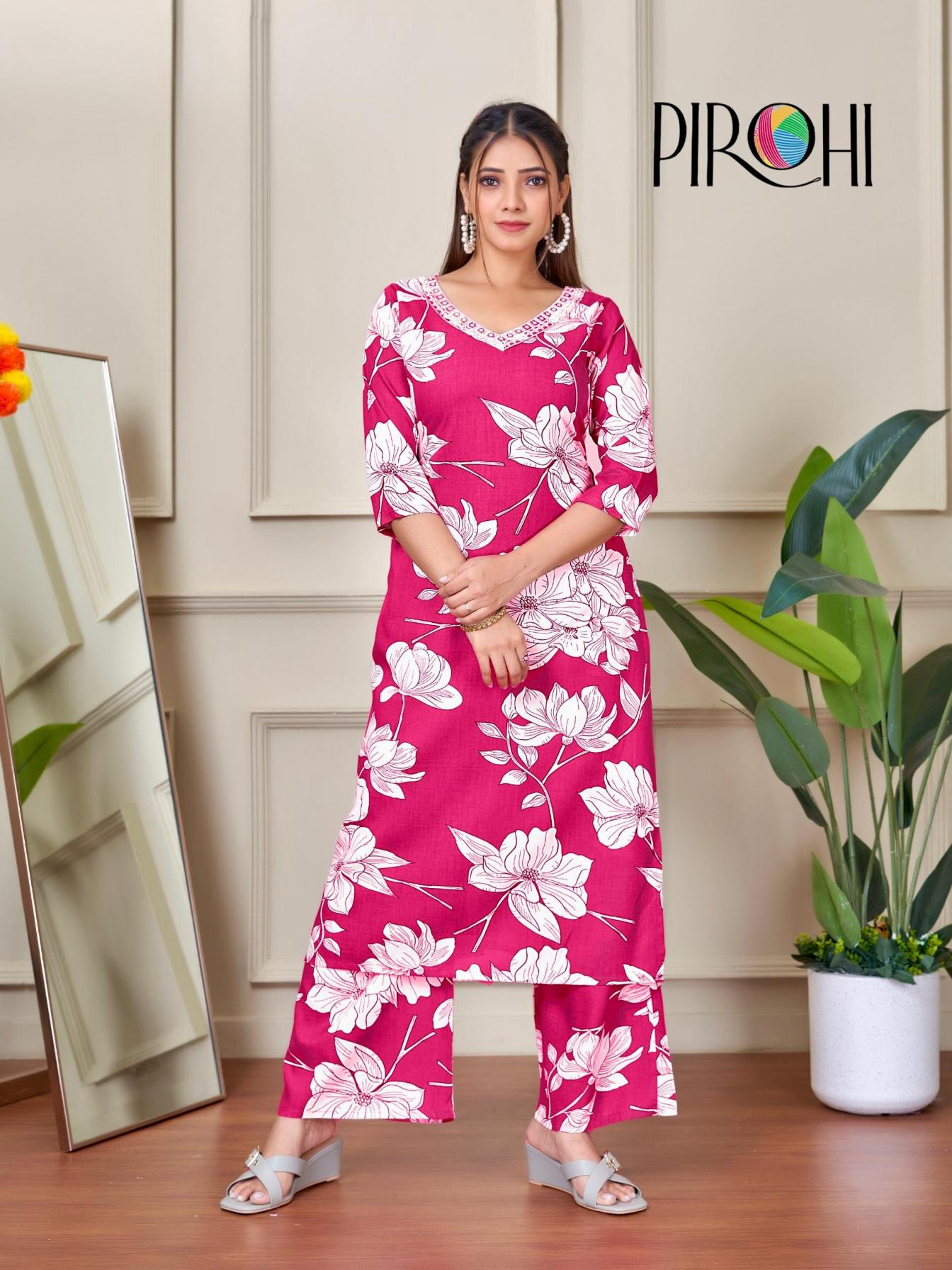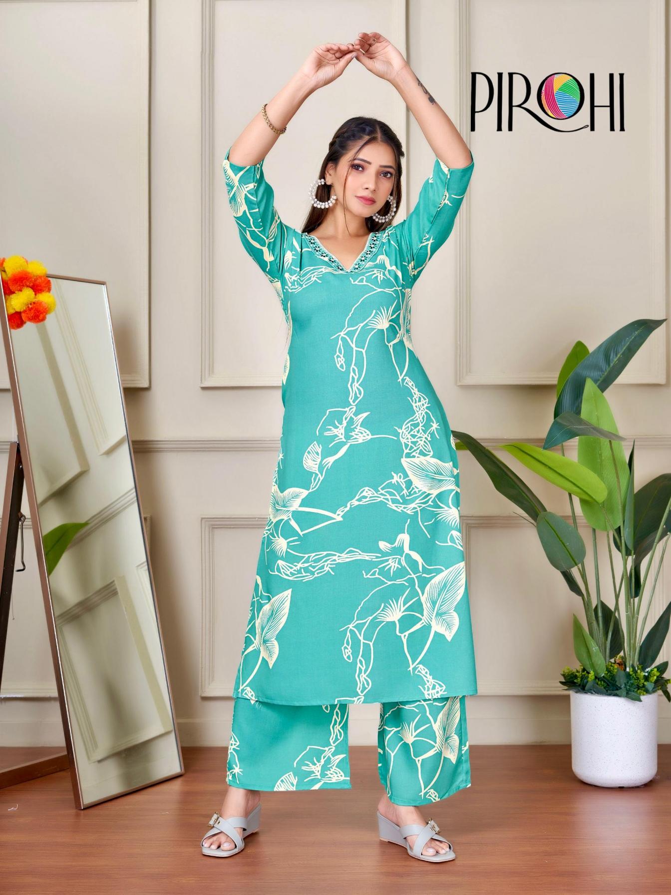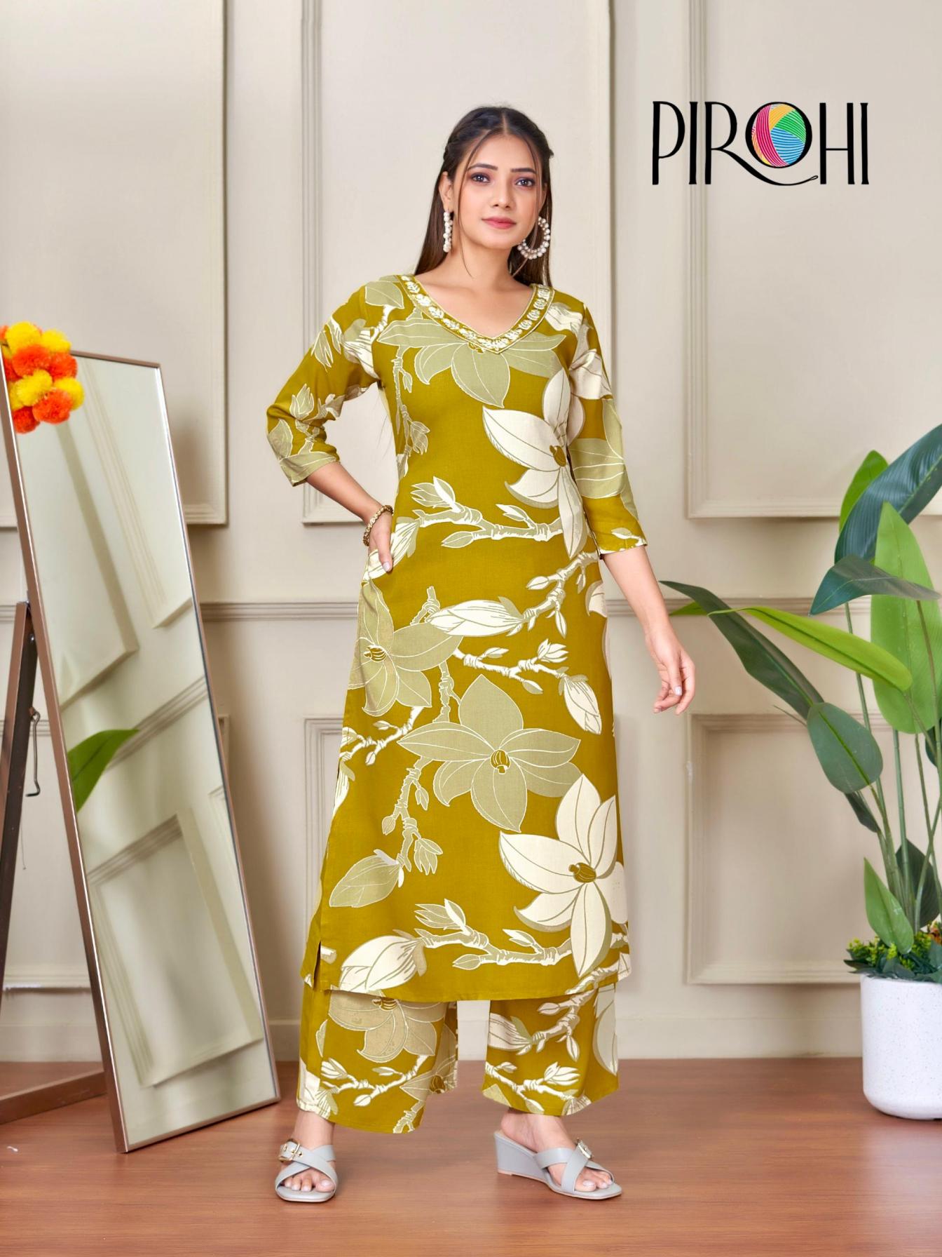 pirohi presents kanchi a line rayon readymade daily wear kurti with pant