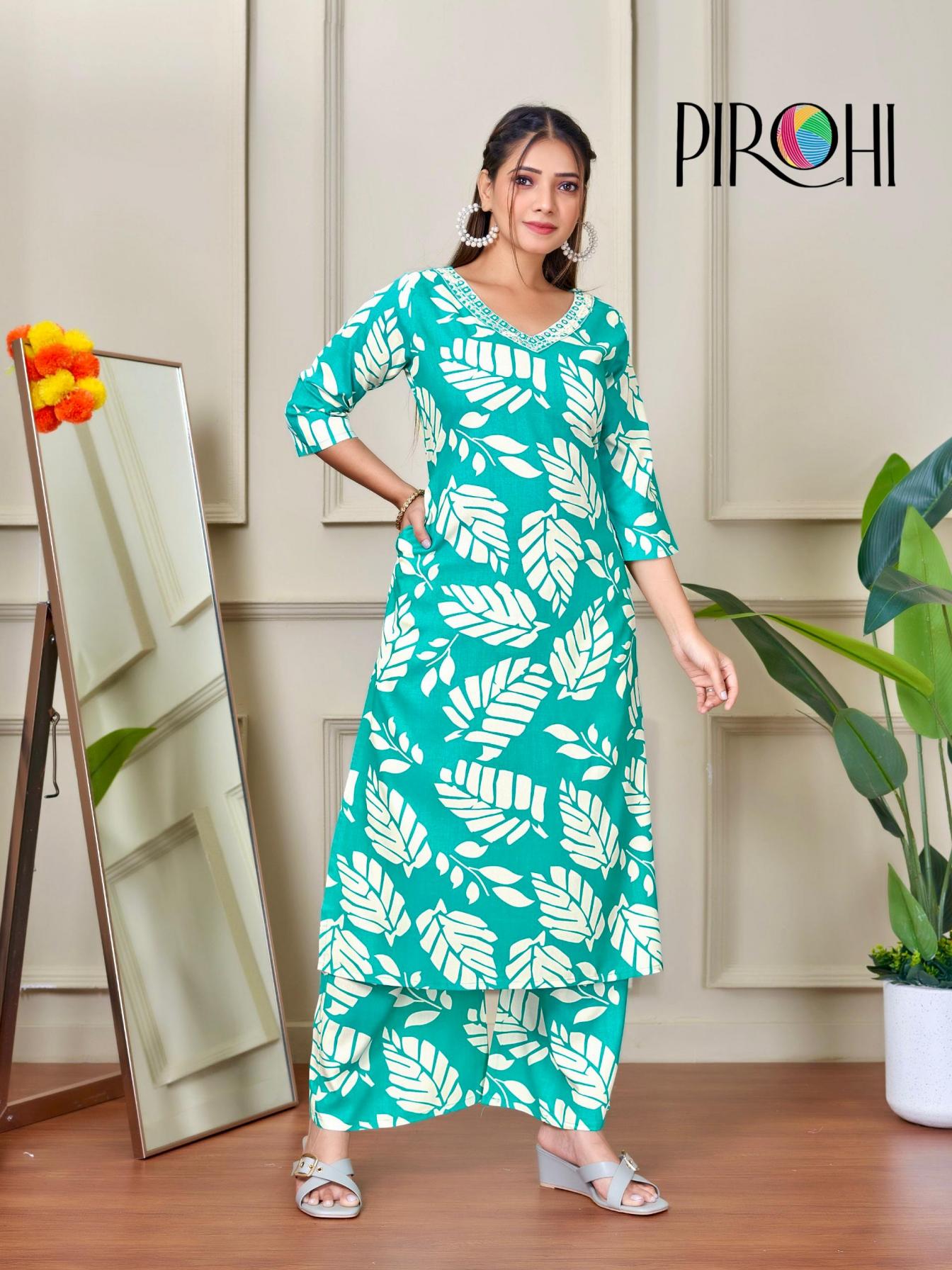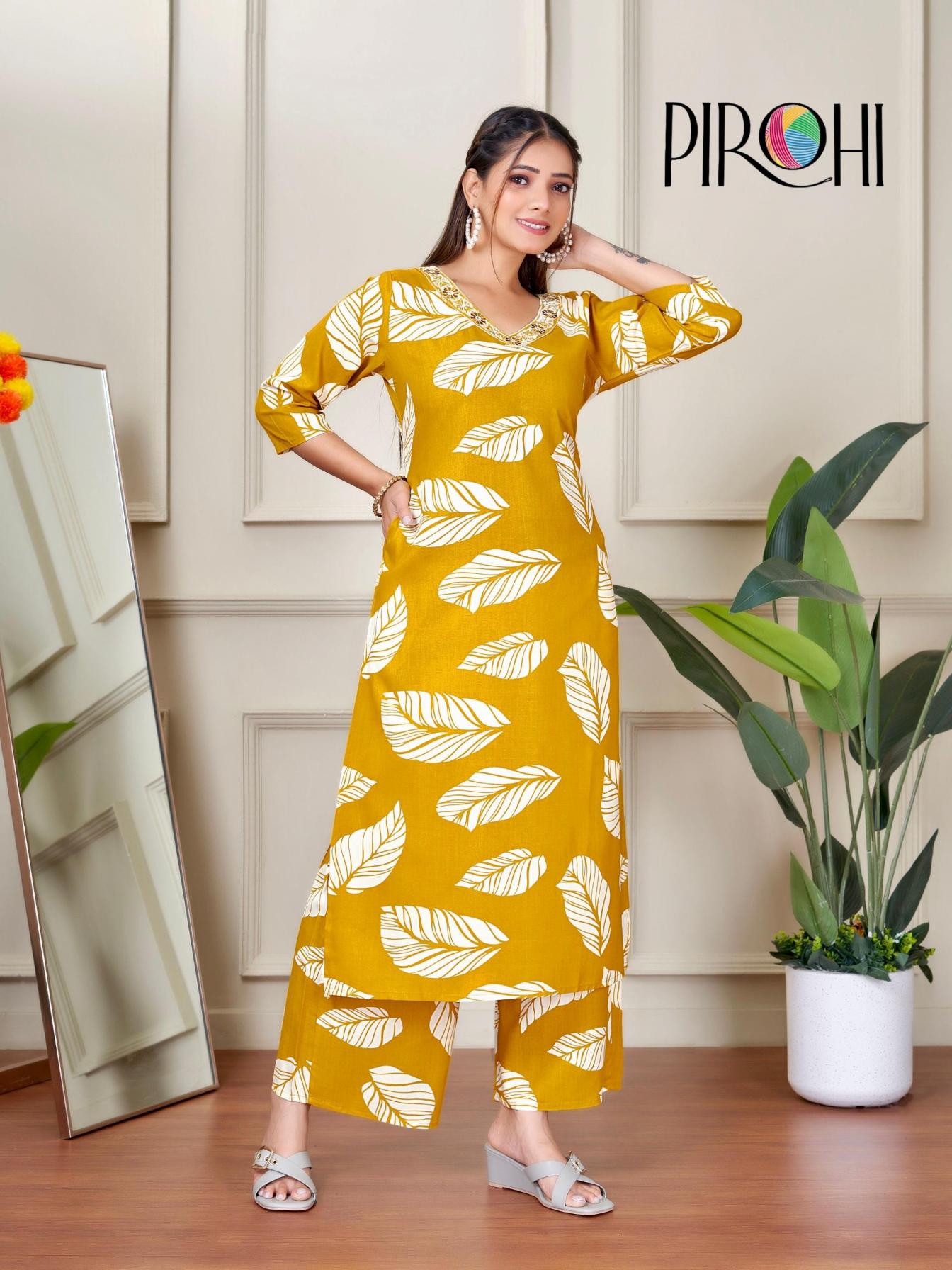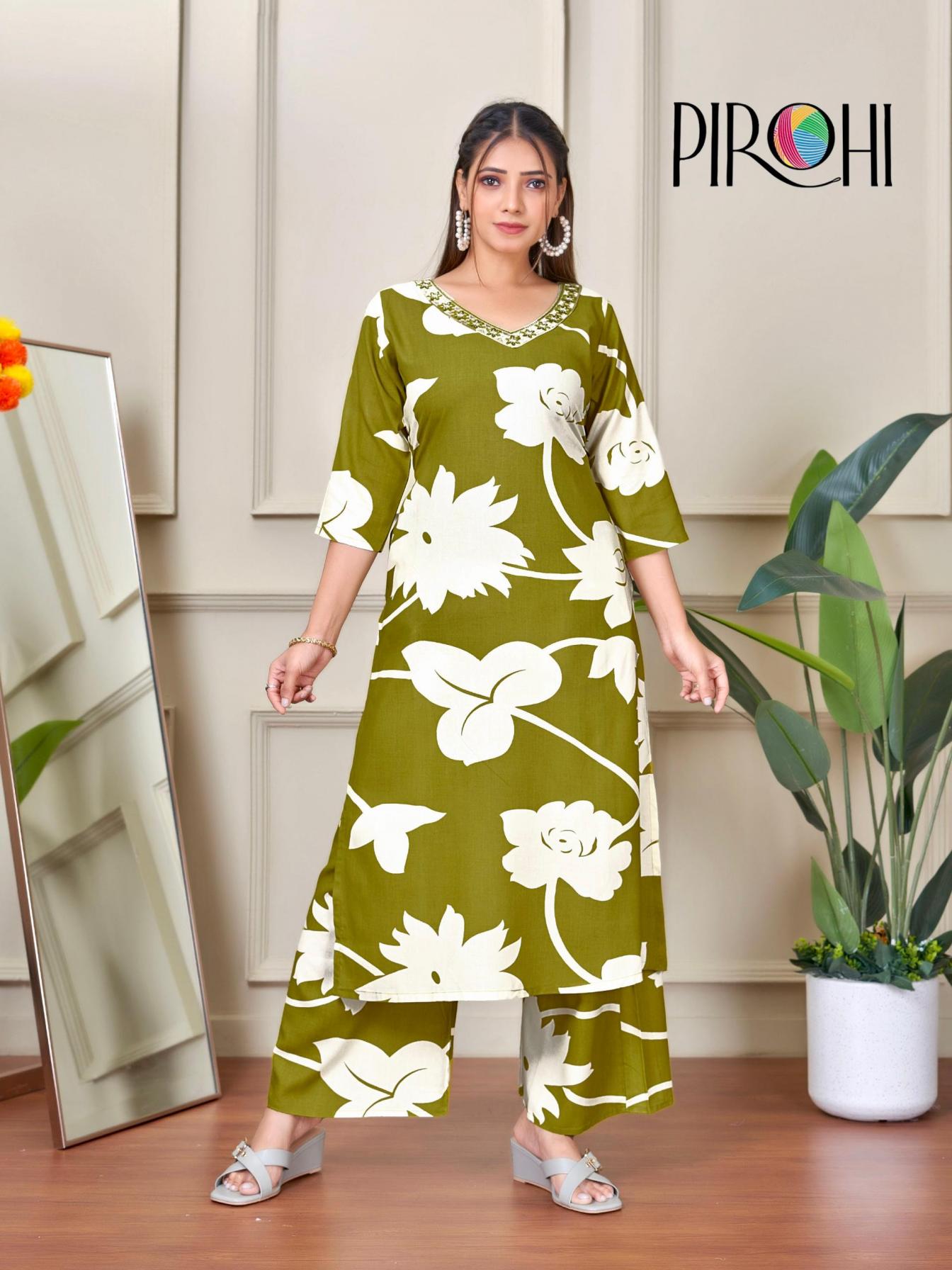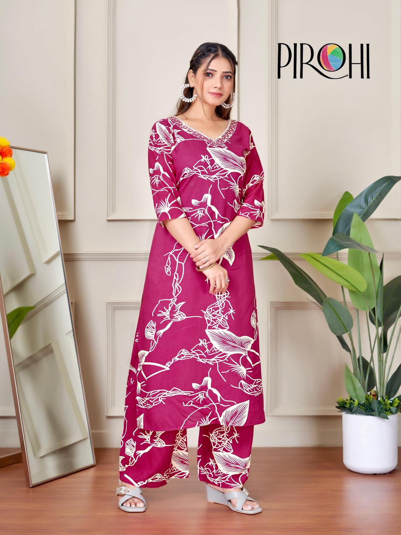 pirohi presents kanchi a line rayon readymade daily wear kurti with pant