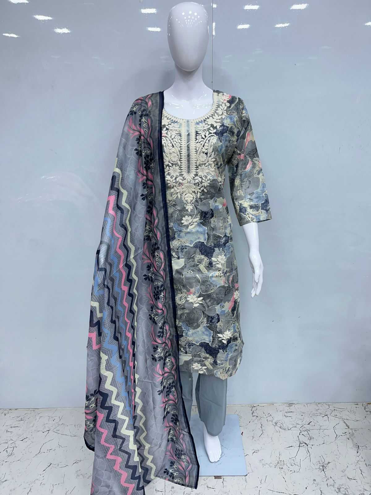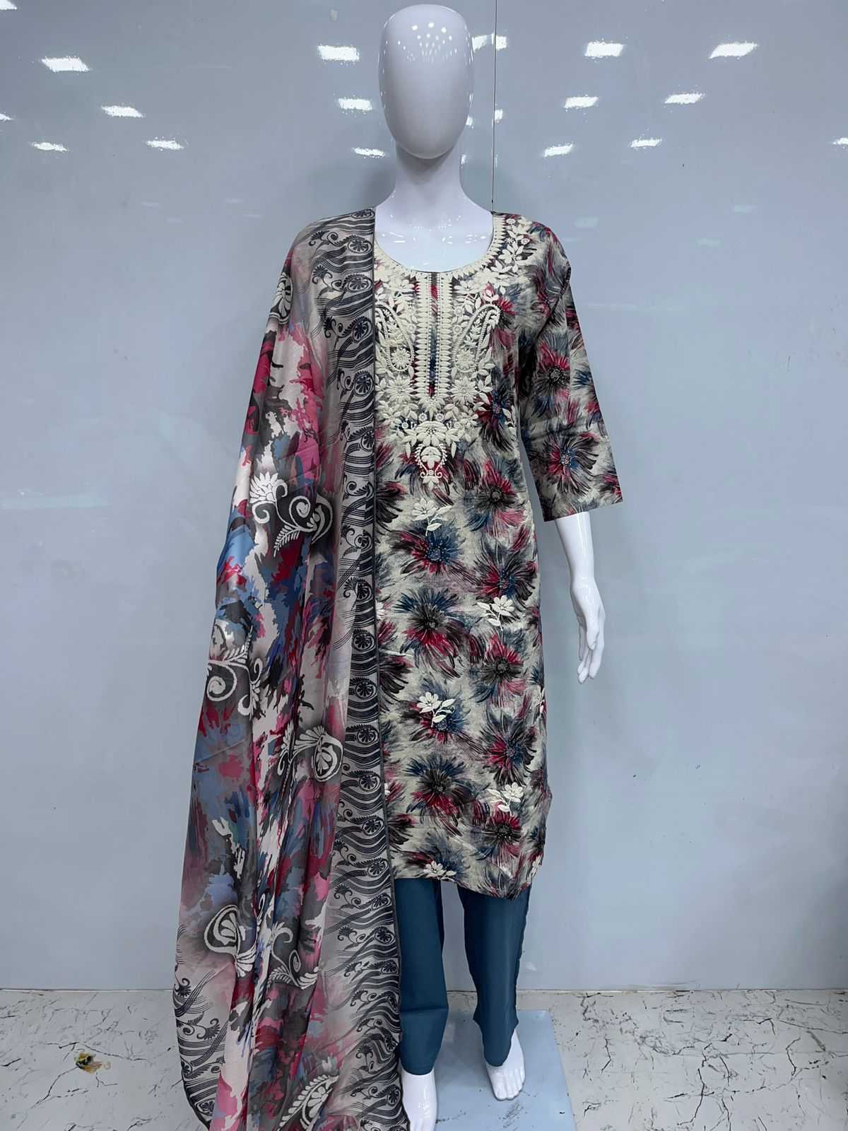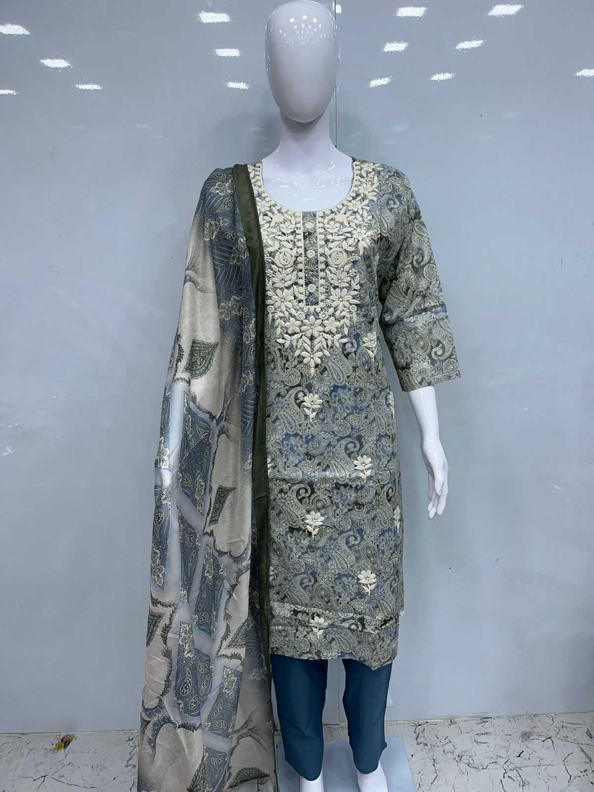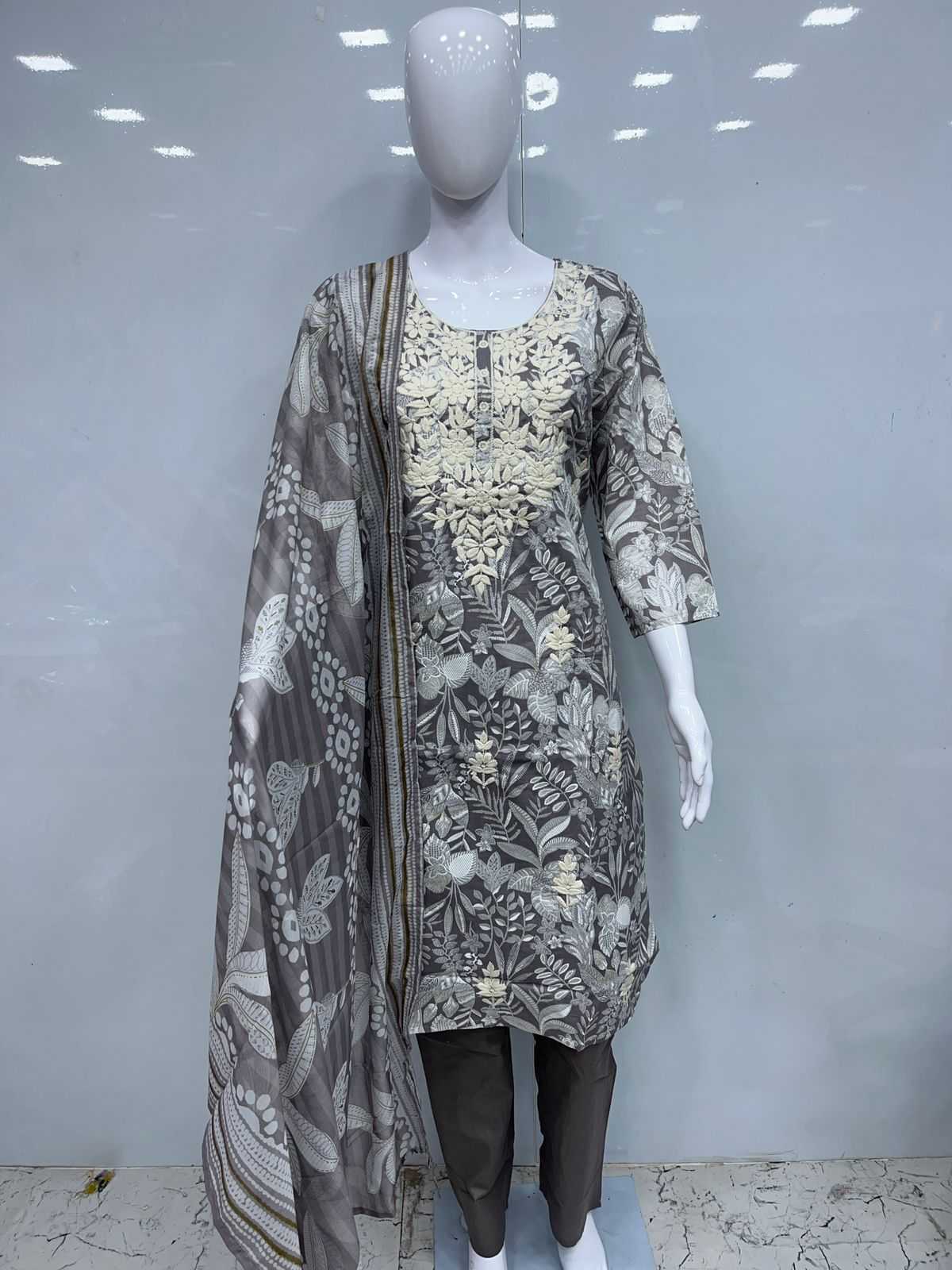 Cotton 3pcs with lakhnavi embroidery Size:- XL/XXL PIROI RATE 995/- |