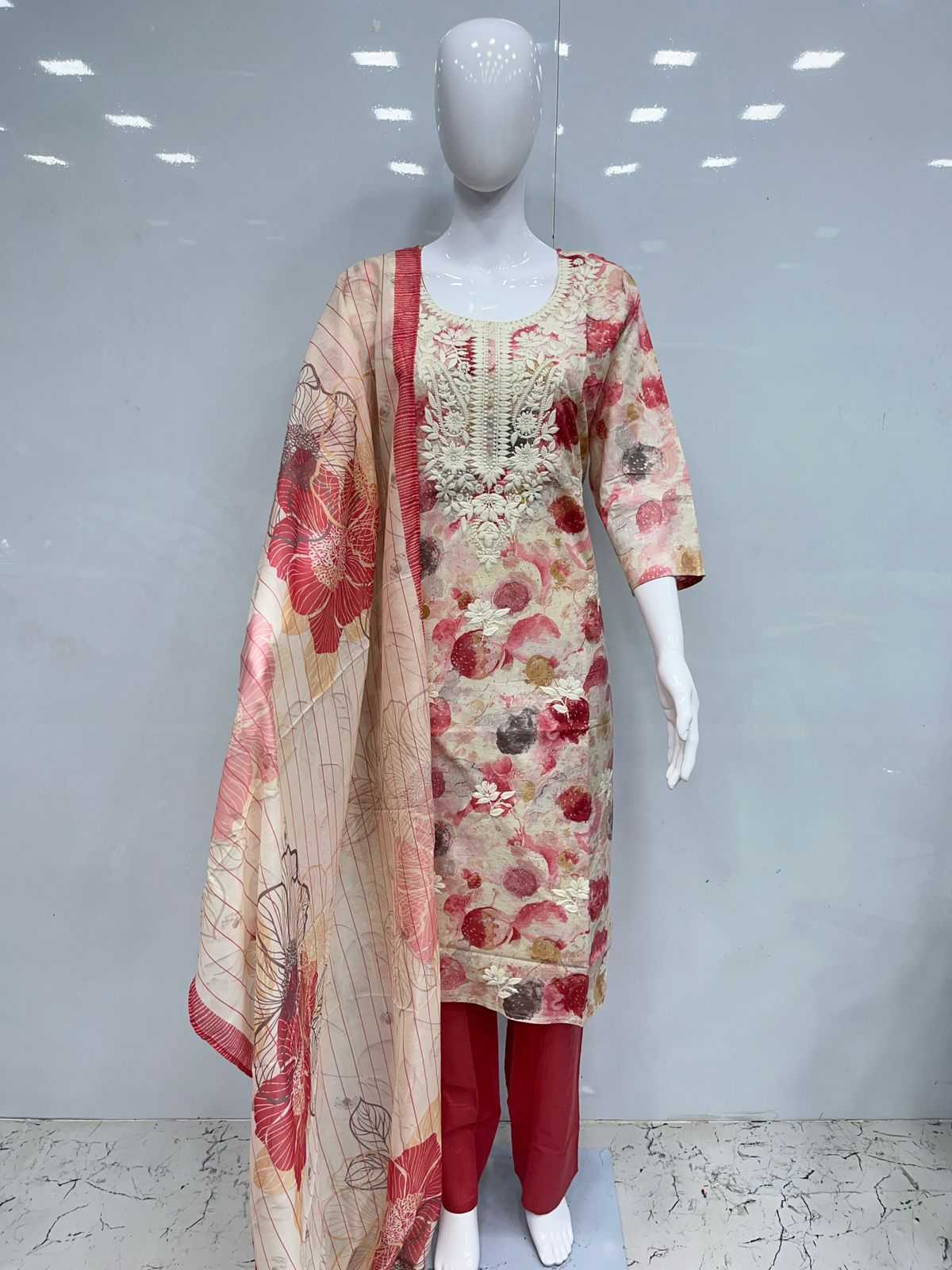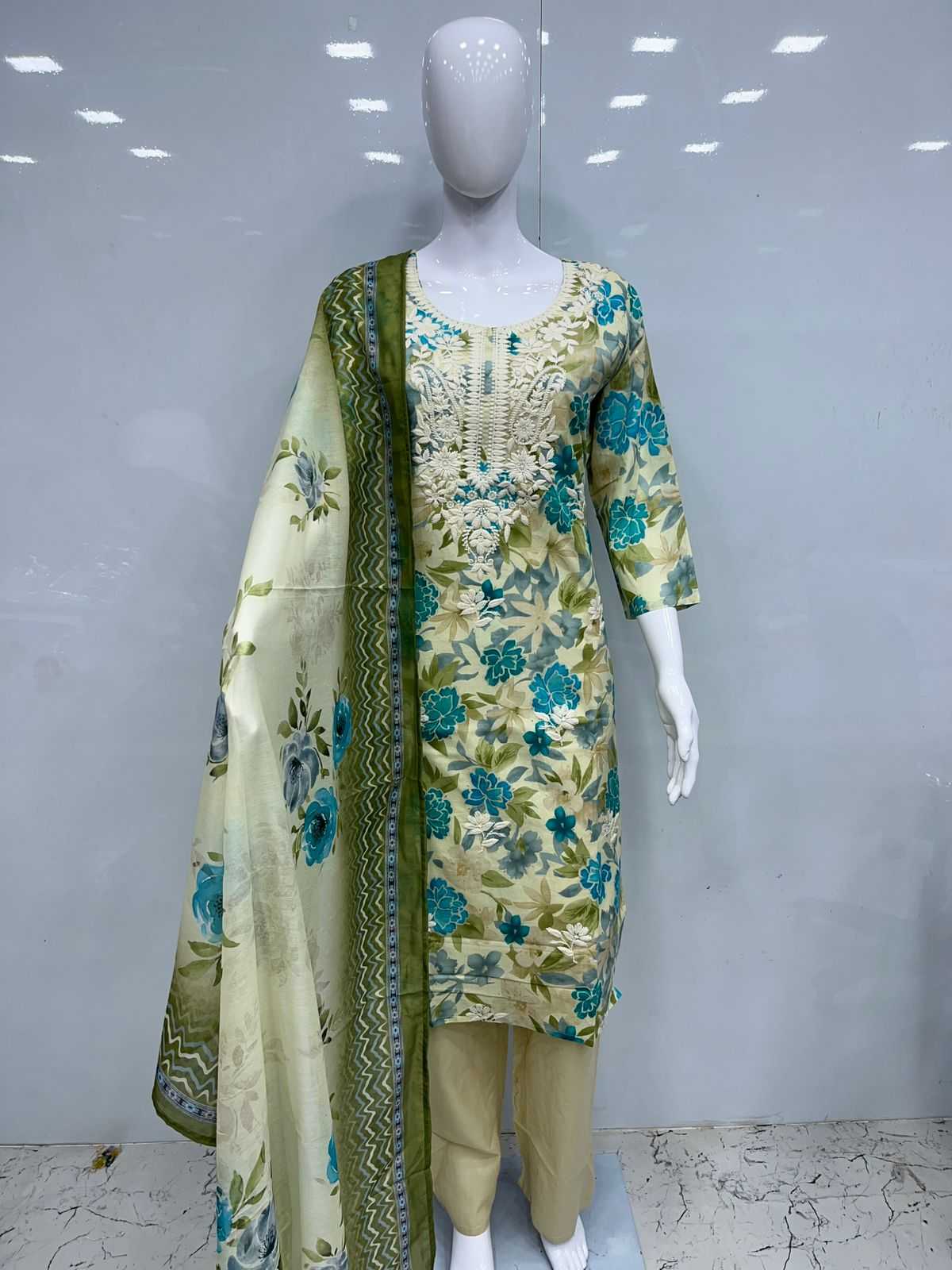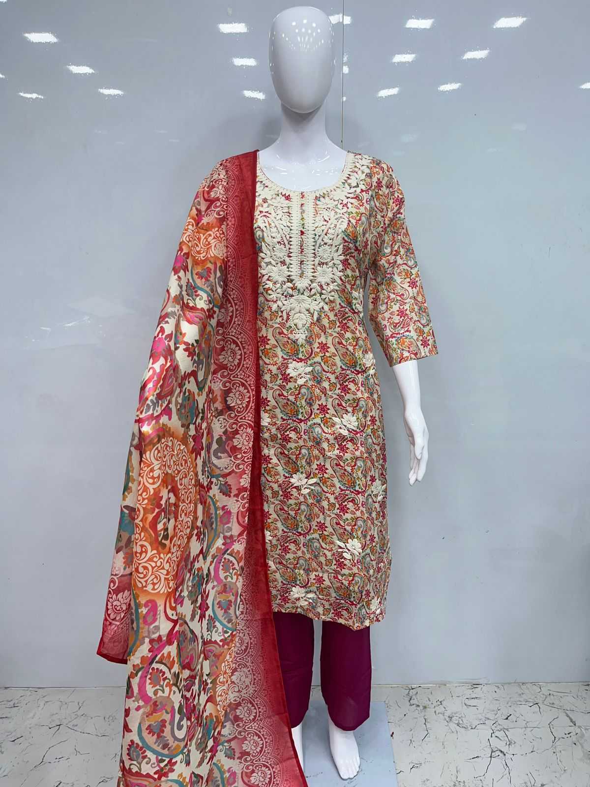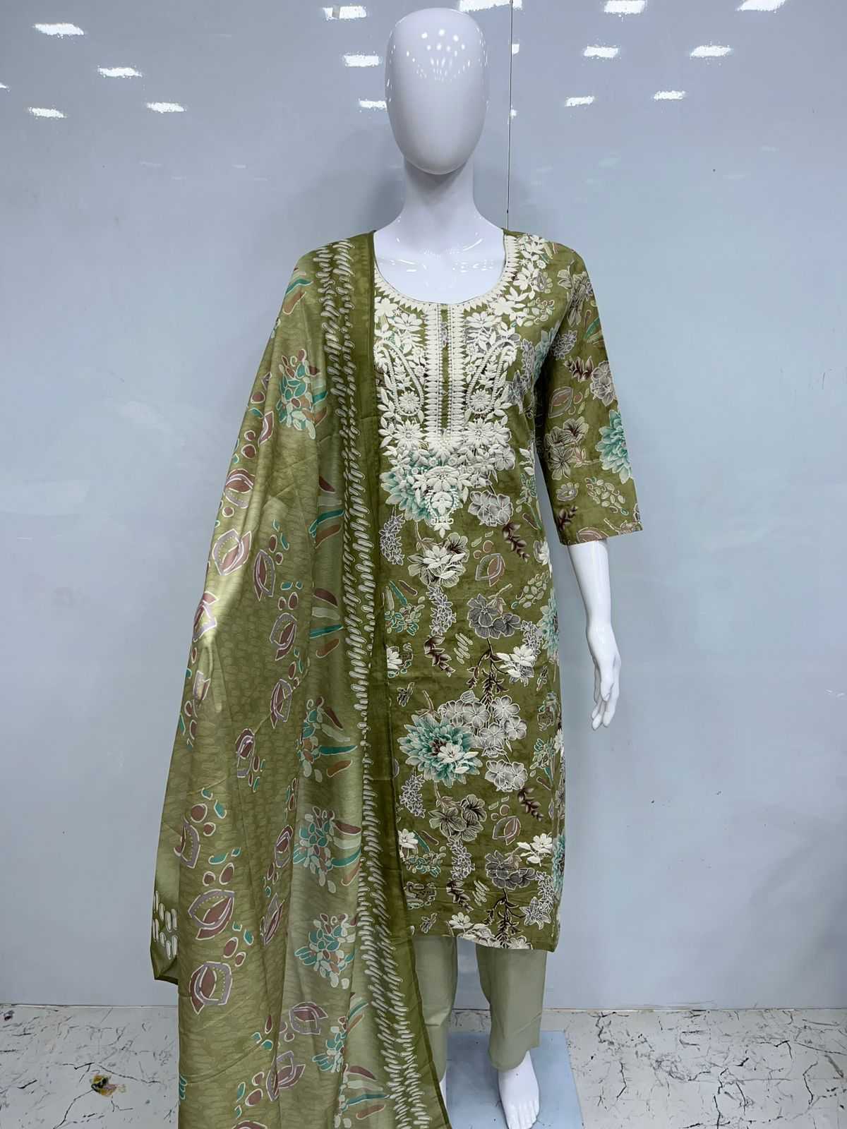 Cotton 3pcs with lakhnavi embroidery Size:- XL/XXL PIROI RATE 995/- |