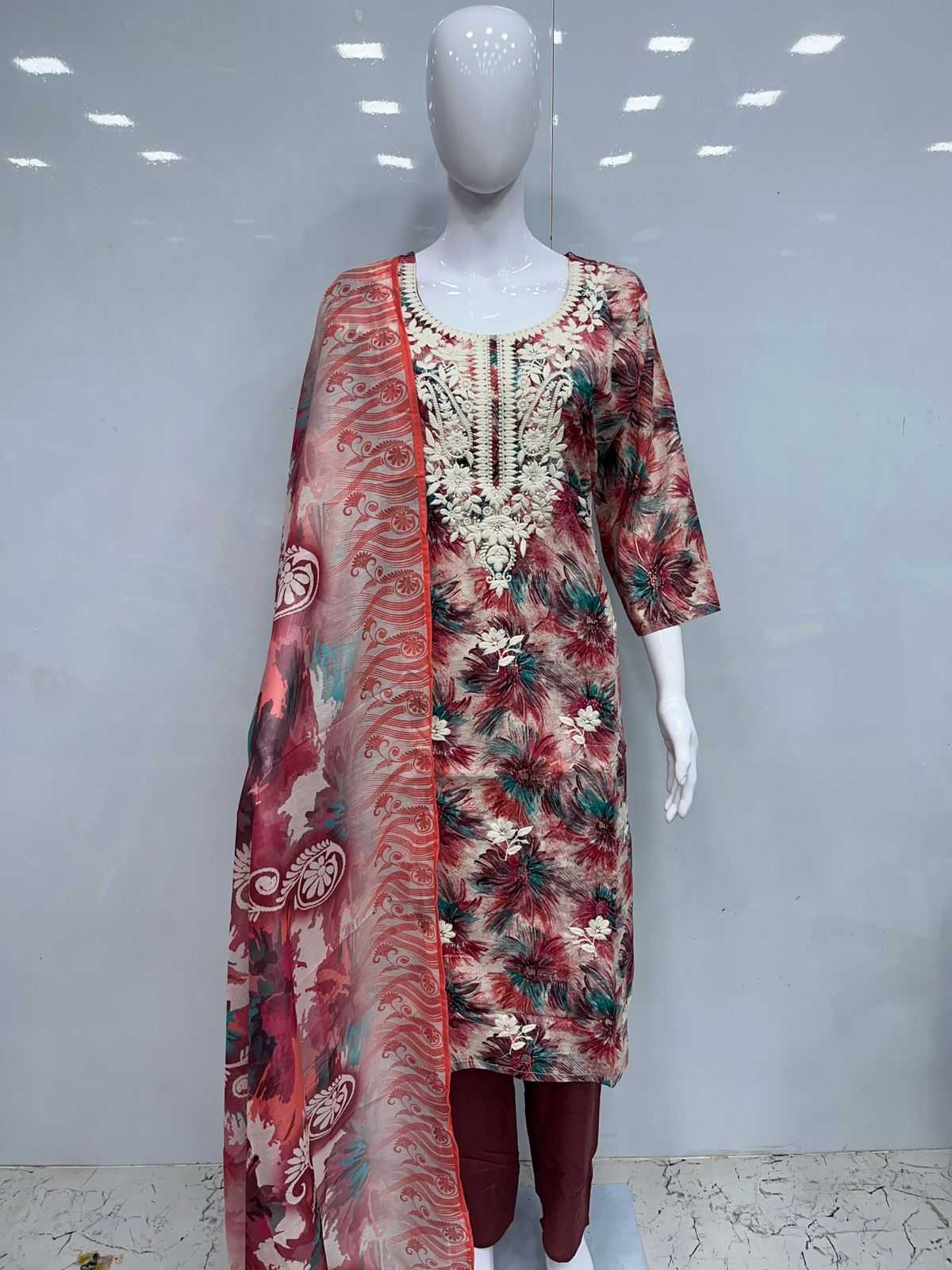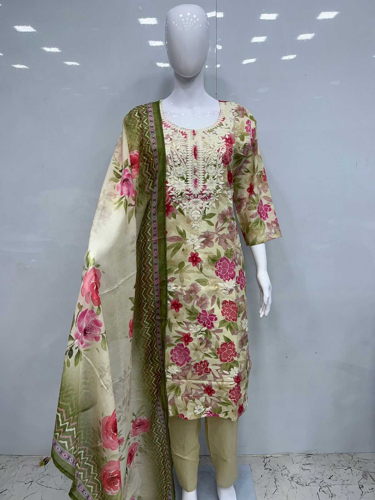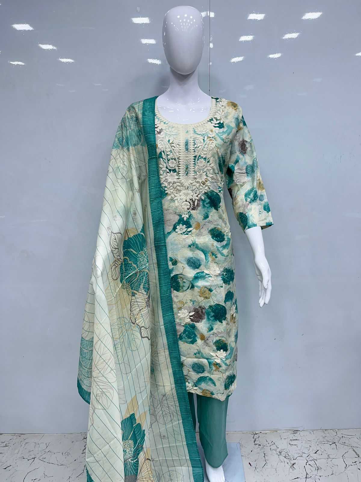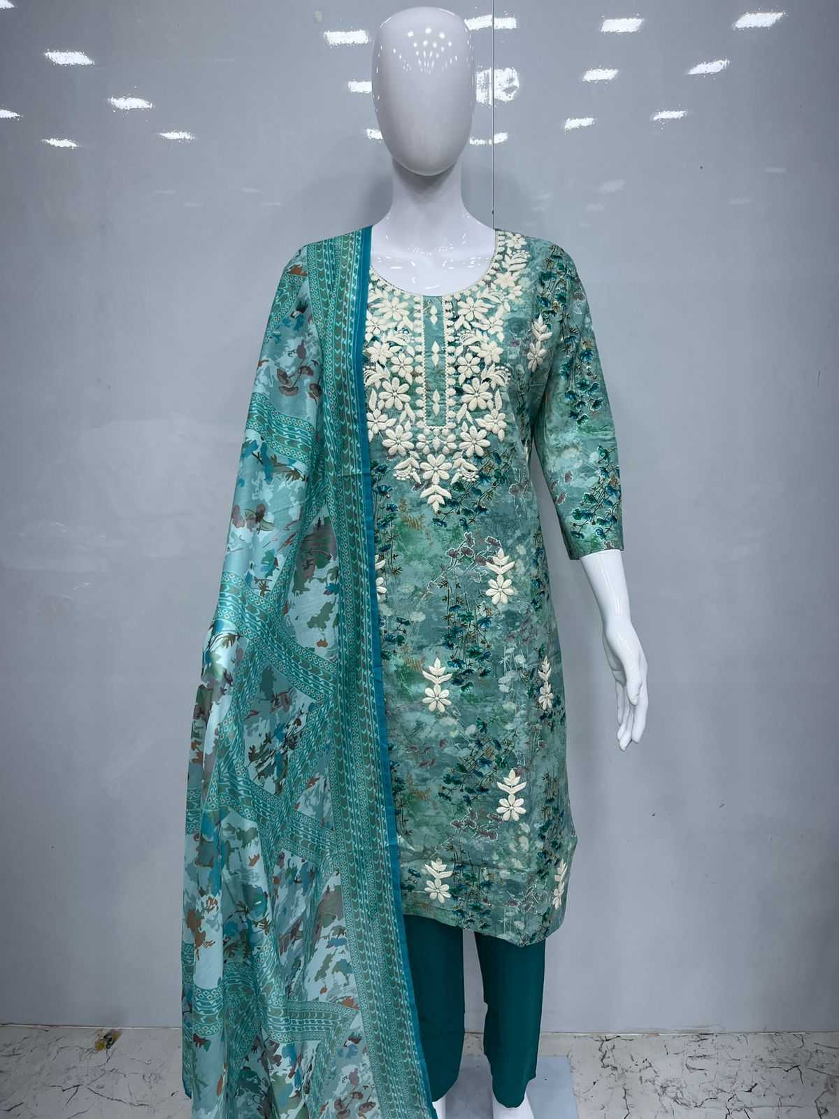 Cotton 3pcs with lakhnavi embroidery Size:- XL/XXL PIROI RATE 995/- |
