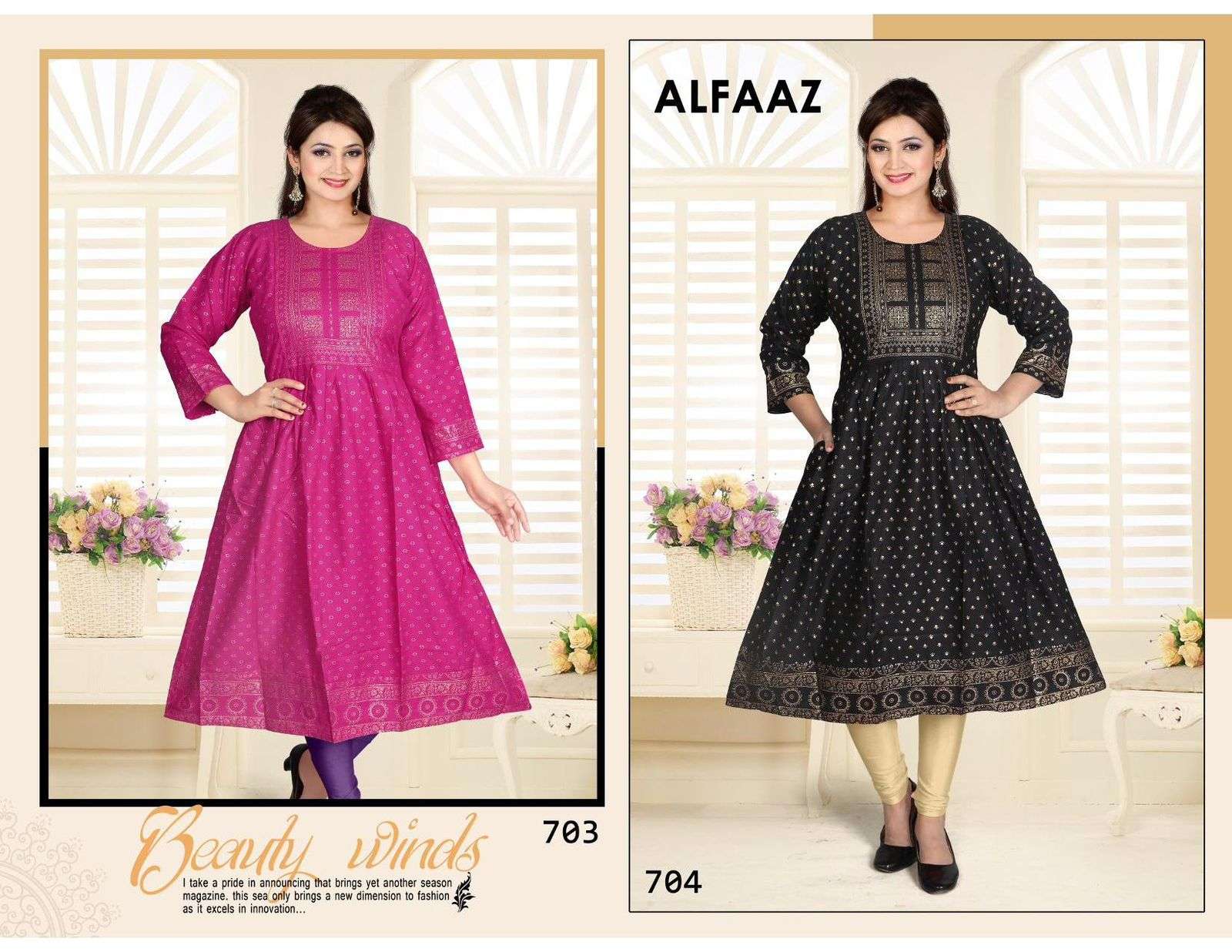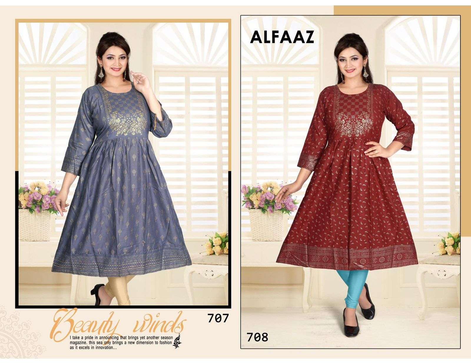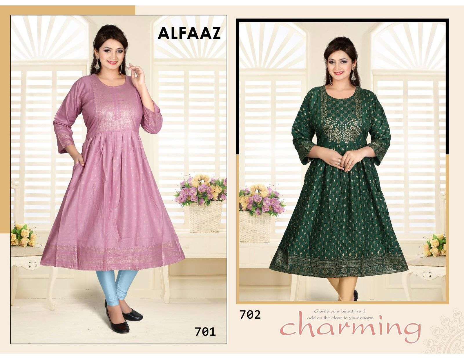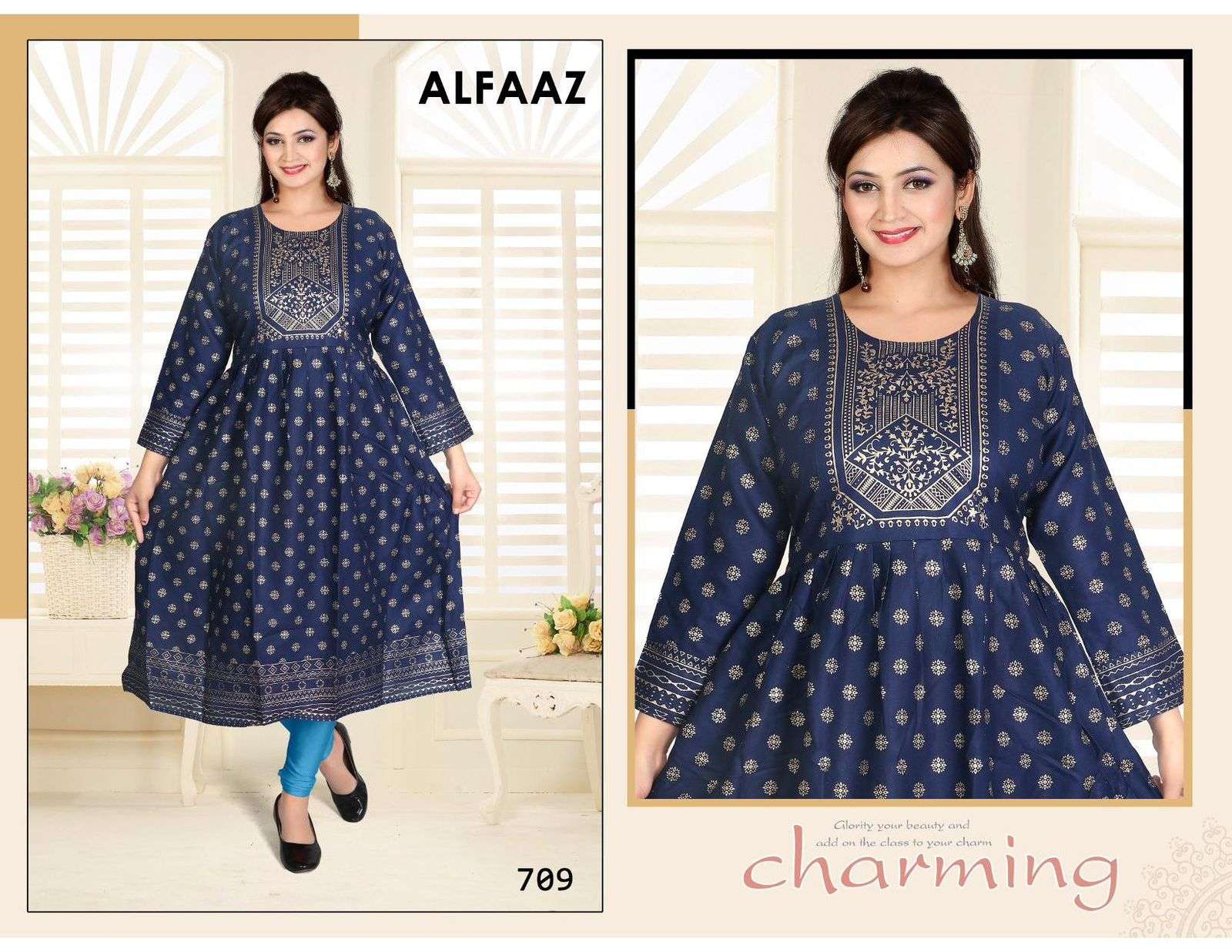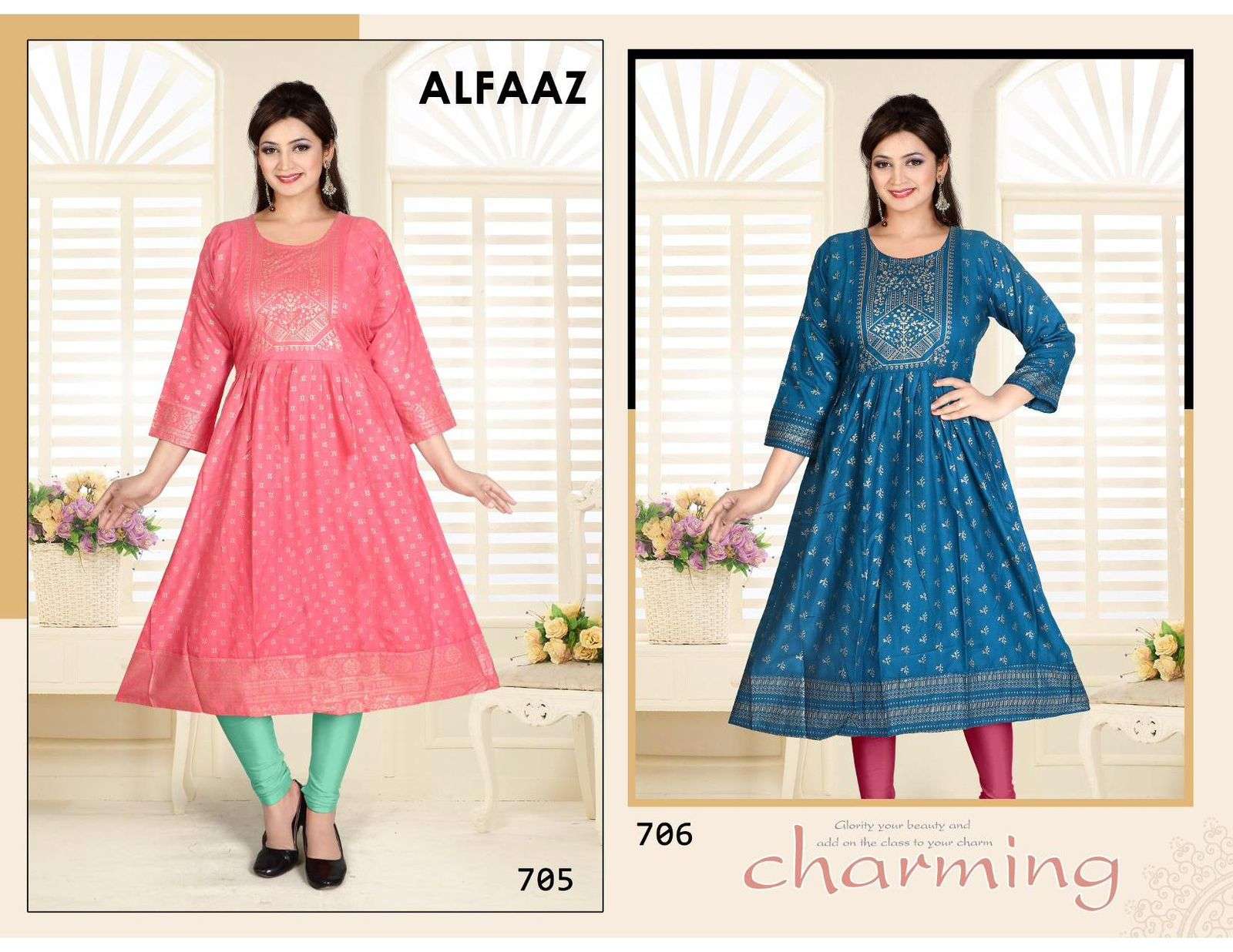 PLATINUM ALFAAZ V.7 RAYON KURTI CATALOG WHOLESALER BEST RATE