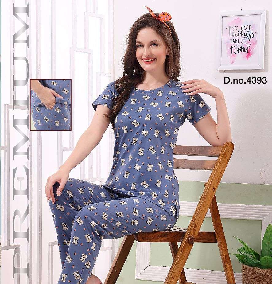 PLATINUM C.NS VOL.4394 Heavy Shinker Hosiery Cotton Collar Night Suits Printed With Pocket CATALOG WHOLESALER BEST RATE