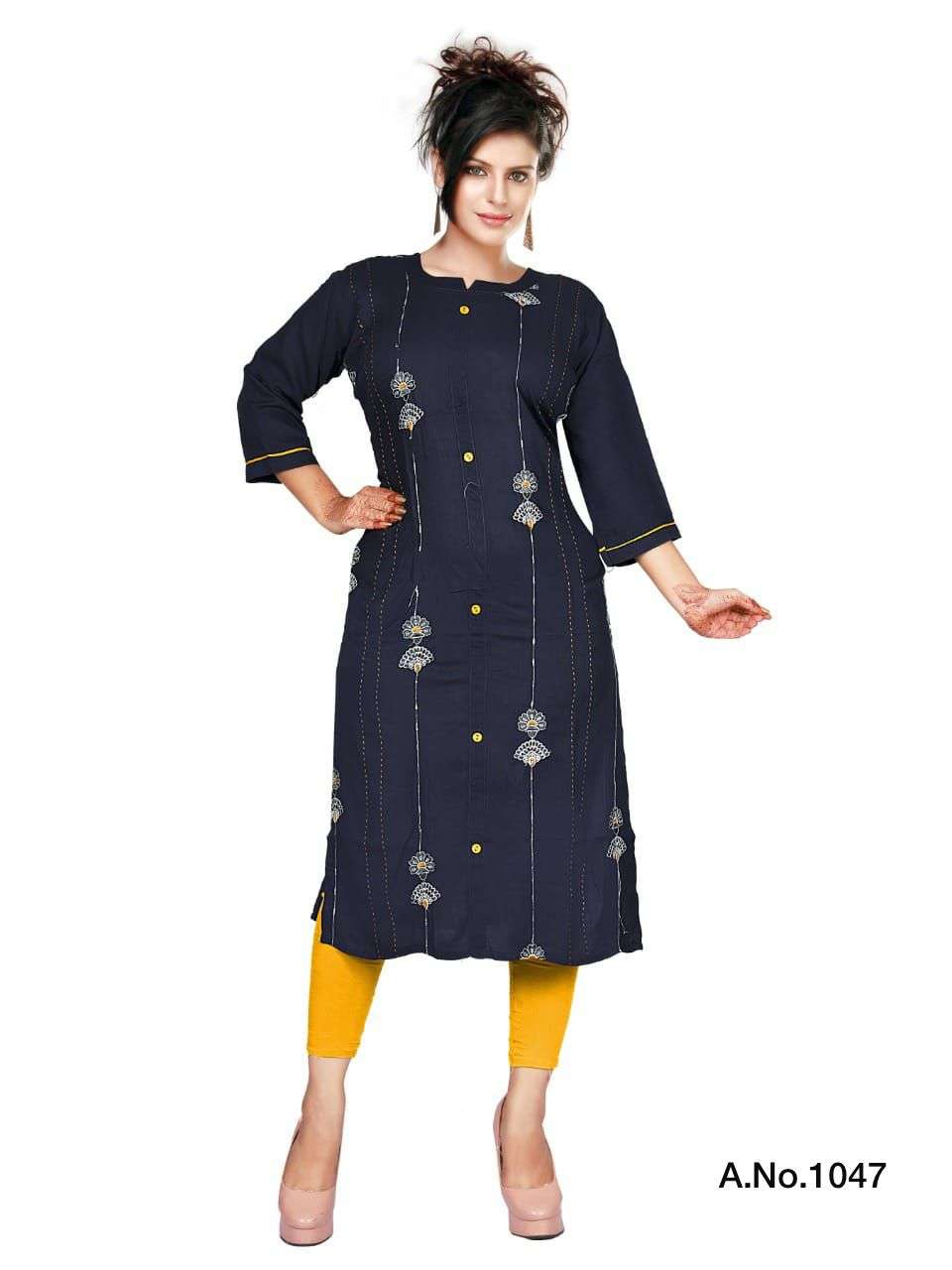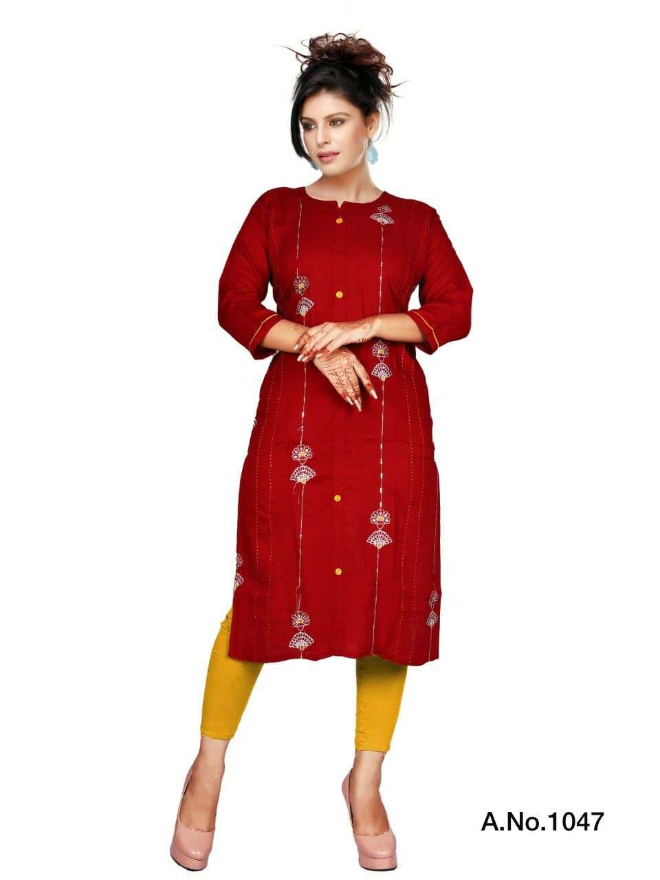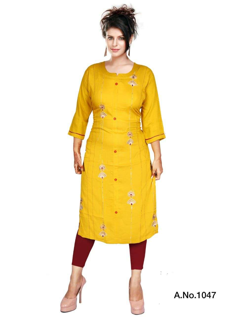 PLATINUM D.No-1047 HEAVY RAYON PREMIUM KURTI FOUR MATCHING COLOUR SET WHOLESALER BEST RATE