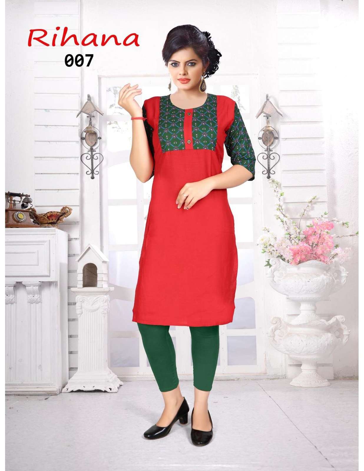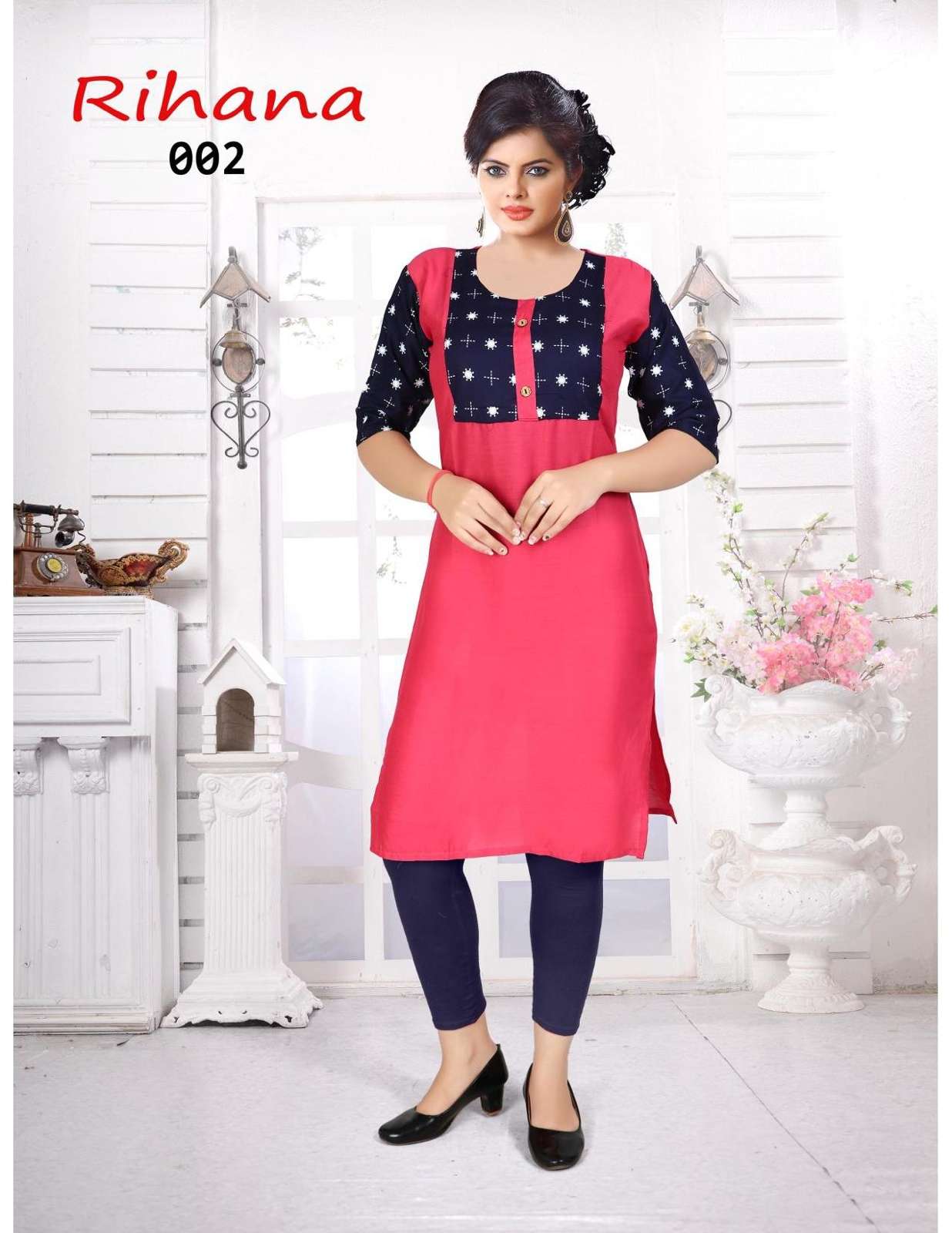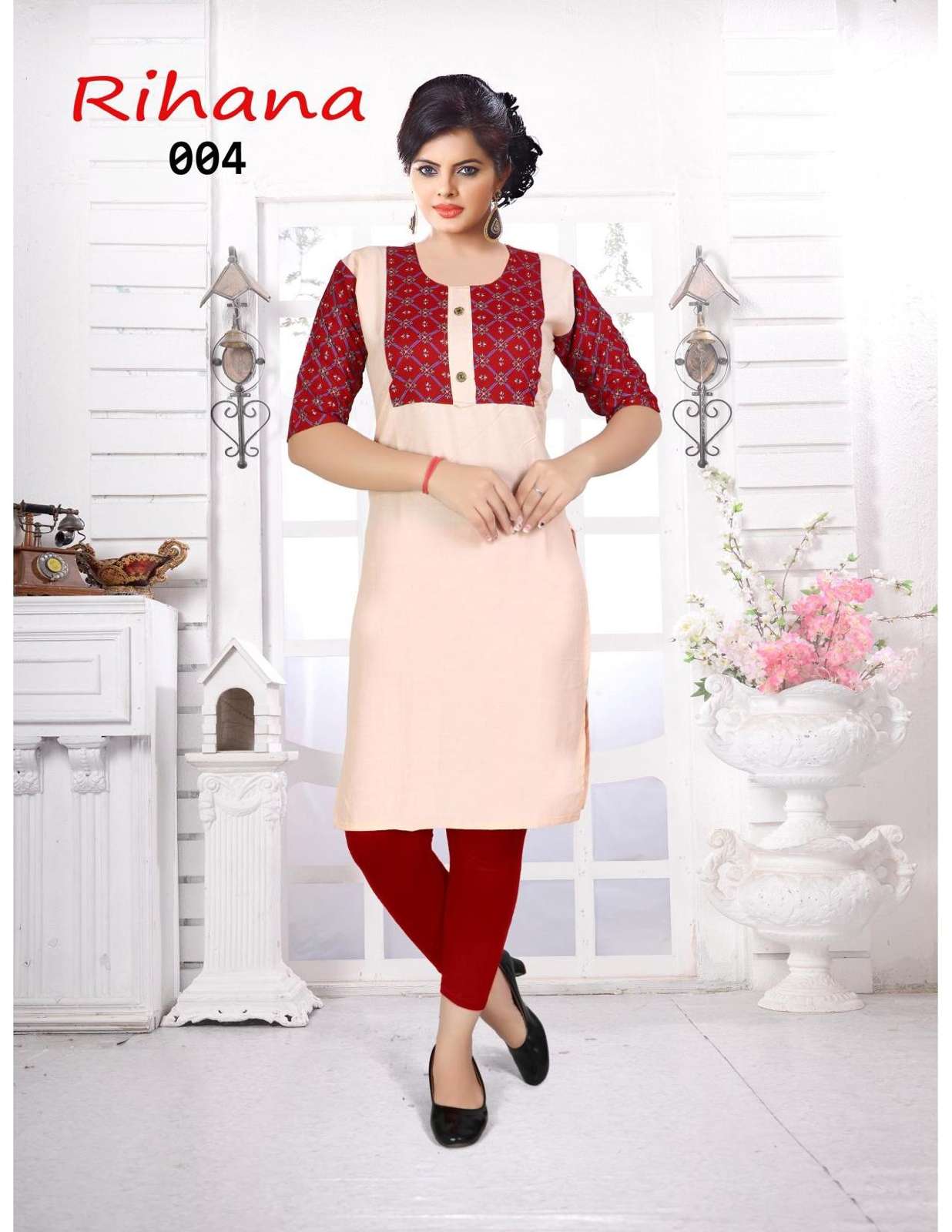 PLATINUM RIHAAA REYON PLAIN + REYON PRINT KURTI CATALIG WHOLESALER BEST RATE