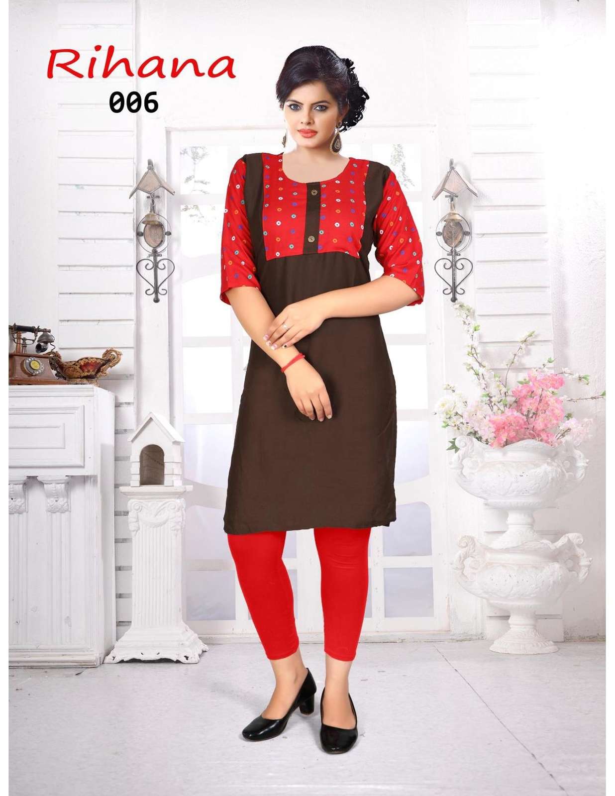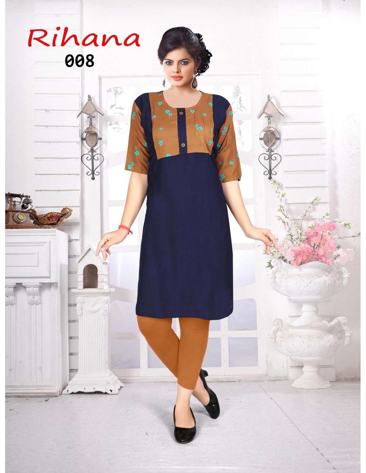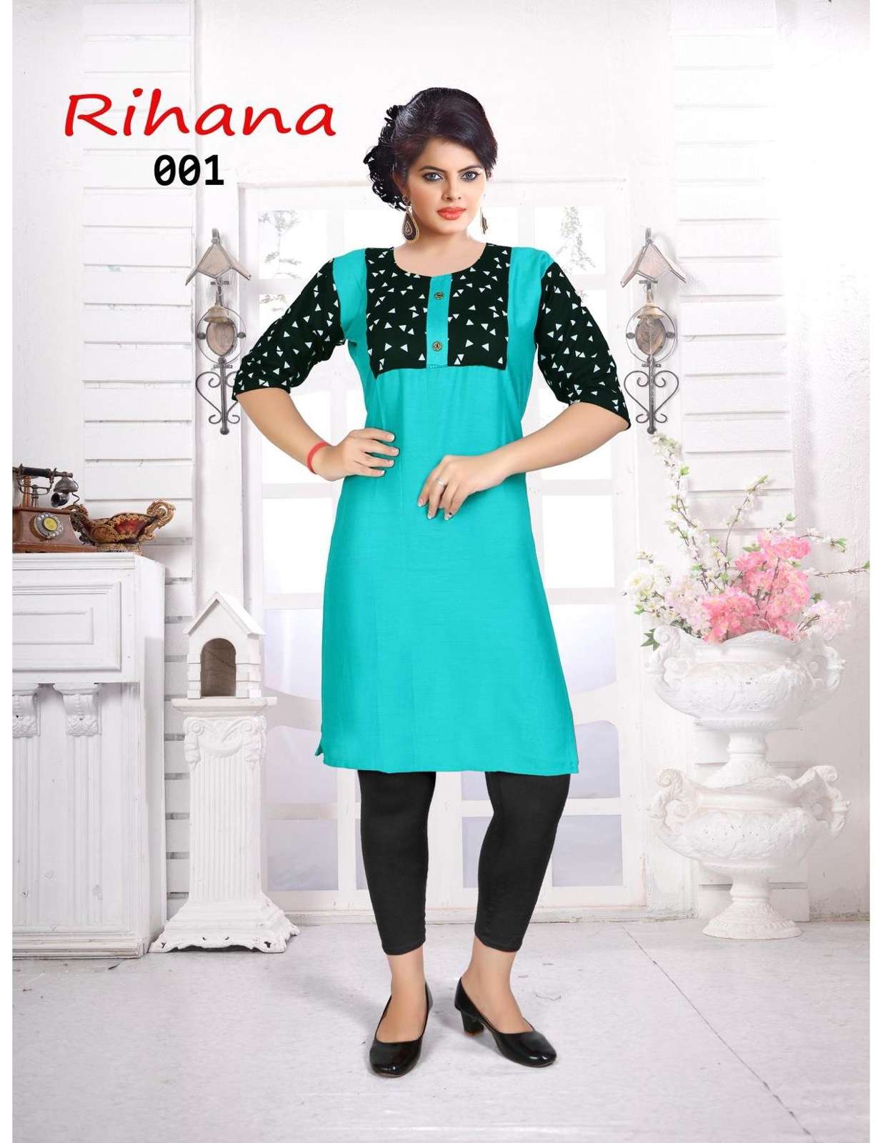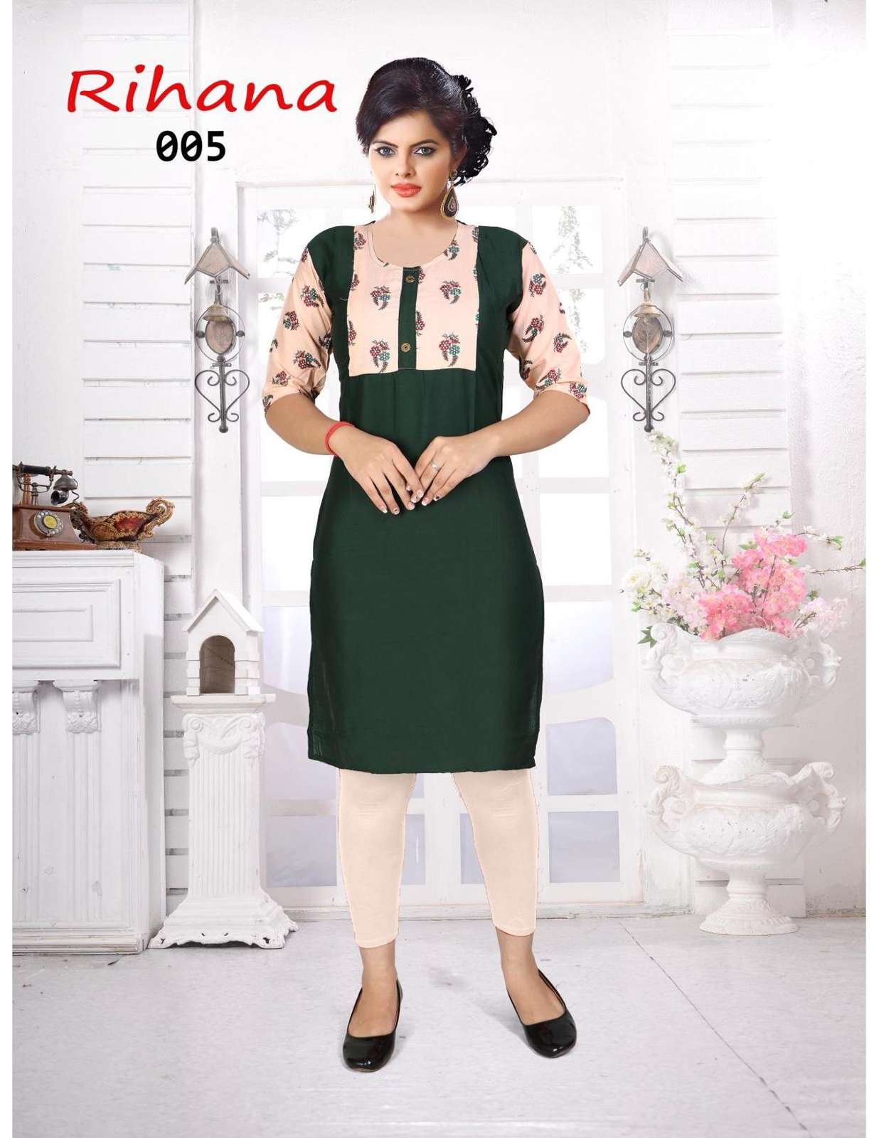 PLATINUM RIHAAA REYON PLAIN + REYON PRINT KURTI CATALIG WHOLESALER BEST RATE