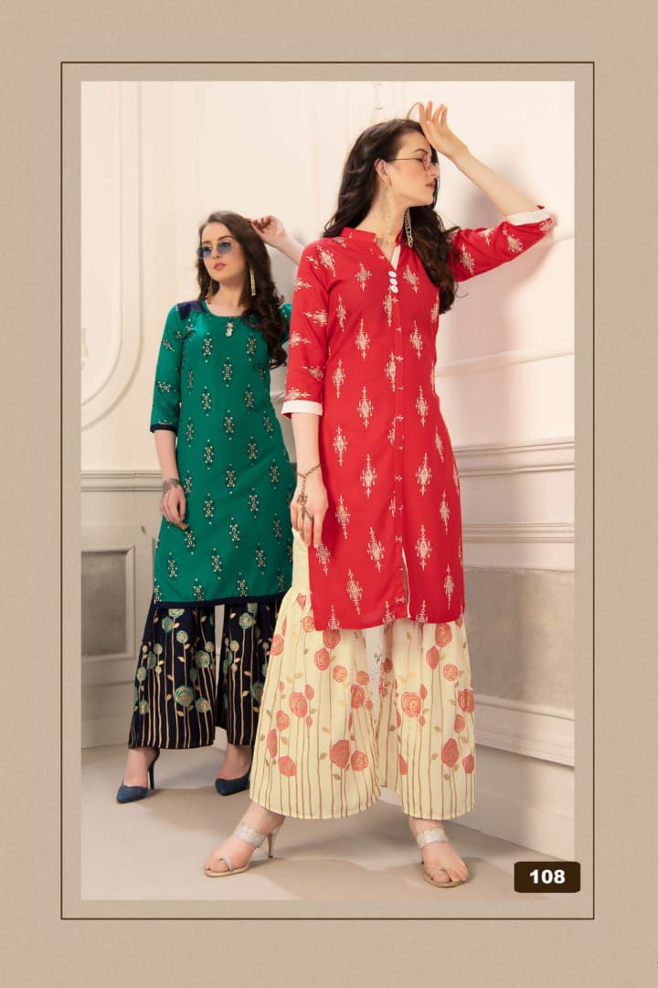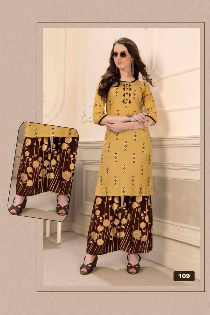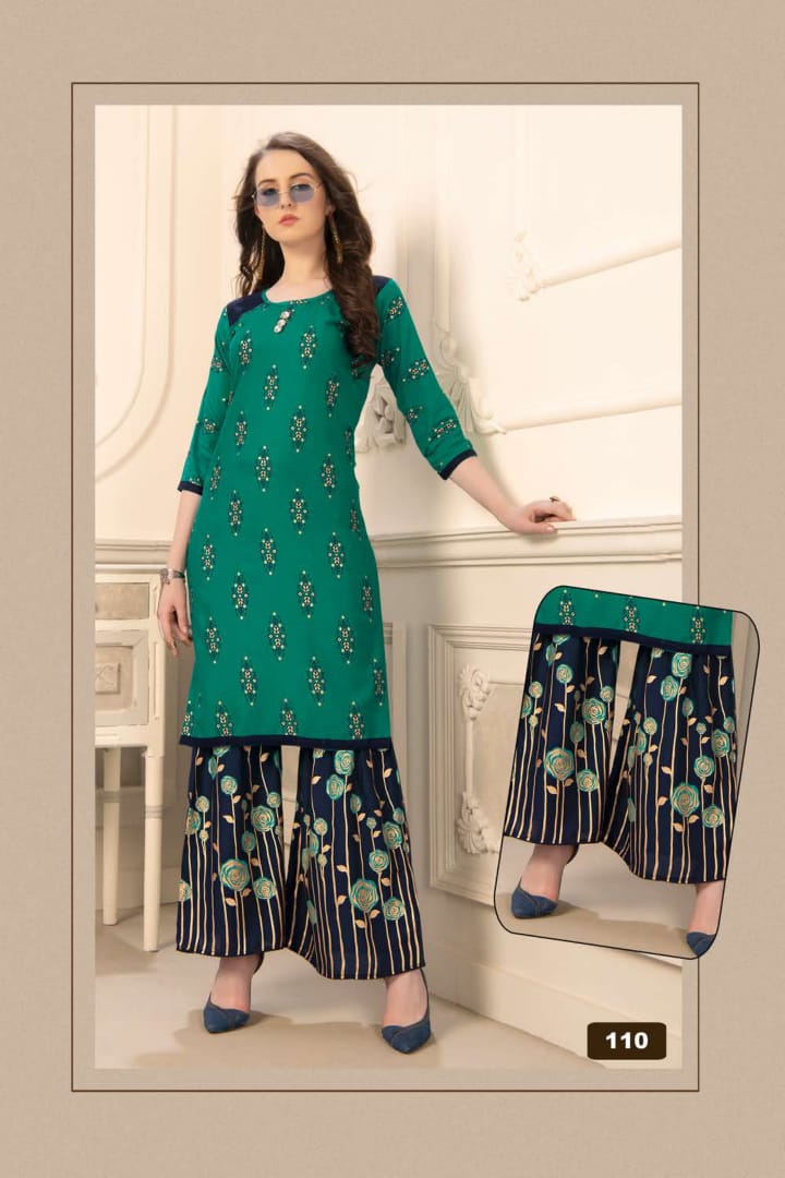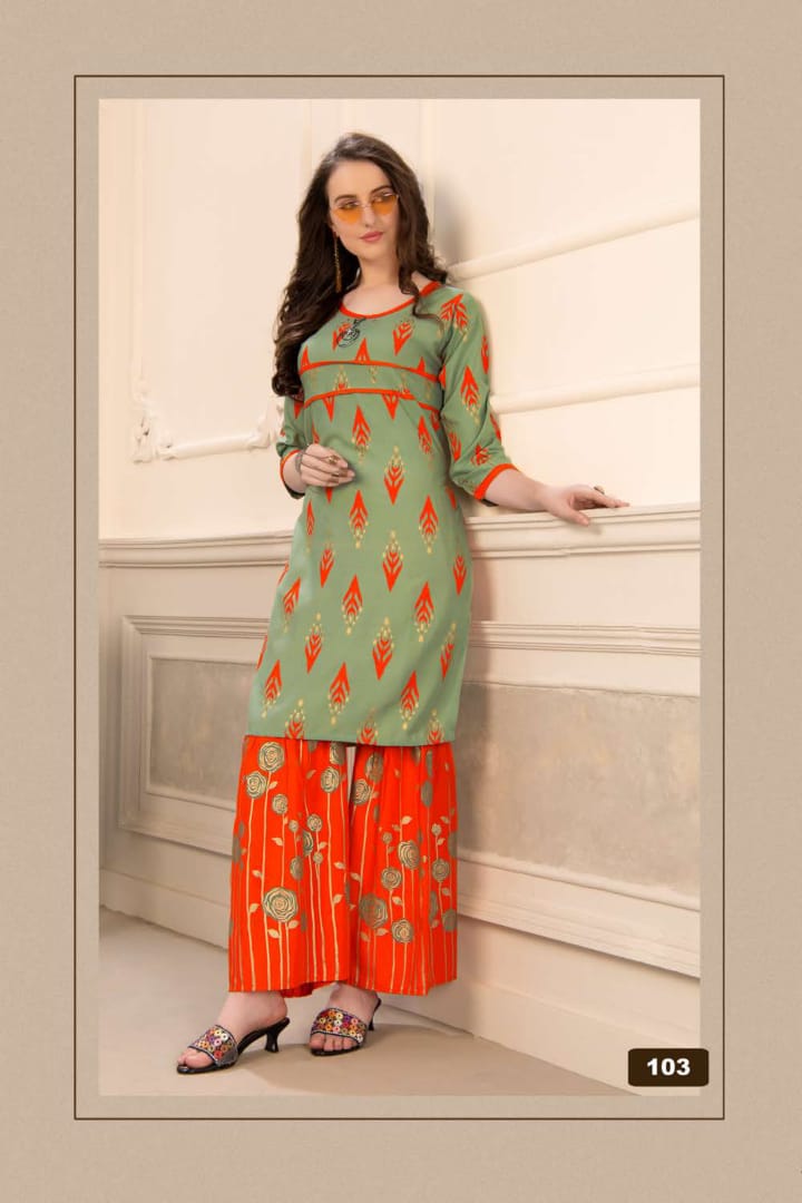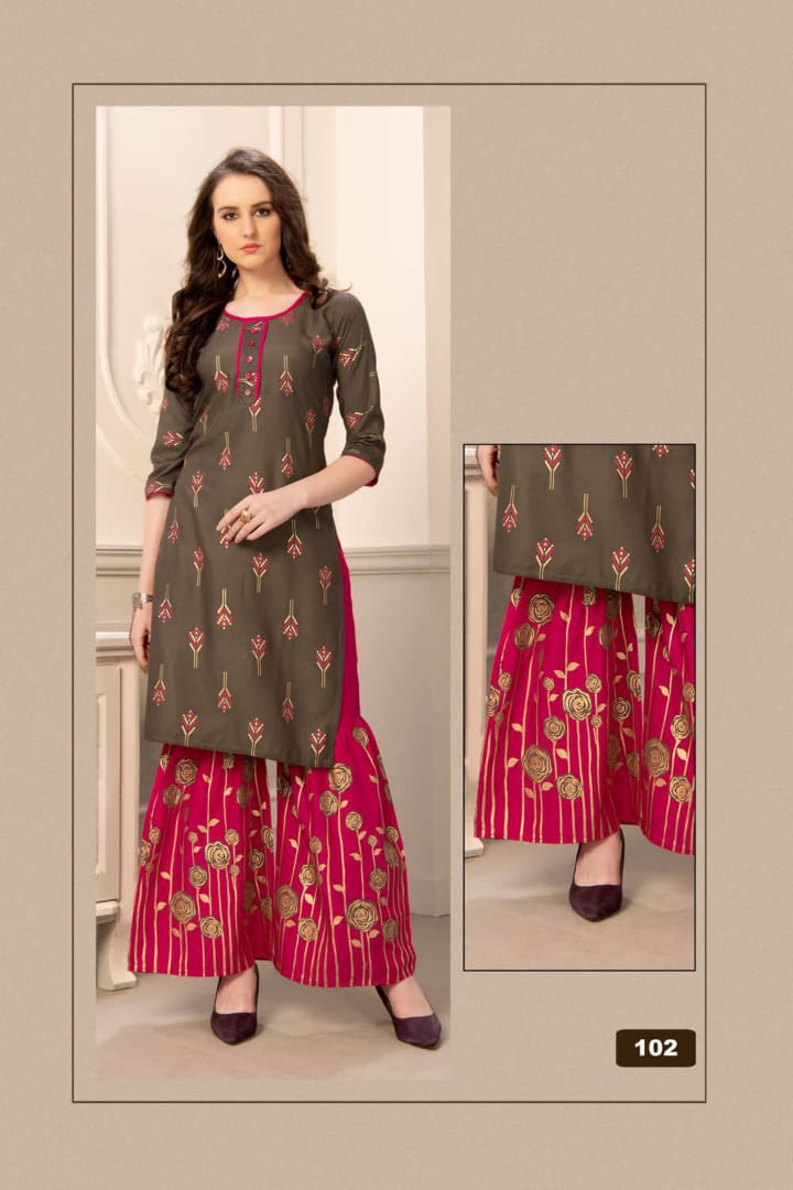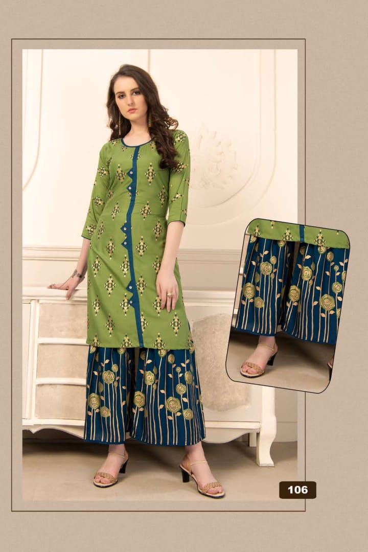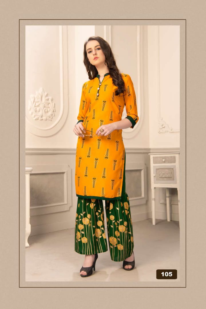 Plazzo Queen Rayon Kurti With Sarara Gold Print Concept Wholesaler