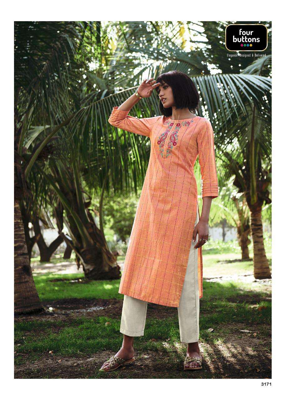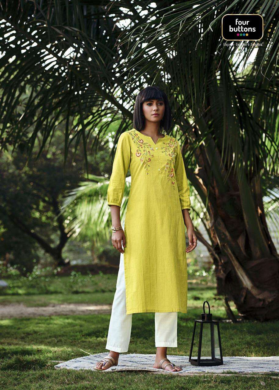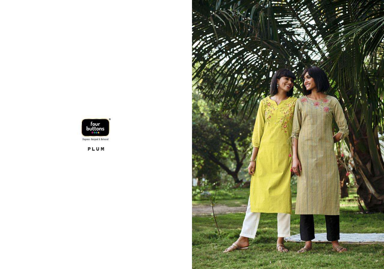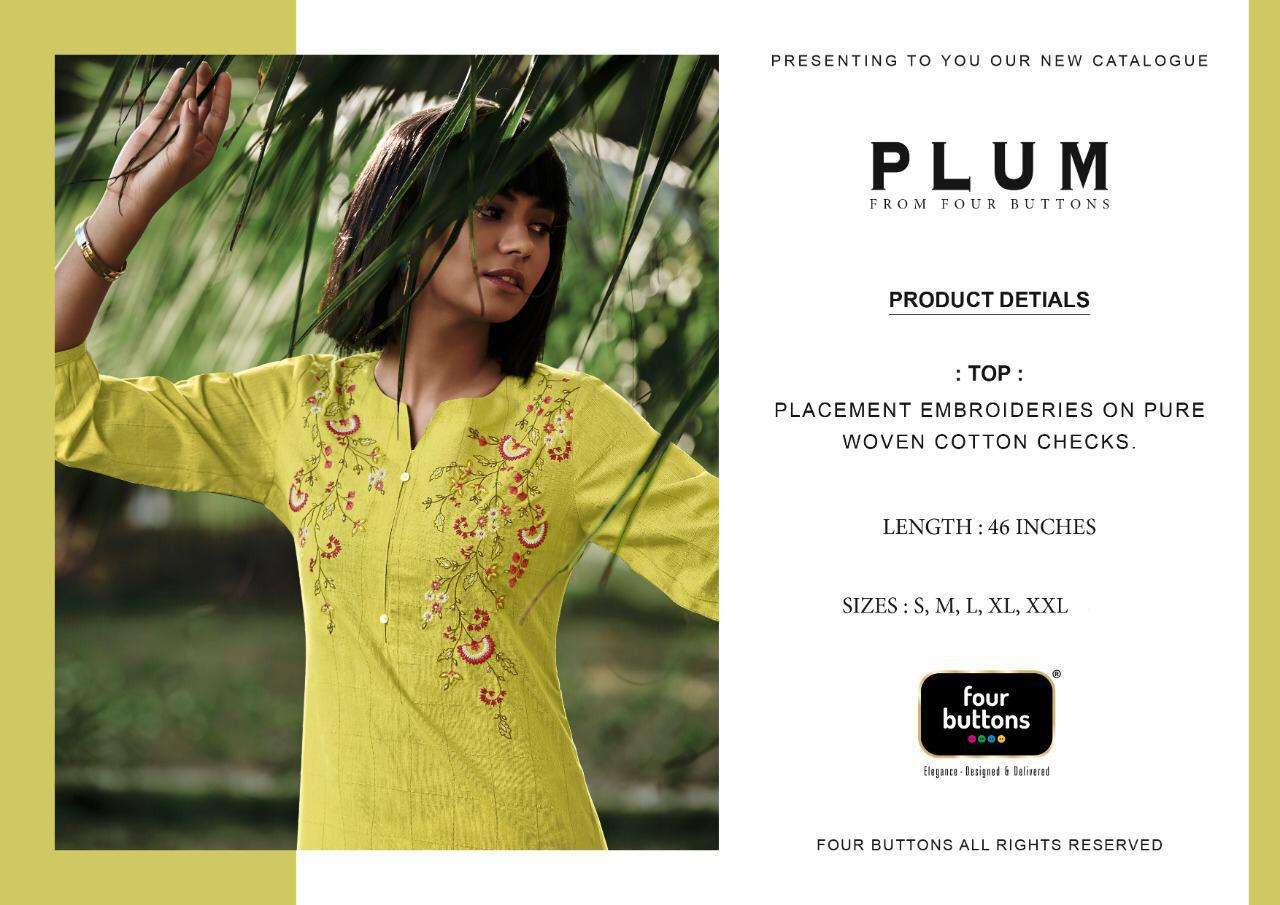 *FOUR BUTTONS * proudly launches its NEW collection 2021 "PLUM" KURTA- PLACEMENT EMBROIDERIES ON PURE WOVEN COTTON CHECKS RATE - Rs 565/- LENGTH - 46" |