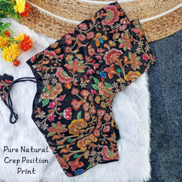 ➡️ EXCLUSIVE PURE NATURAL CREP SABYASACHI POSITION PRINT TAAR CODDING WITH SEQUENCE EMBROIDERED FANCY PARTYWEAR BLOUSE ➡️Design- PNC-2 ➡️Fabric- Pure Natural Crep ➡️Inner- Cotton (Double Lining) ➡️Work- Exclusive Position Print, Taar Codding With Sequence Embroidered ➡️Pattern- PAN NEACK ➡️Quality- A1 ➡️Padded- Yes ➡️Size- Free Size 38 Ready ➡️Length- 14-15 Inch ➡️Open Type- Back Hook ➡️Sleev- Elbow Sleeves Atteched ➡️Colour:- (6 Colours Available) 🖤💛🧡❤️🩷️💙💜🤍🤎 ➡️Price- 840/*- +GST ➡️SHIPPING EXTRA ➡️ BOOK FAST READY STOCK |