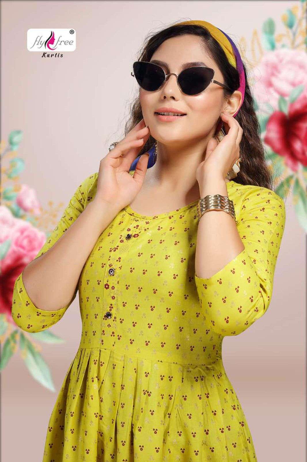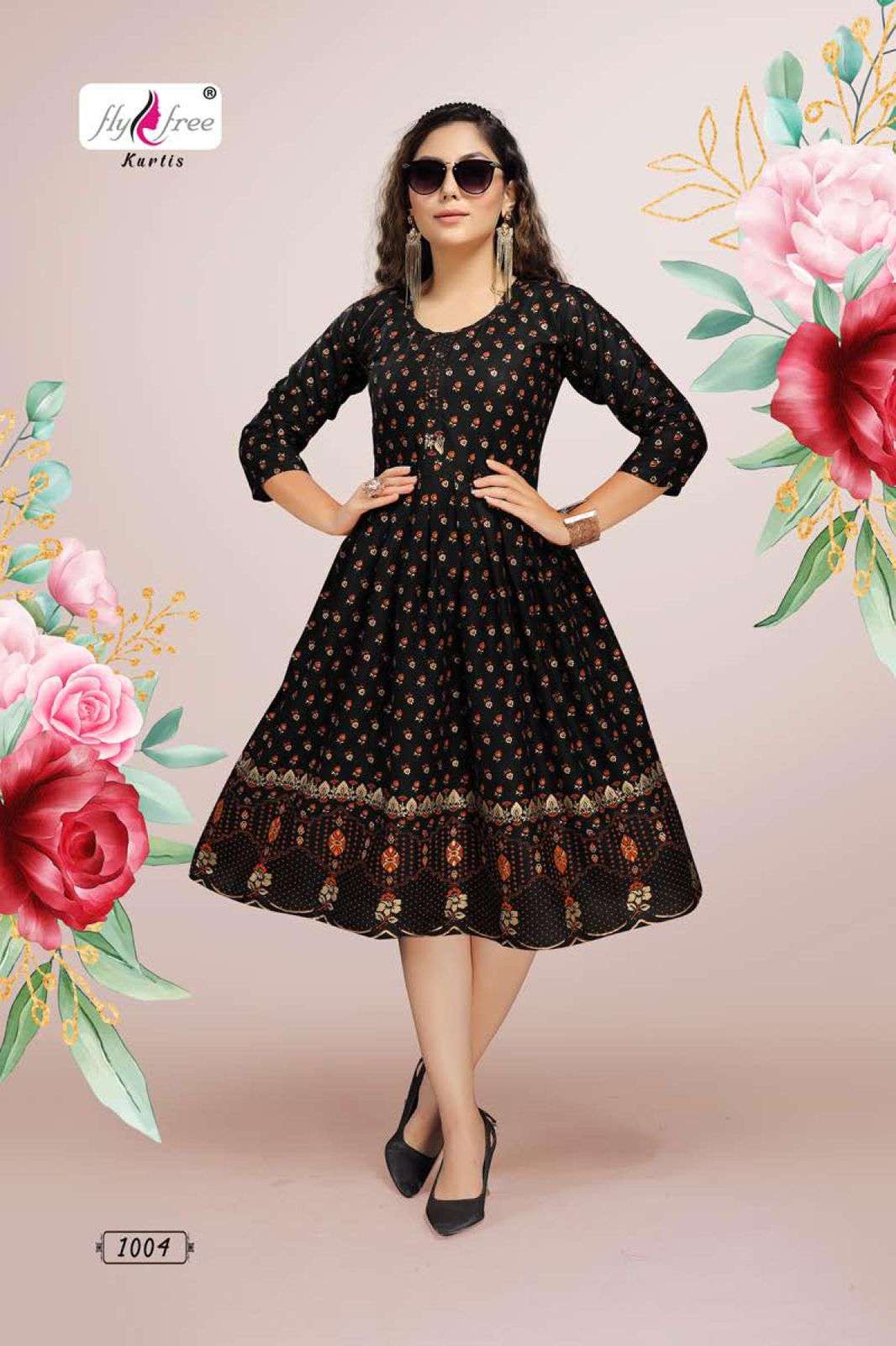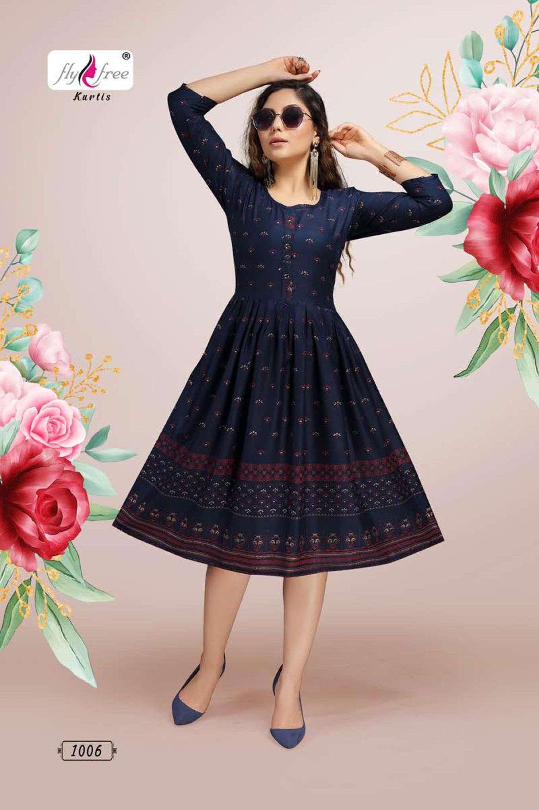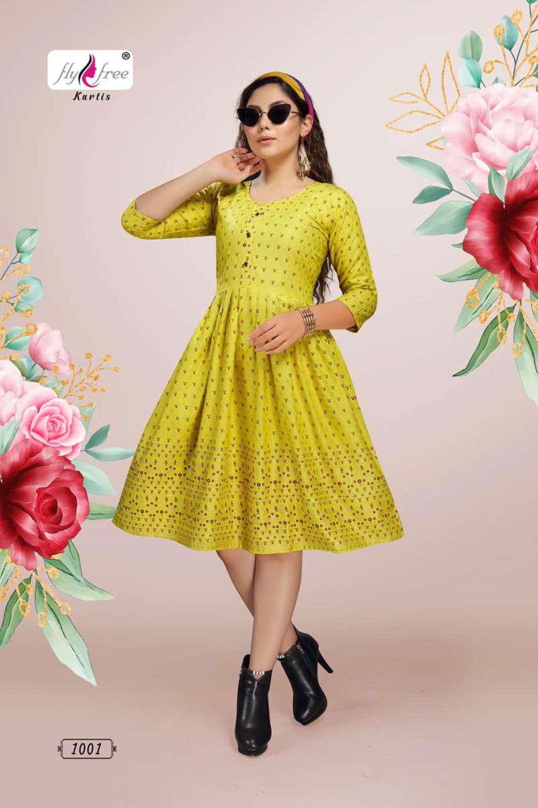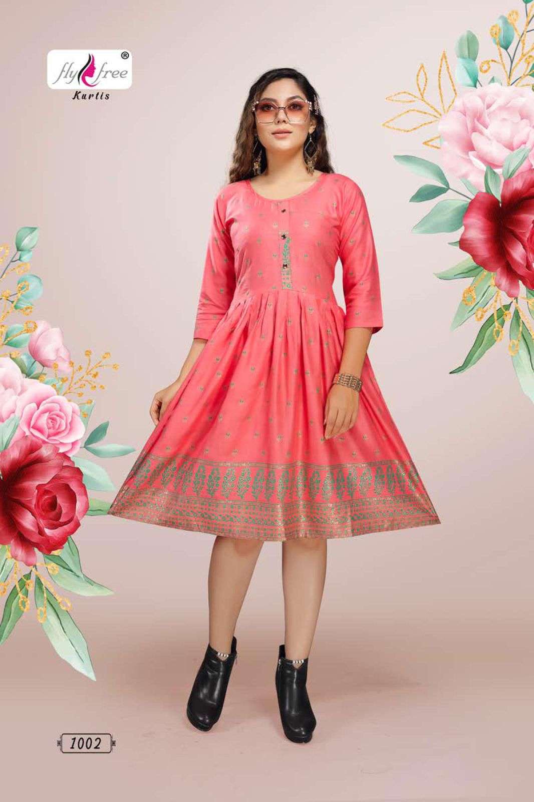POLAR BY FLY FREE HAEVY RAYON GOLD FOIL PRINT KURTI CATALOG WHOLESLAER BEST RATE