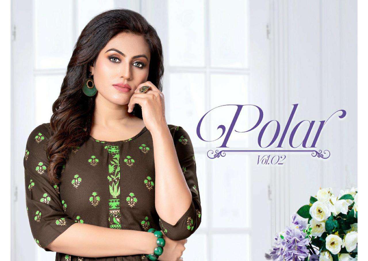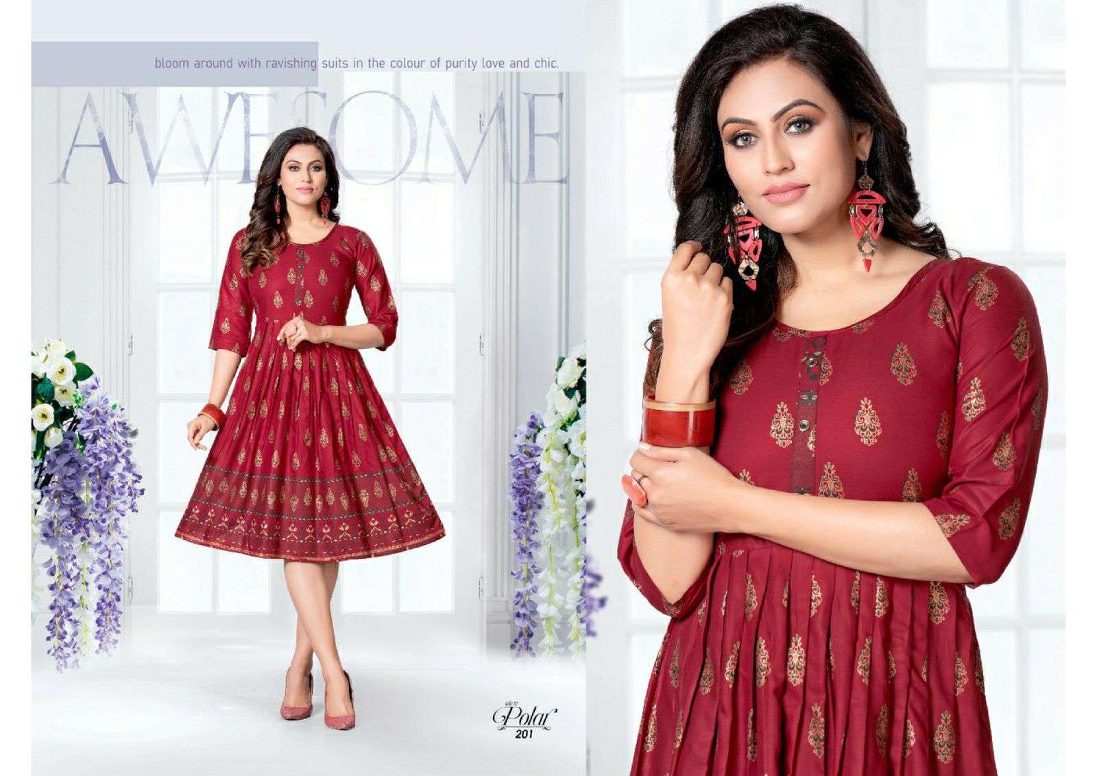 POLAR VOL.2 HEAVY RAYON GOLD FOIL PRINT KURTI CATALOG WHOLESALER BEST RATE